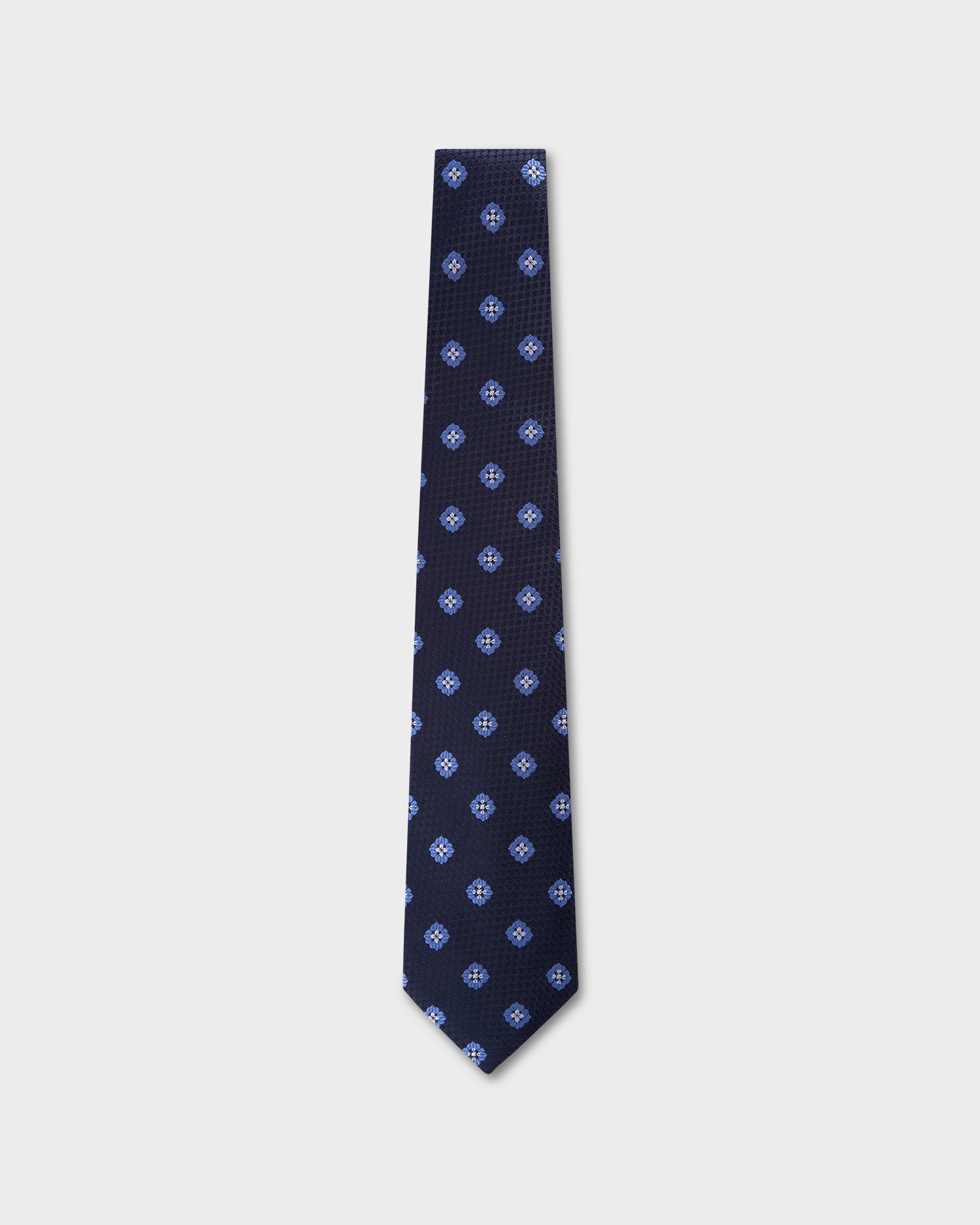 • Dark Navy with Sky Blue Floral Pattern Tie