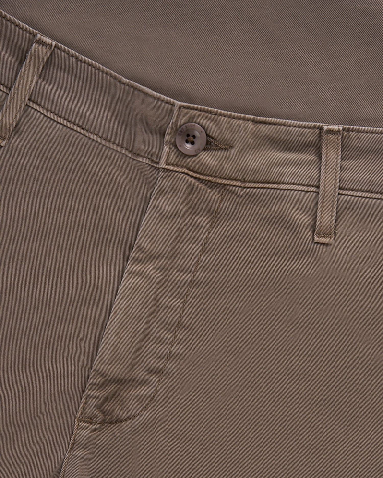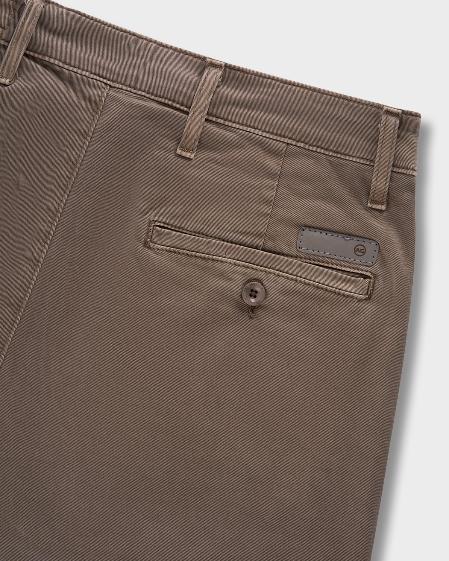 Kullen is a slim trouser with a mid-rise fit, made from stretch twill in a rich brown wash. The fabric offers a comfortable feel with just the right amount of give, combining tailored structure with everyday ease. Crafted from premium denim sourced from Italy, these slim-cut men's pants feature on-seam pockets for a streamlined aesthetic. Welt pockets at the back complete the look.