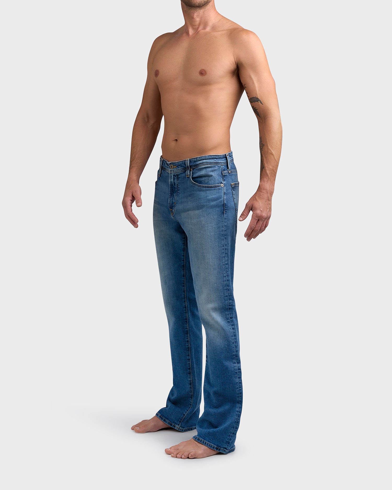 The Clint is a classic bootcut jean with a clean, medium wash. Made from 'Vintage Comfort Stretch' fabric, it offers the perfect balance of structure and flexibility. Designed with a mid-rise fit, it’s slim through the hip and thigh with a slight flare at the leg opening. A reliable everyday jean with just the right amount of stretch for all-day comfort.