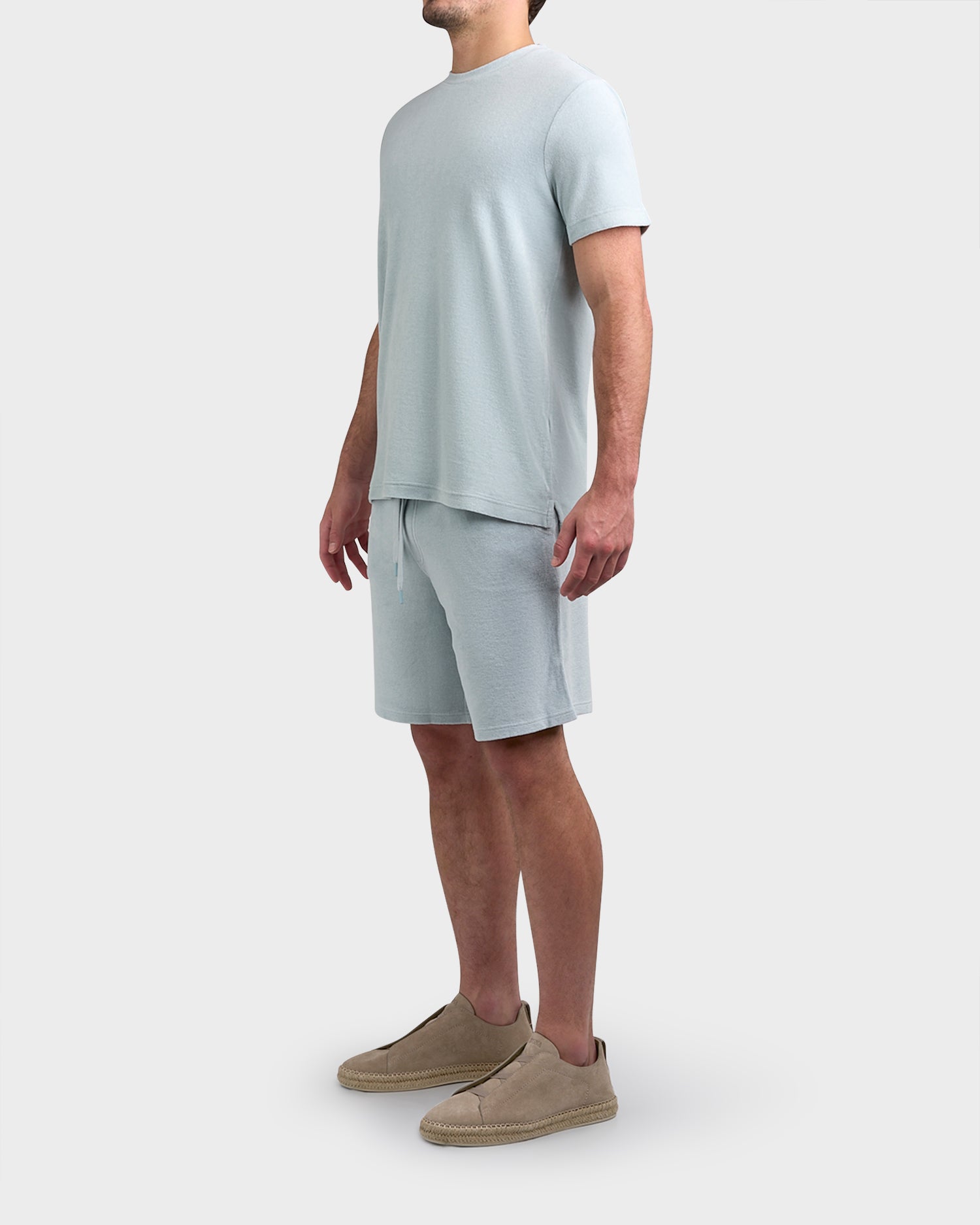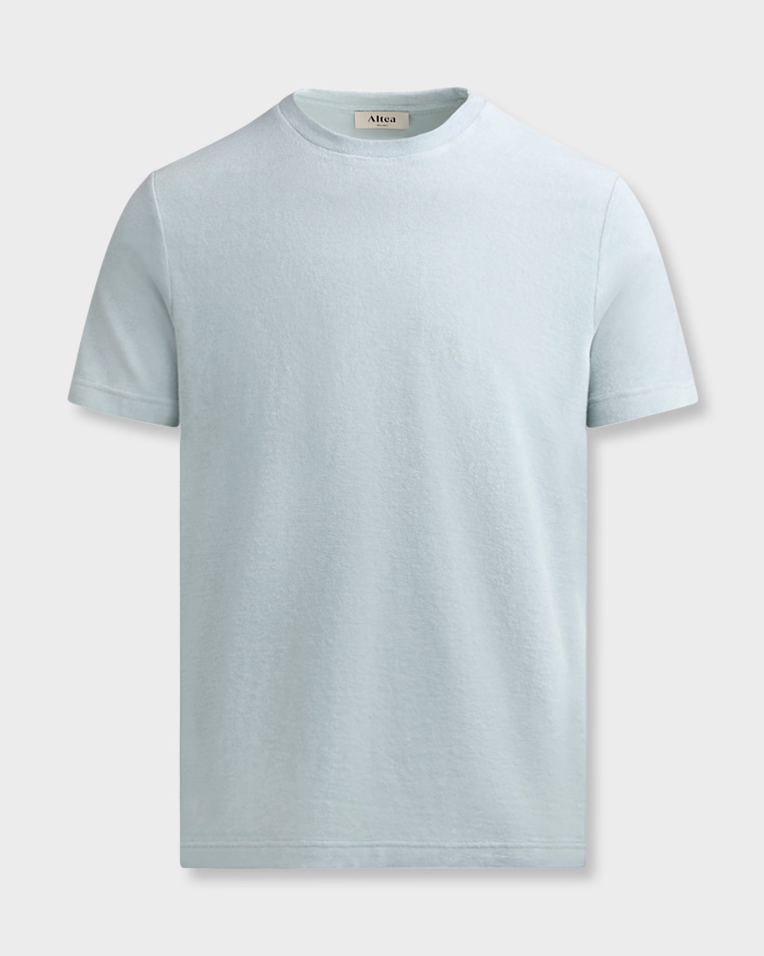 Light Ice Blue Cotton Terry Crew Neck T-Shirt