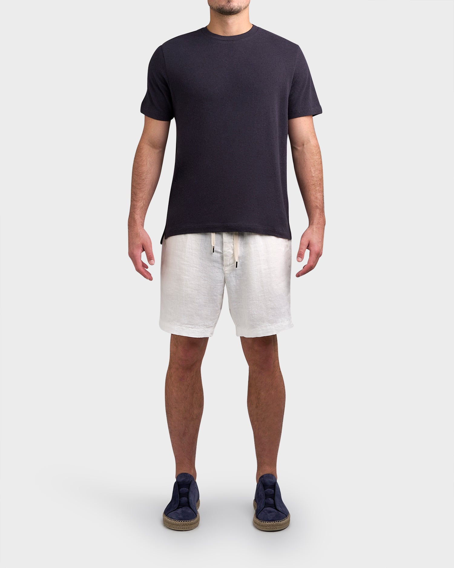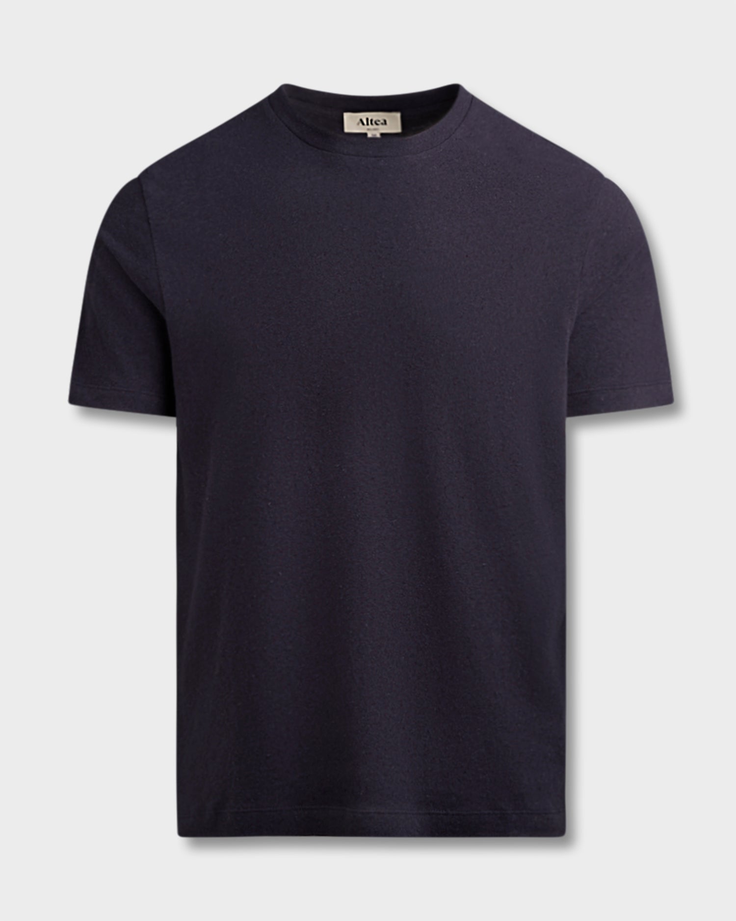 Navy Cotton Linen Jersey Crew Neck T-Shirt