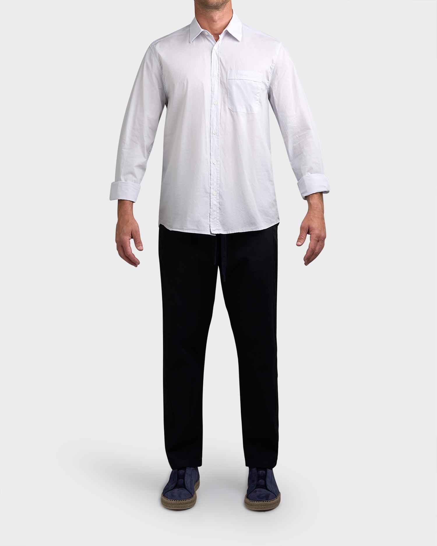 Icy Blue Long Sleeve Patch Pocket Cotton Elastane Shirt