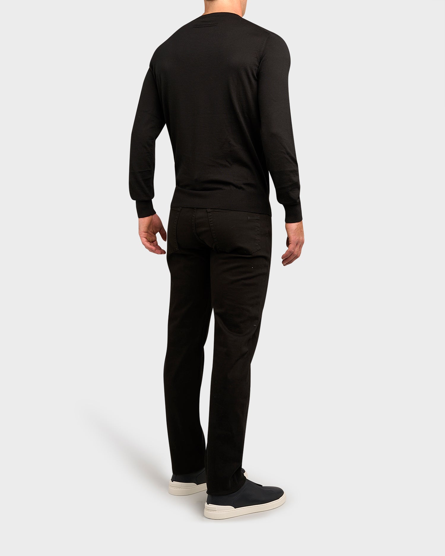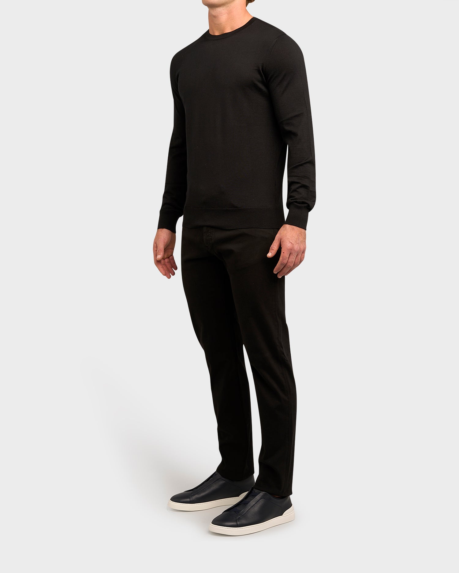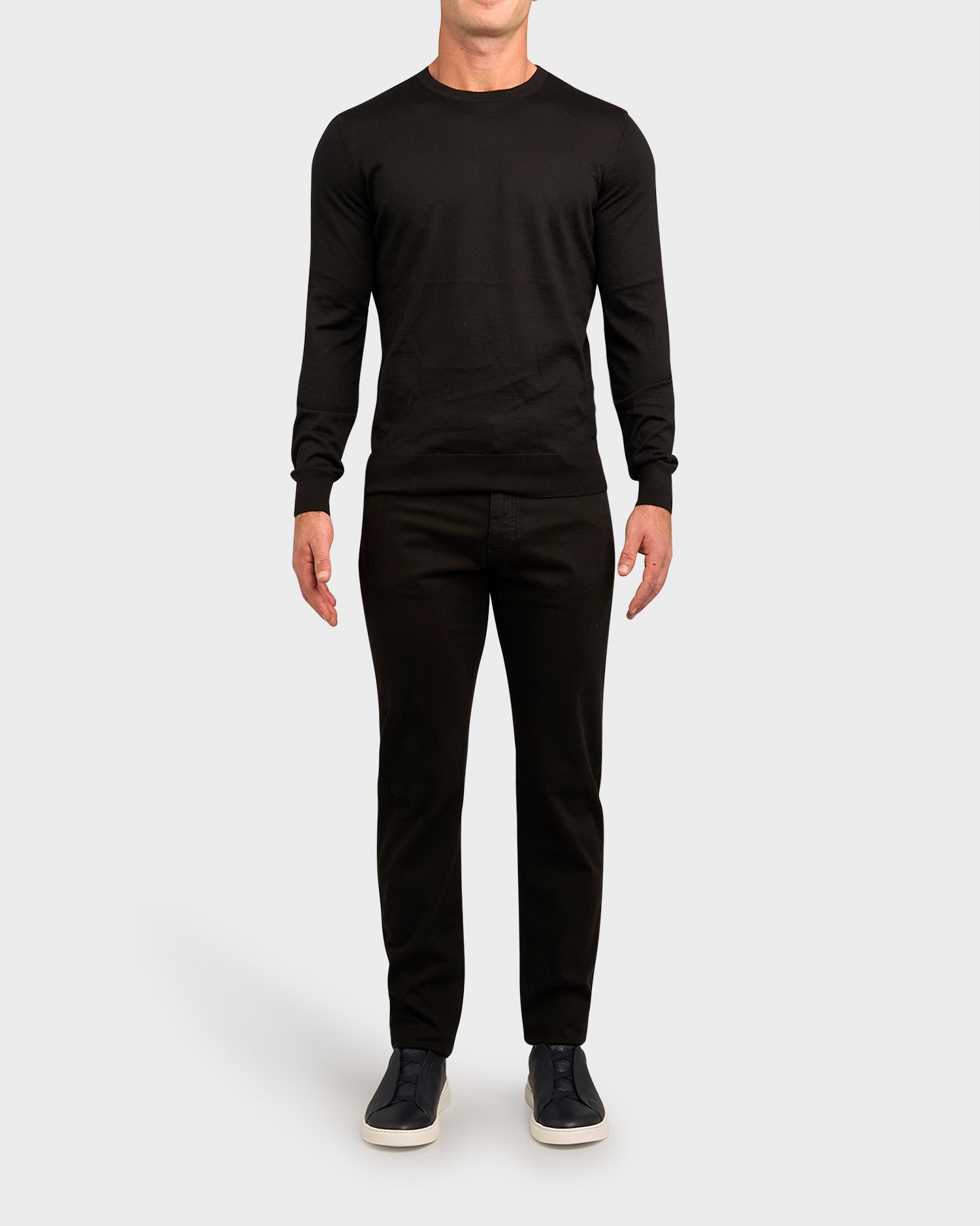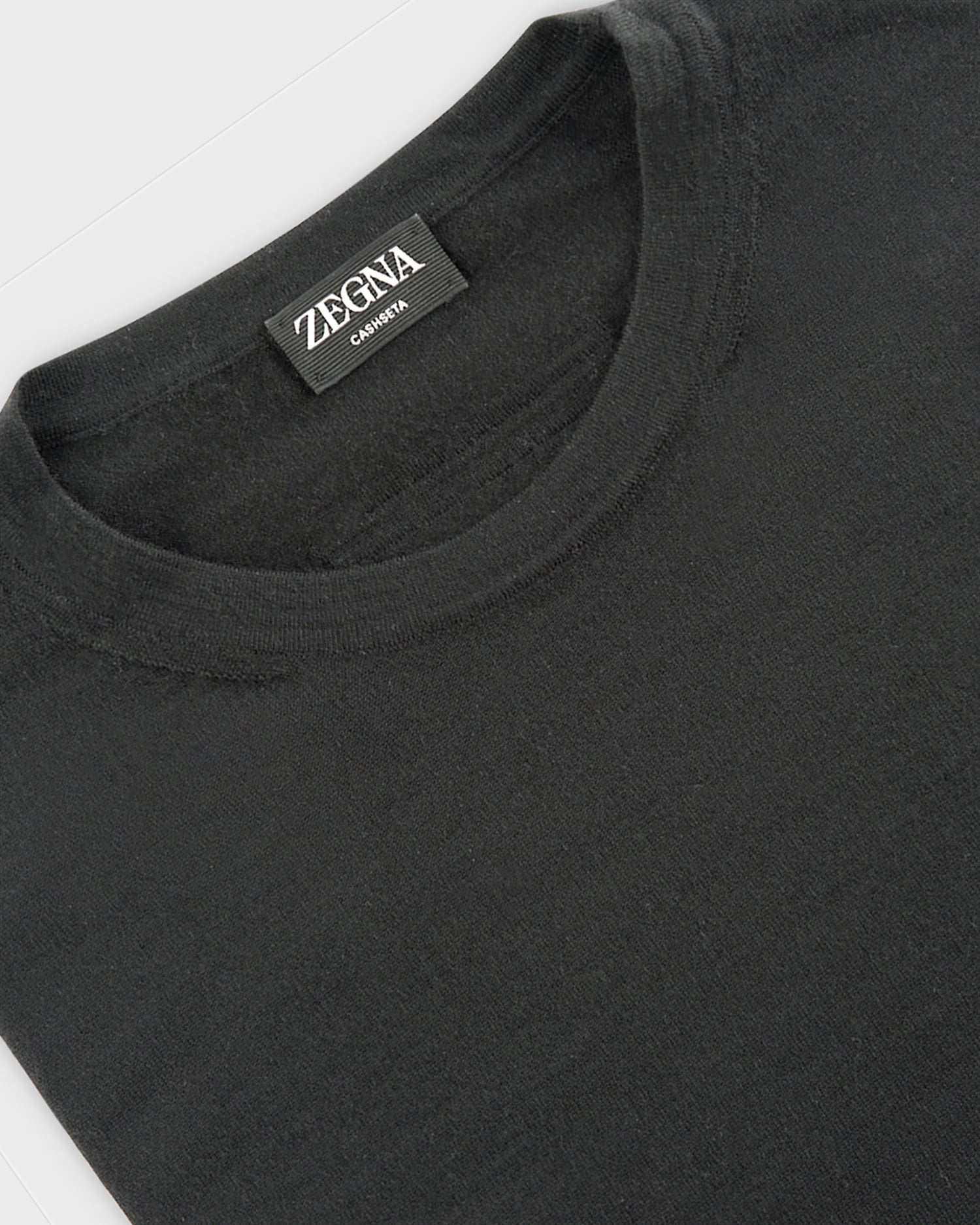 Blended with brilliant silk, the Cashseta crewneck's distinctive finish is highlighted in a sophisticated black. This lightweight, long-sleeve sweater is yarn-dyed, giving each item a totally unique, micro-mélange effect. Classic ribbed trim frames this luxurious material.