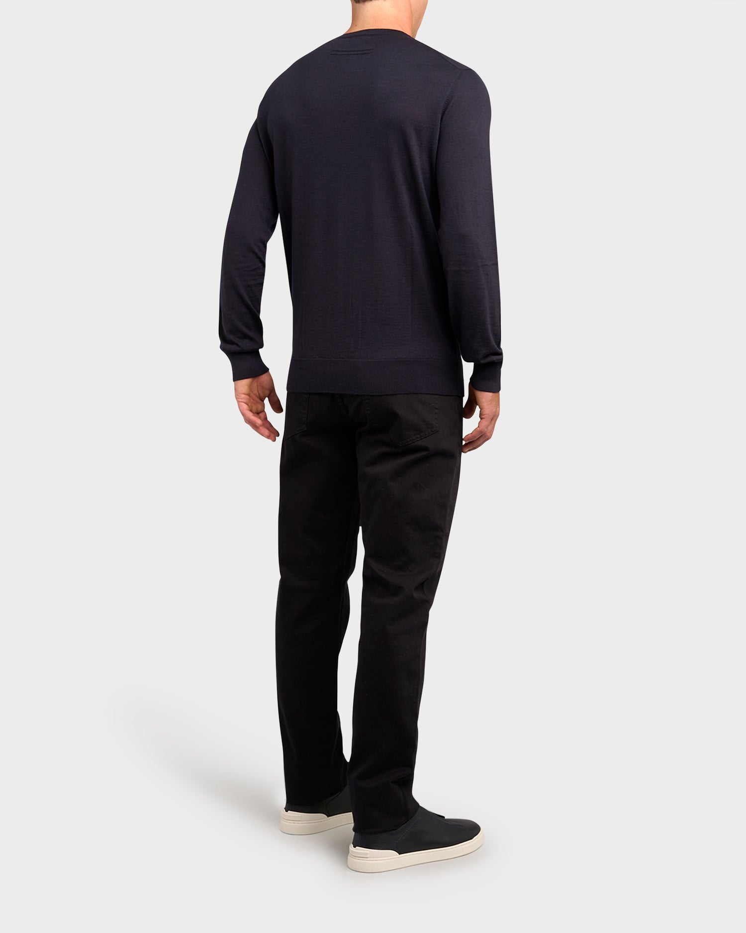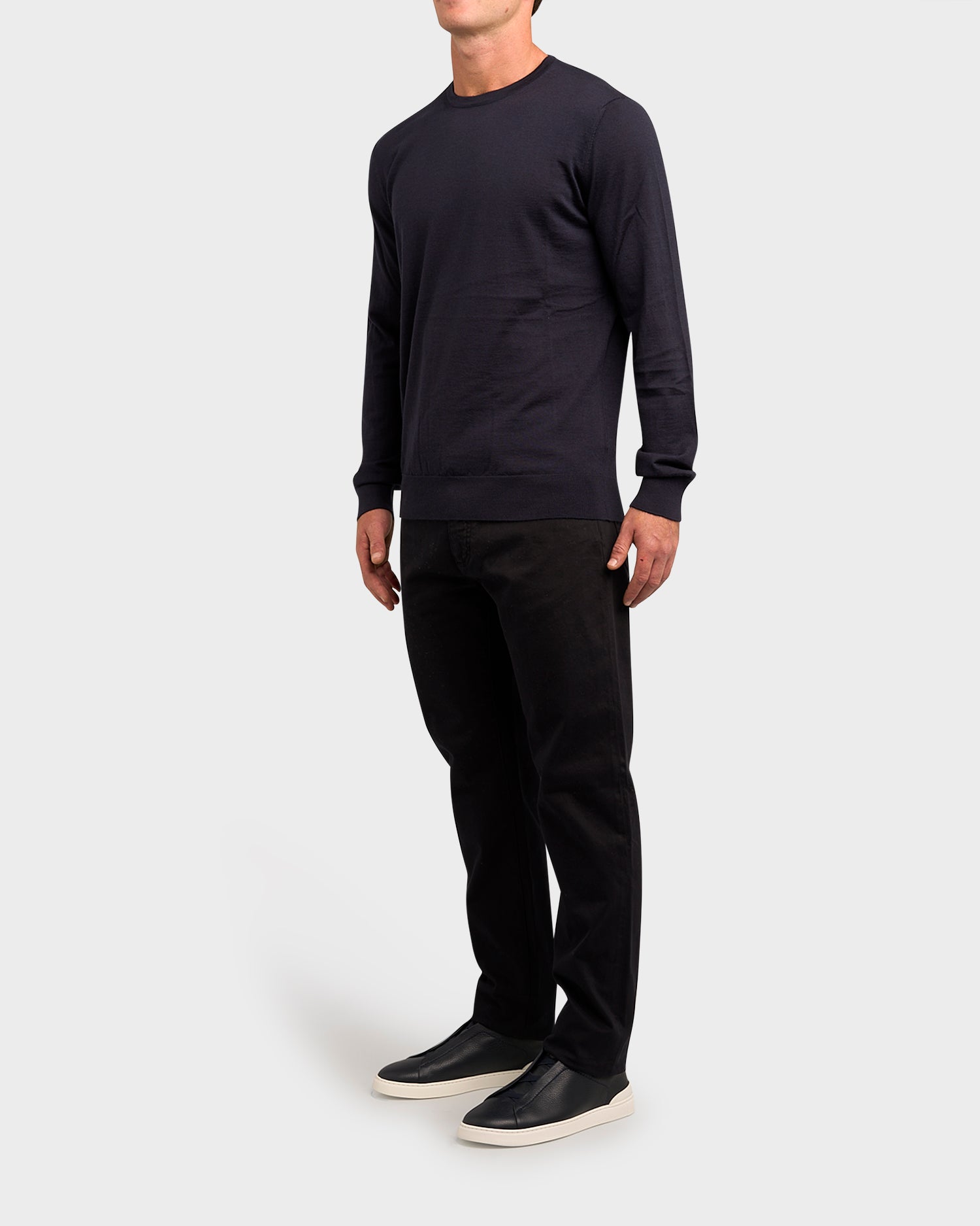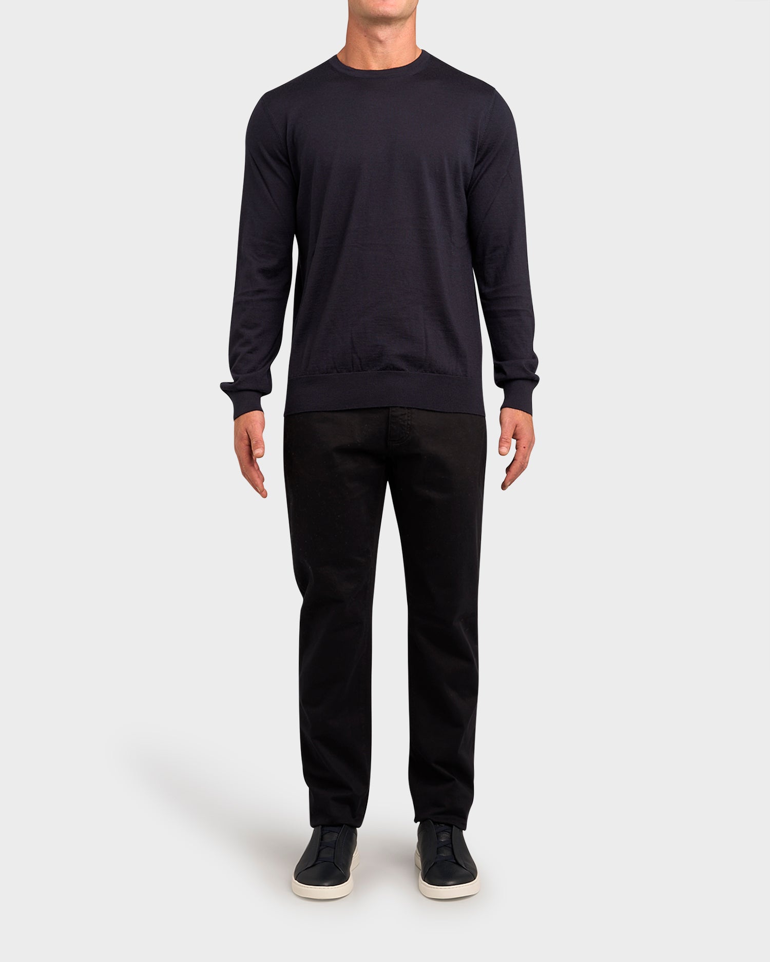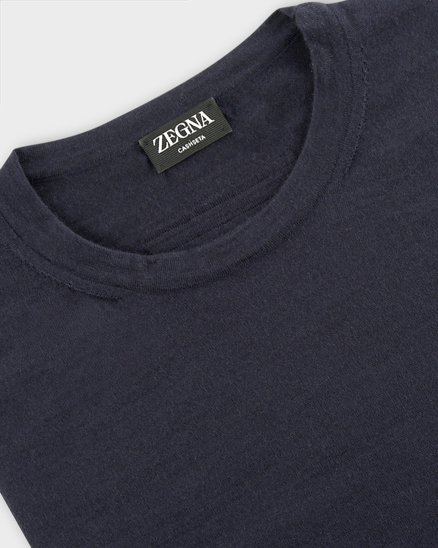 Blended with brilliant silk, the Cashseta crewneck's distinctive finish is highlighted in a sophisticated black. This lightweight, long-sleeve sweater is yarn-dyed, giving each item a totally unique, micro-mélange effect. Classic ribbed trim frames this luxurious material.