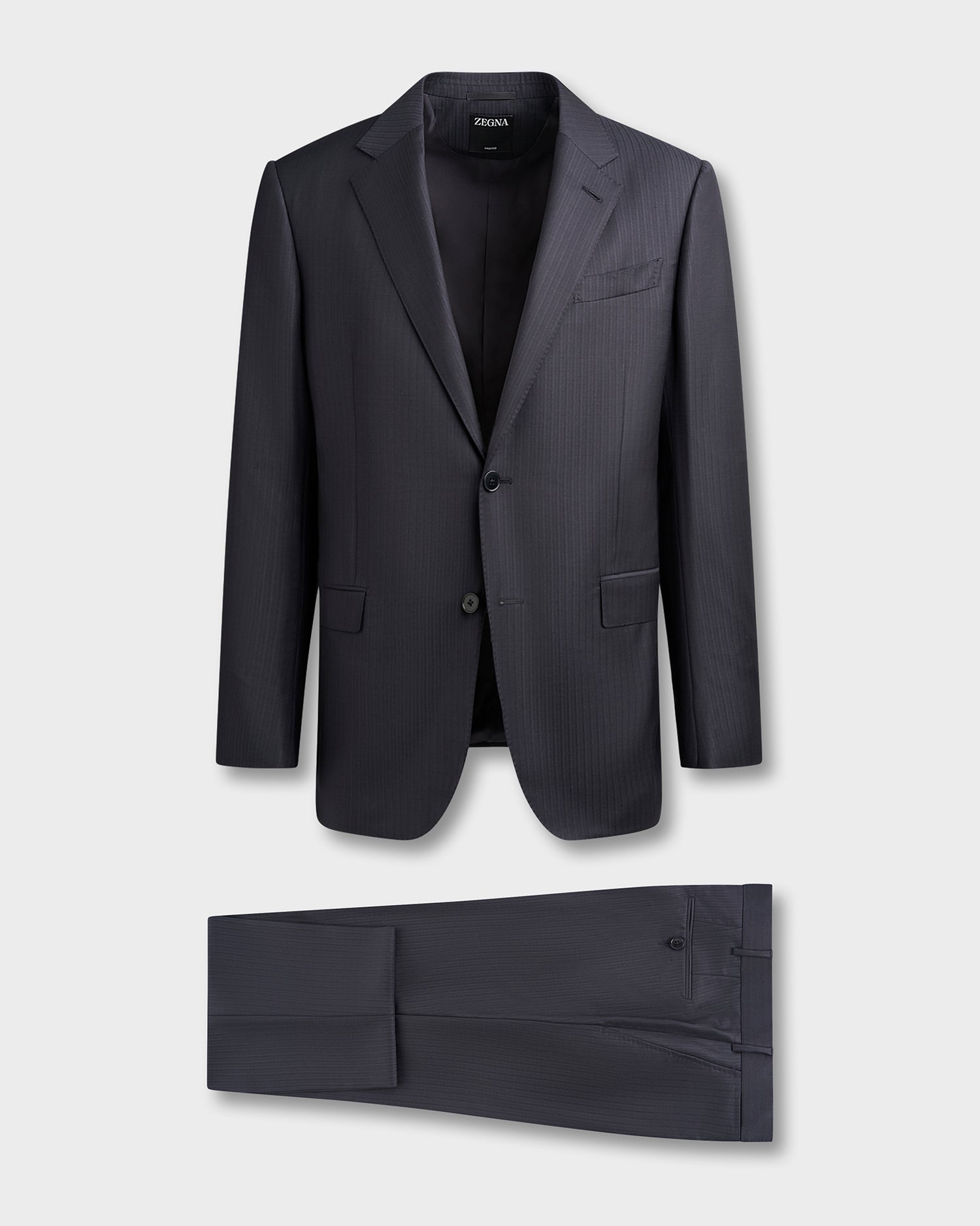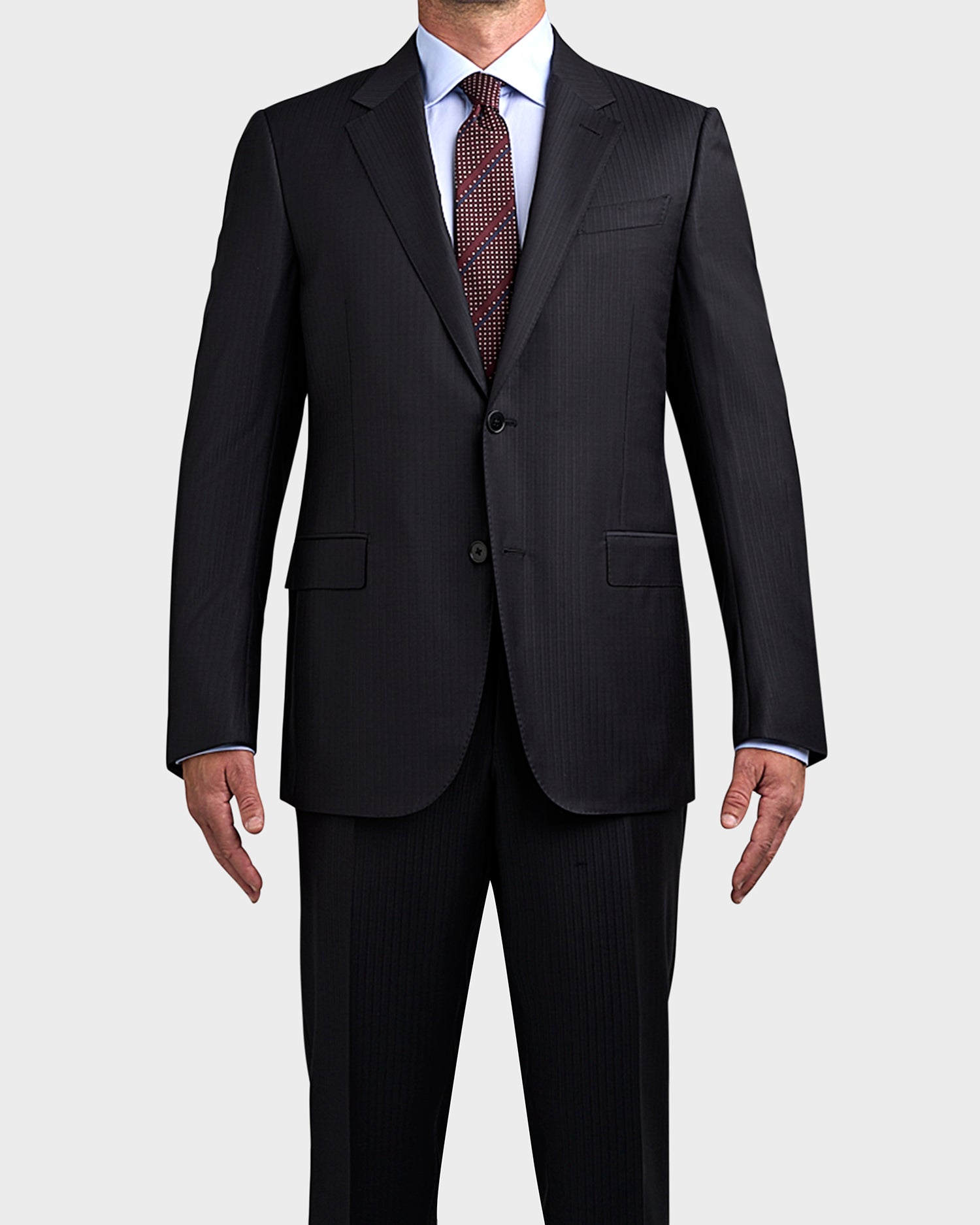 Black Fine Pinstripe with Woven Self Stripe Trofeo Wool Suit