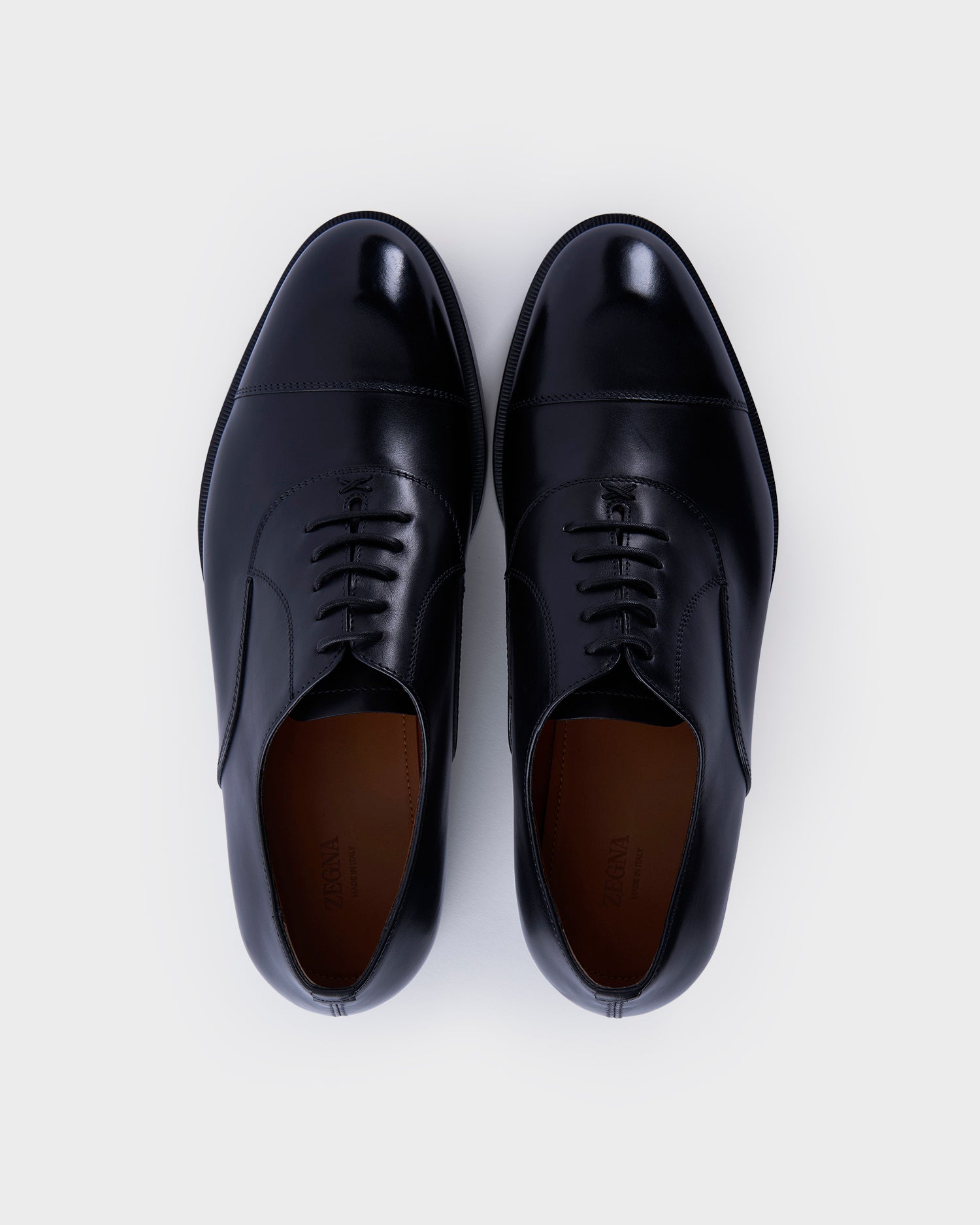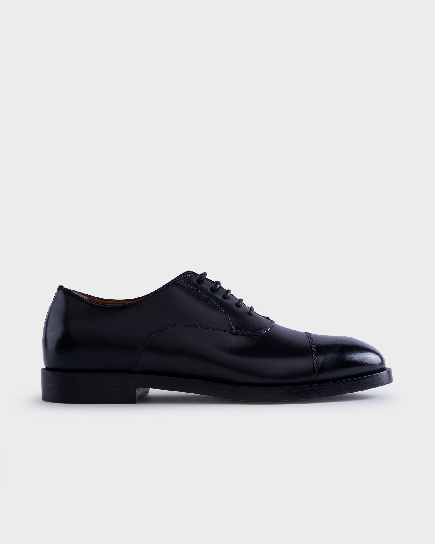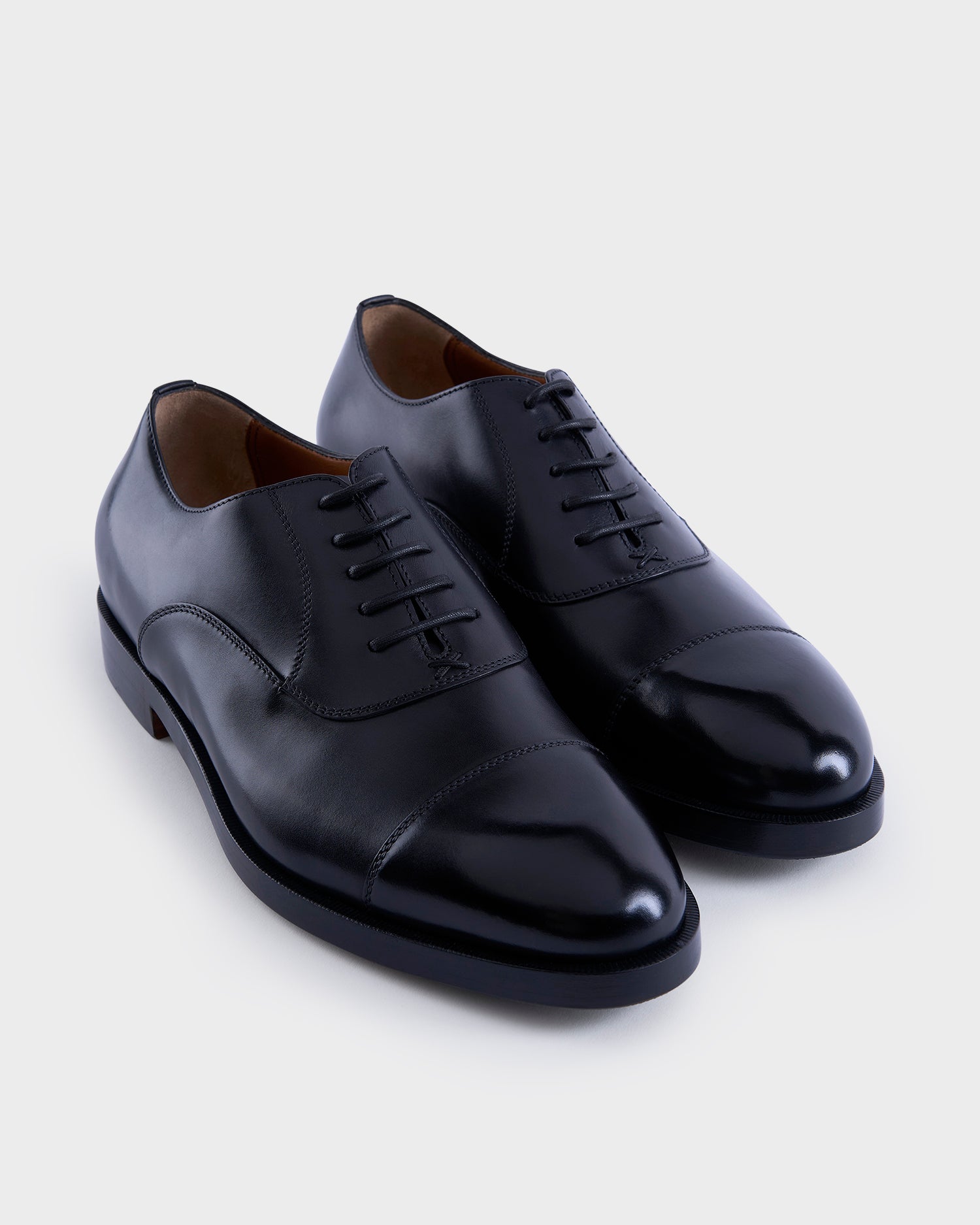 Based on an artisanal construction, the last of the black leather Torino Oxford shoe is paired with a fully stitched sole. The leather is hand-buffed to grant it a deep, luminous shine, adding a final touch of sophistication for any formal occasion.