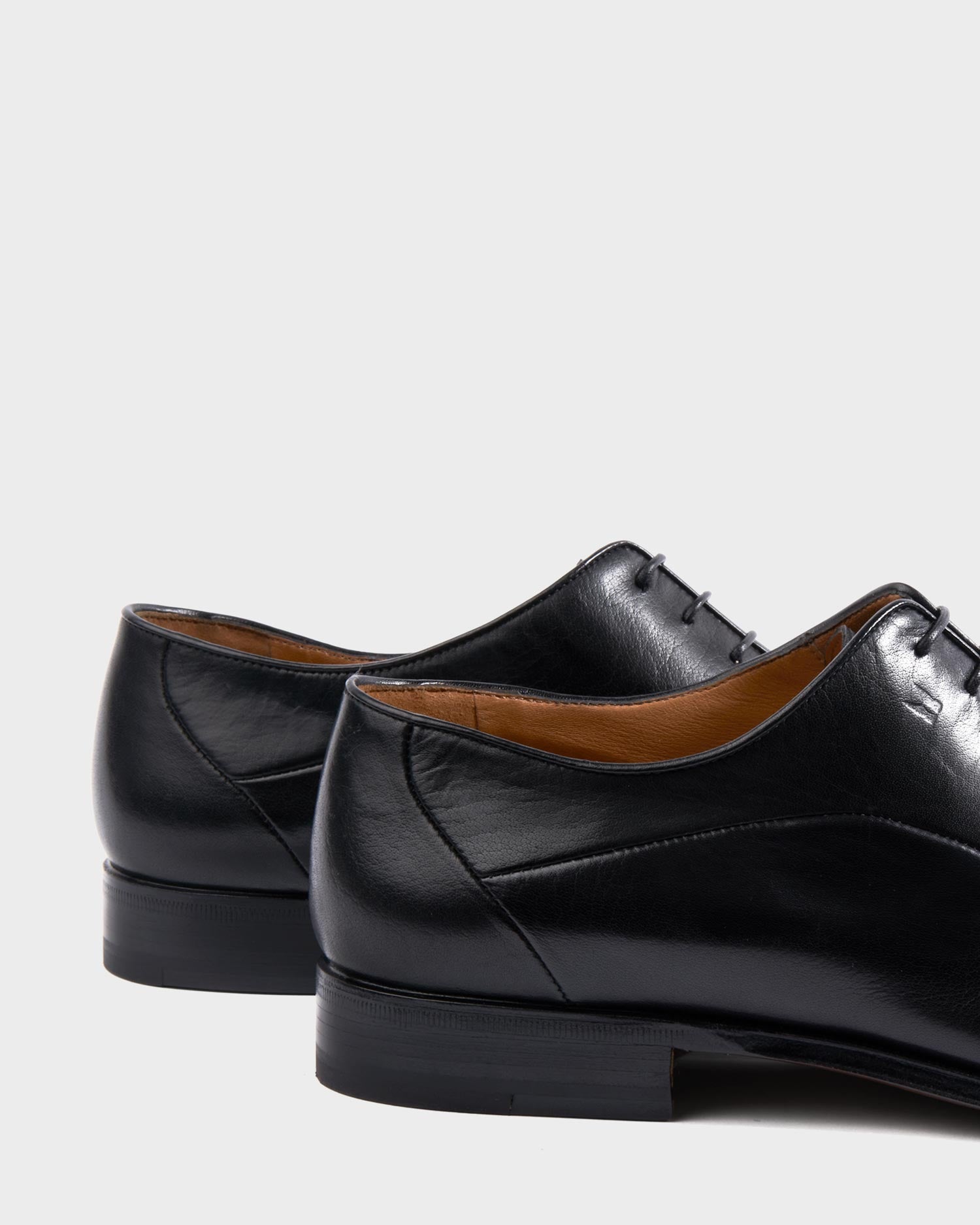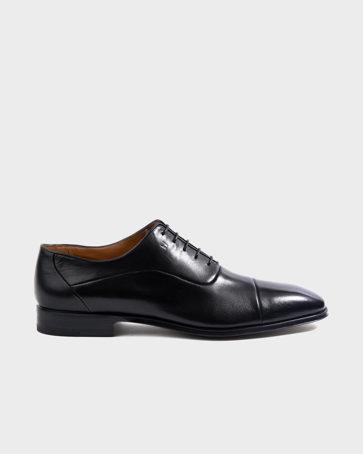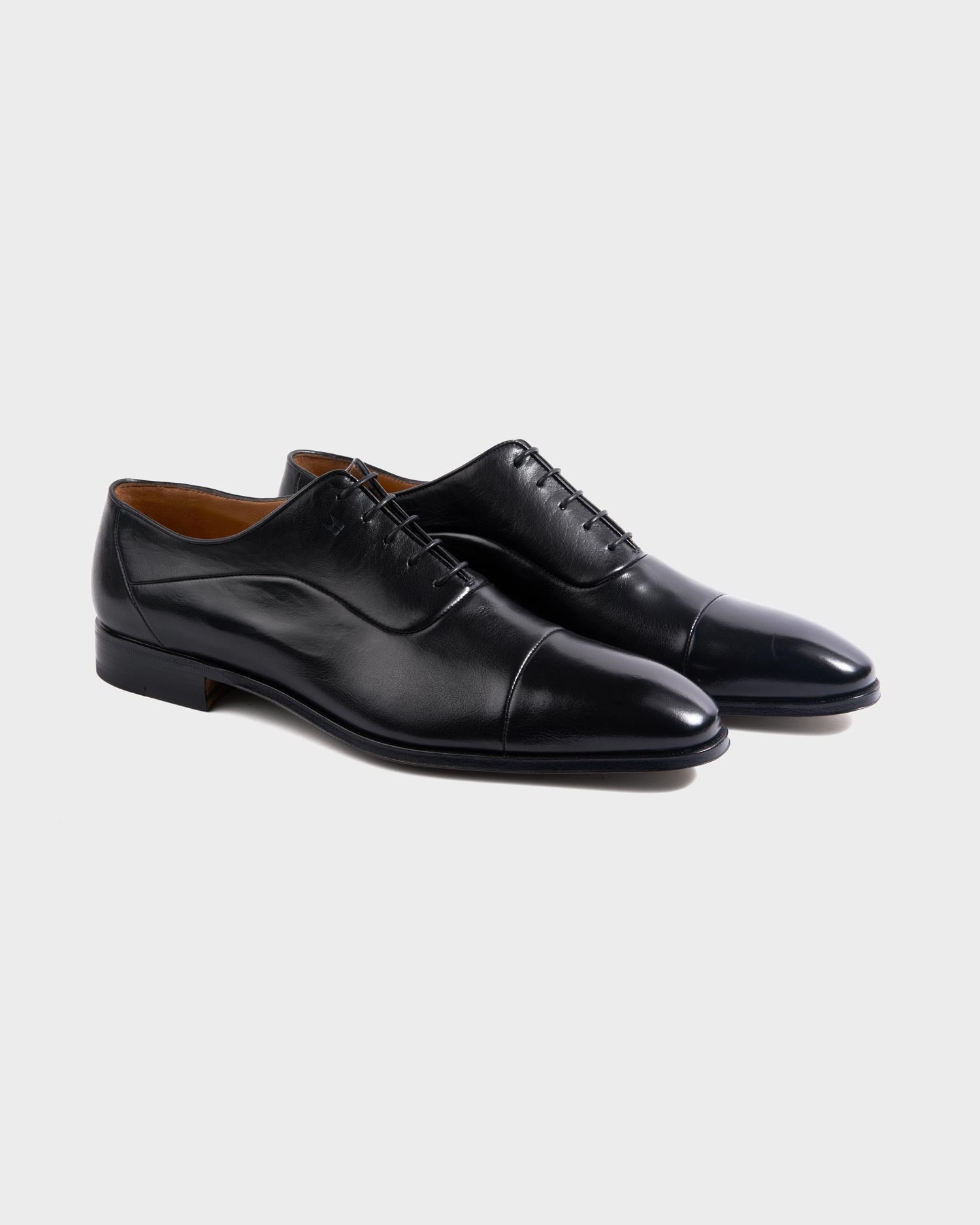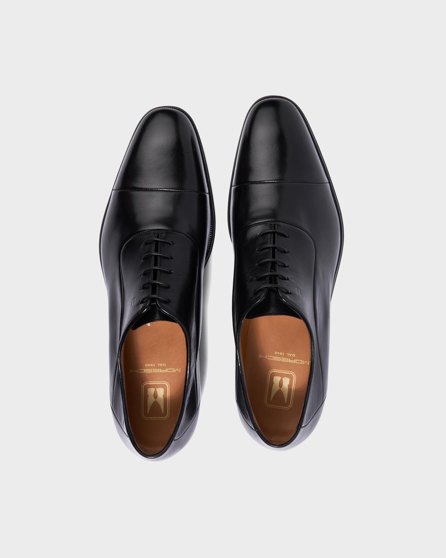 Moreschi's Varsavia oxford shoes in black soft buffalo leather are a traditional square toe model with cap toe stitching and a Blake manufactured leather sole.
