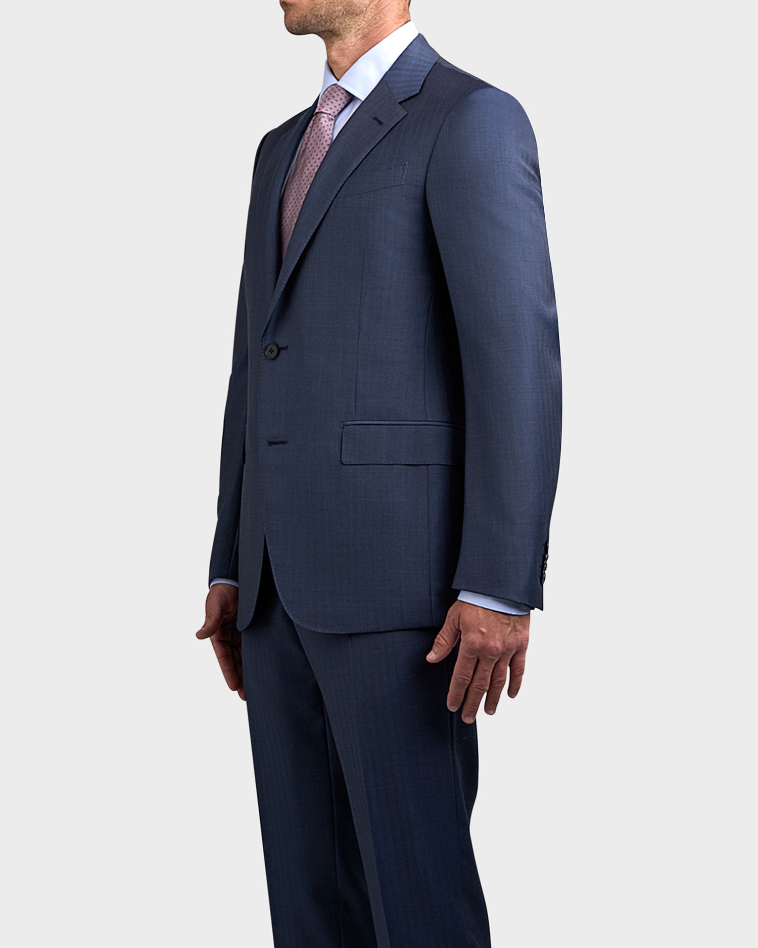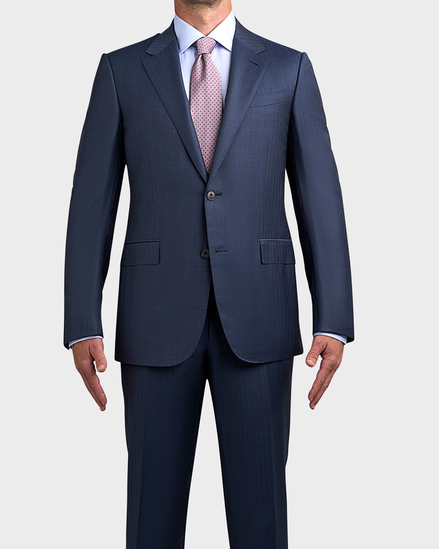 This garment is cut from Trofeo, a fabric crafted from super-fine Australian Merino wool that's naturally breathable and soft. The long fibres have an innate elasticity, resulting in comfortable garments with a smooth finish. In addition to its superior comfort, this fabric's smooth finish is the perfect backdrop for the understated pattern.