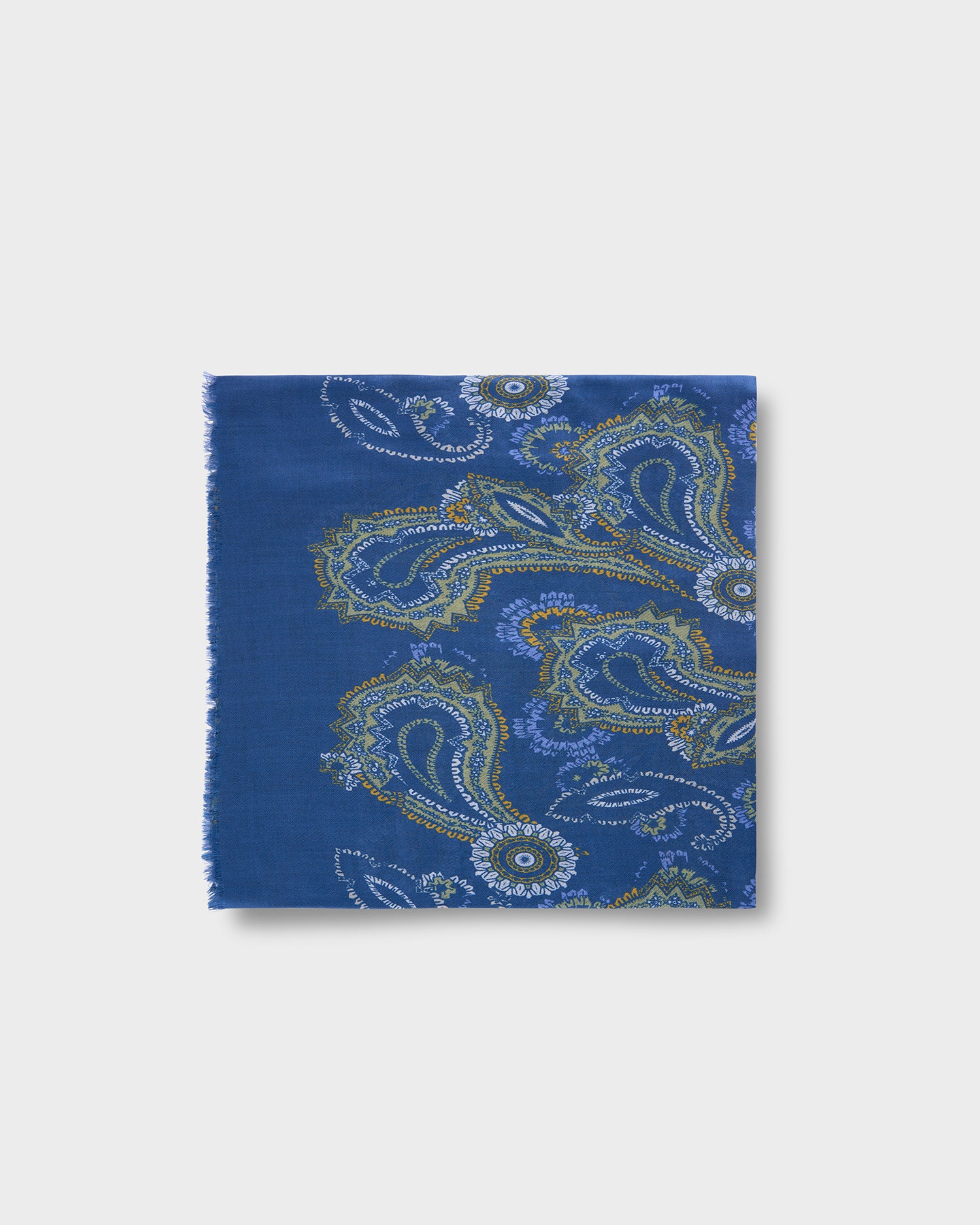 Blue with Sage Green and Yellow Paisley Modal Scarf