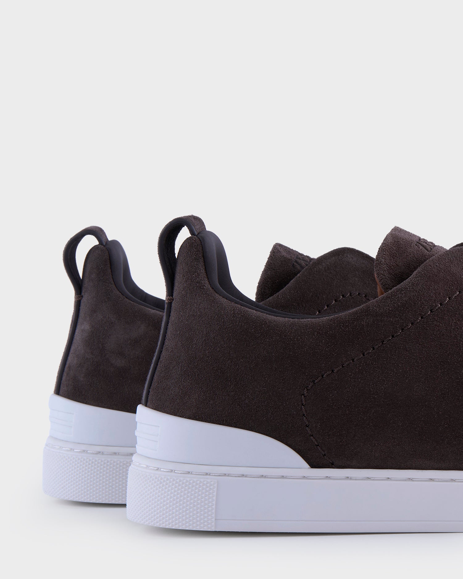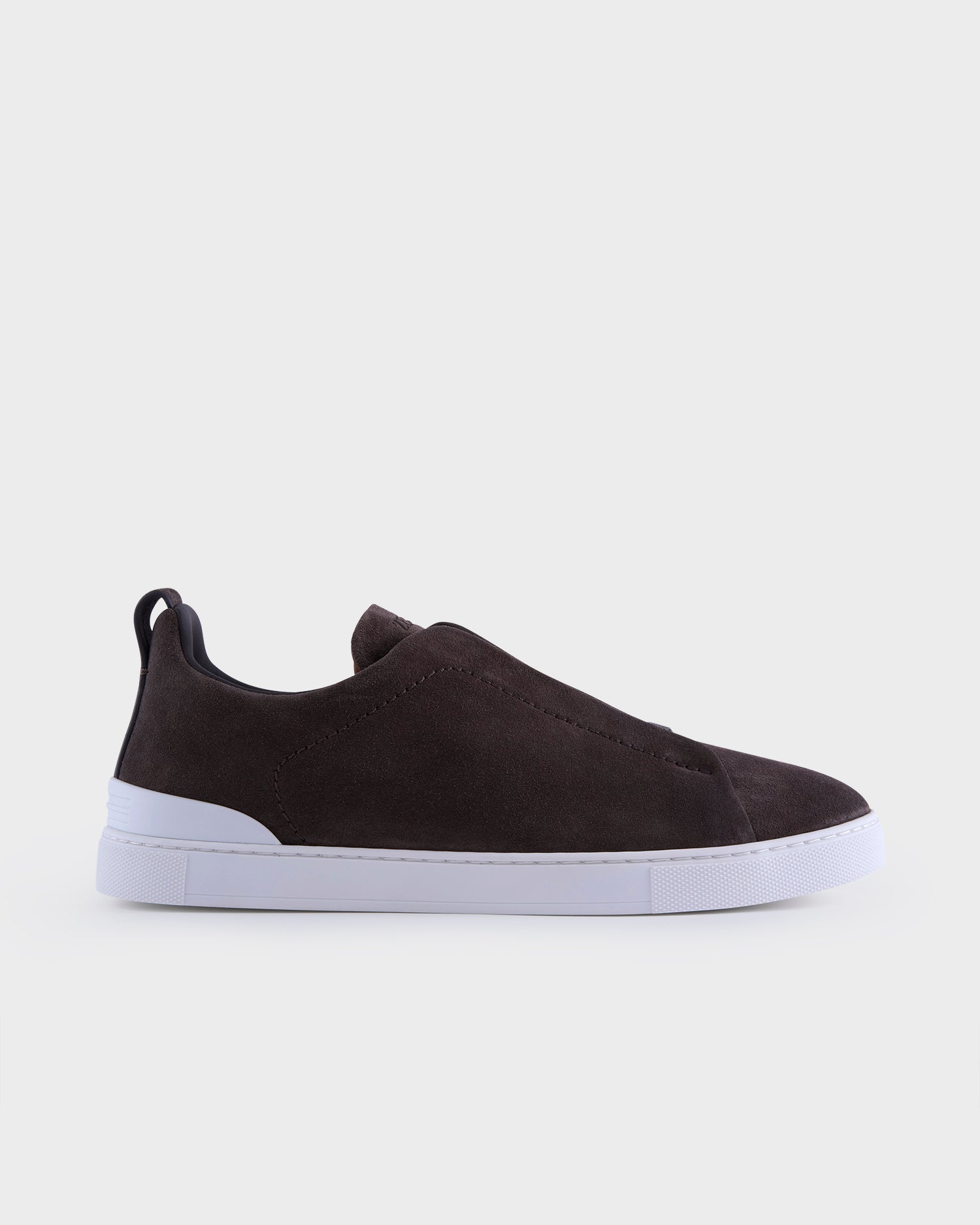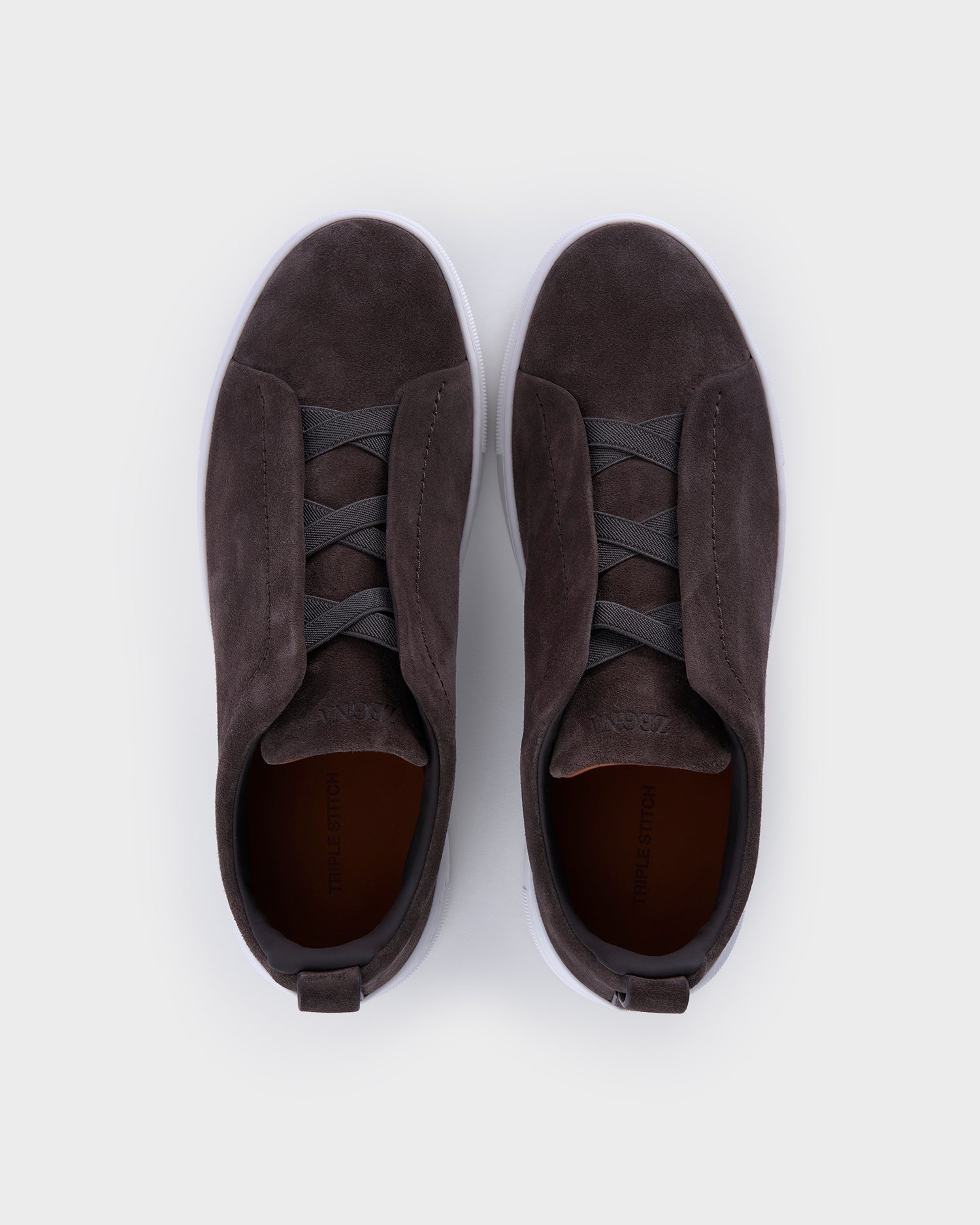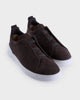 The brown suede Triple Stitch™ low top sneakers' construction makes them lightweight and flexible. Zegna's signature triple-crossed elastic detail ensures an easy slip-on fit, while evoking the traditional hand-stitching of tailored jackets to symbolise and honour Zegna's legacy of fine craftsmanship. Foliage-coloured leather lining completes the look.