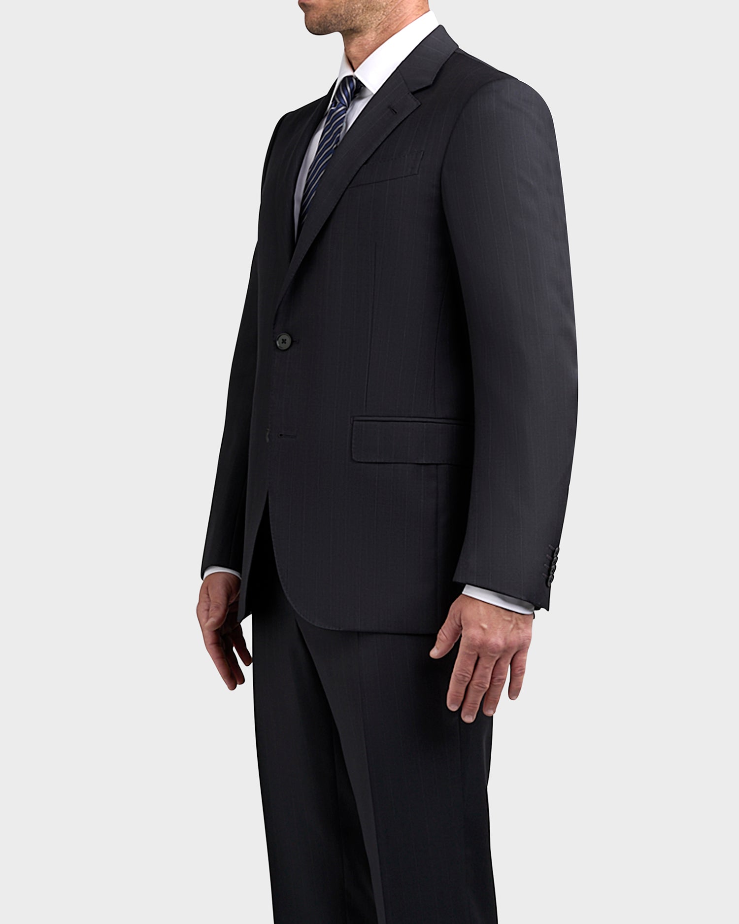 Deep Charcoal with Fine Pinstripe 15Milmil15 Wool Silk Suit