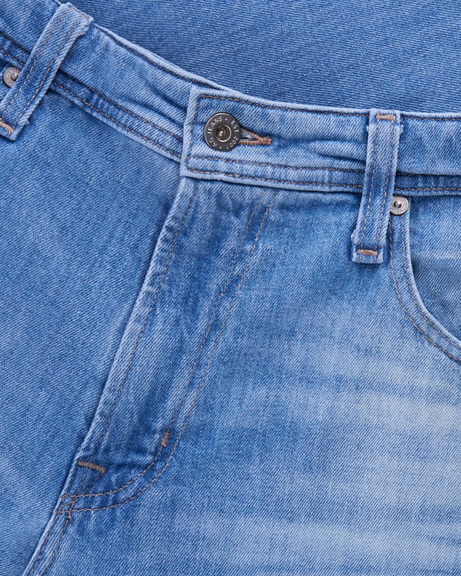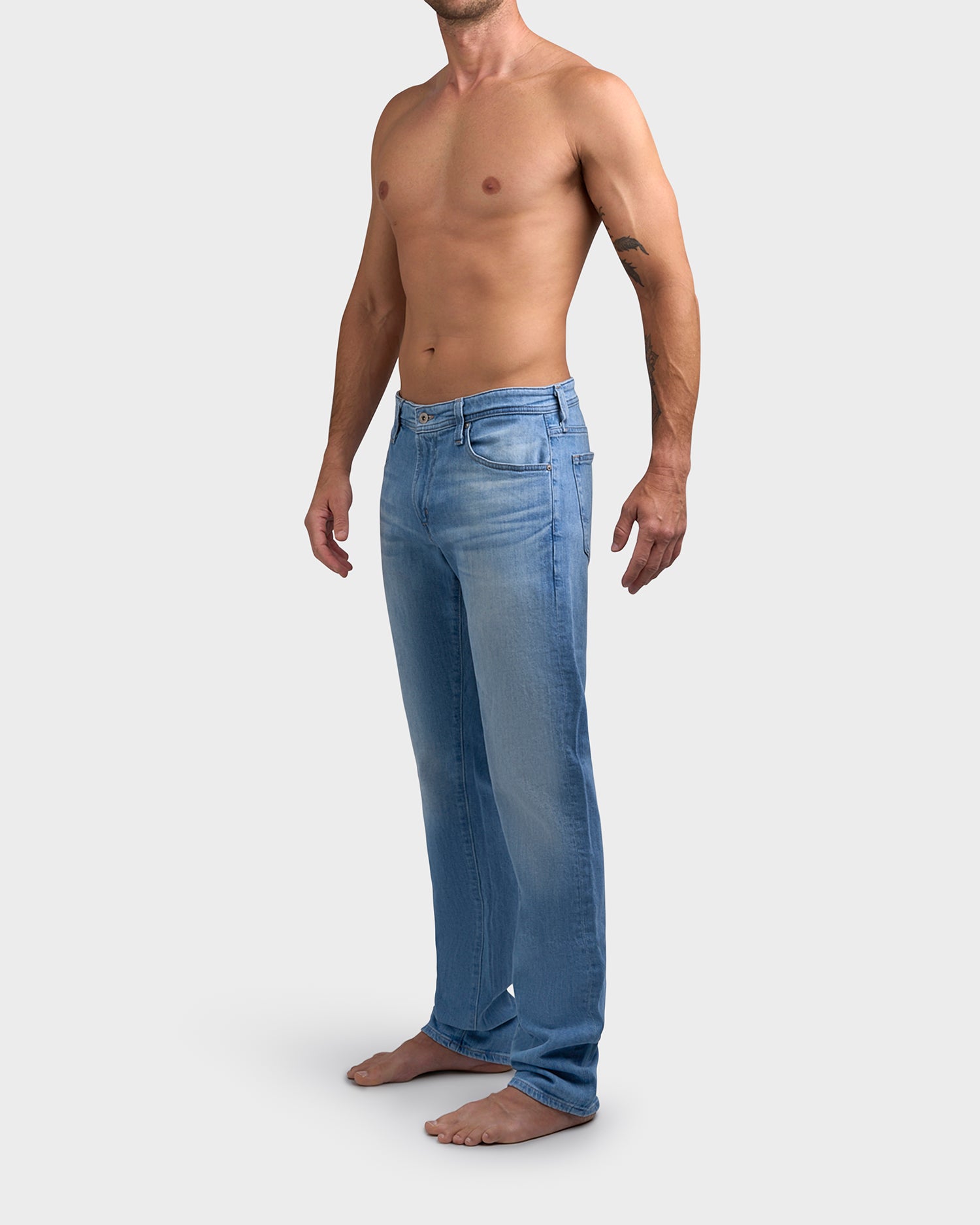 Everett is a mid-rise slim straight jean with a 34" inseam, crafted from Italian comfort stretch - finished in a light blue wash.