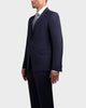 Impeccably tailored in Italy, this navy suit with refined pinstripes exemplifies modern sophistication. Cut to a slim, drop 8 silhouette, it sculpts a sharp, contemporary profile while maintaining ease of movement. Classic details—flap pockets, notch lapels, and double vents—lend timeless appeal, making it a versatile choice for both business and formal occasions.