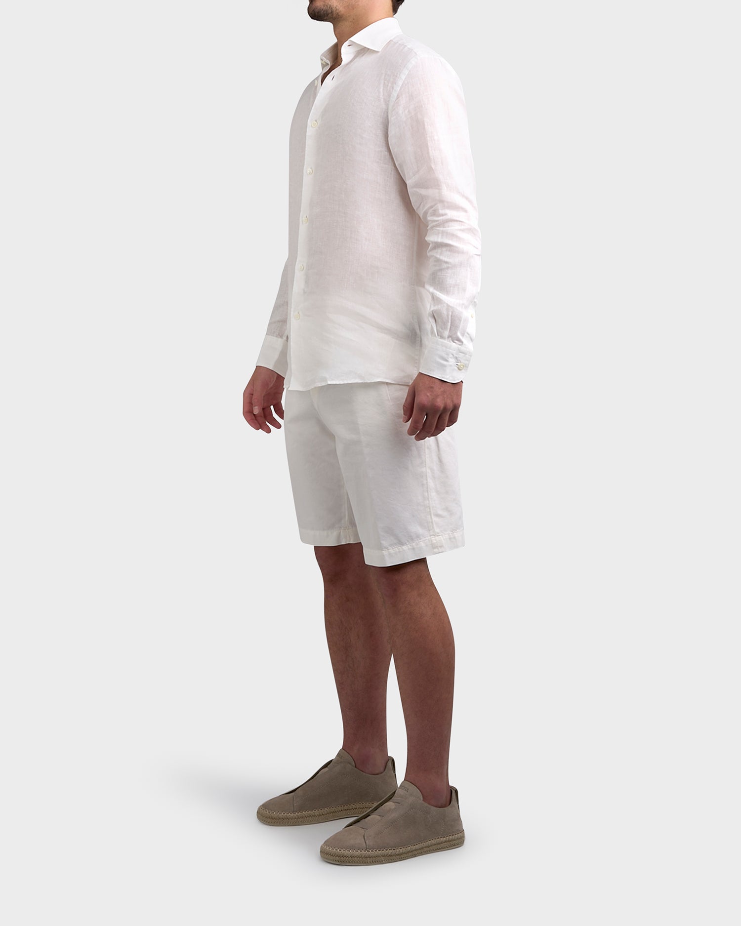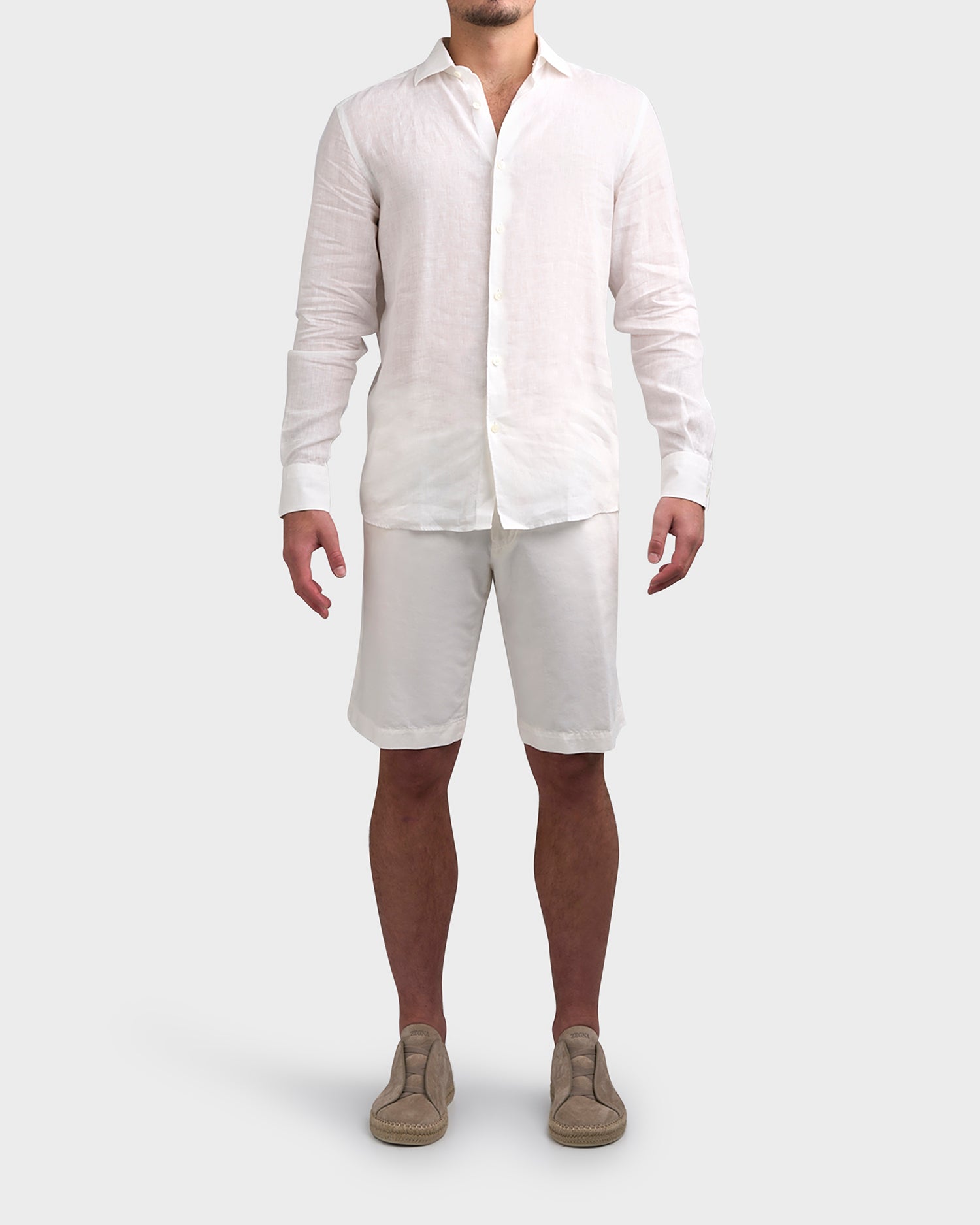 Made from a lightweight natural linen, the white pure linen long-sleeve shirt feels fresh against the skin. The long-sleeve shirt is styled with a semi-spread collar and refined detailing.