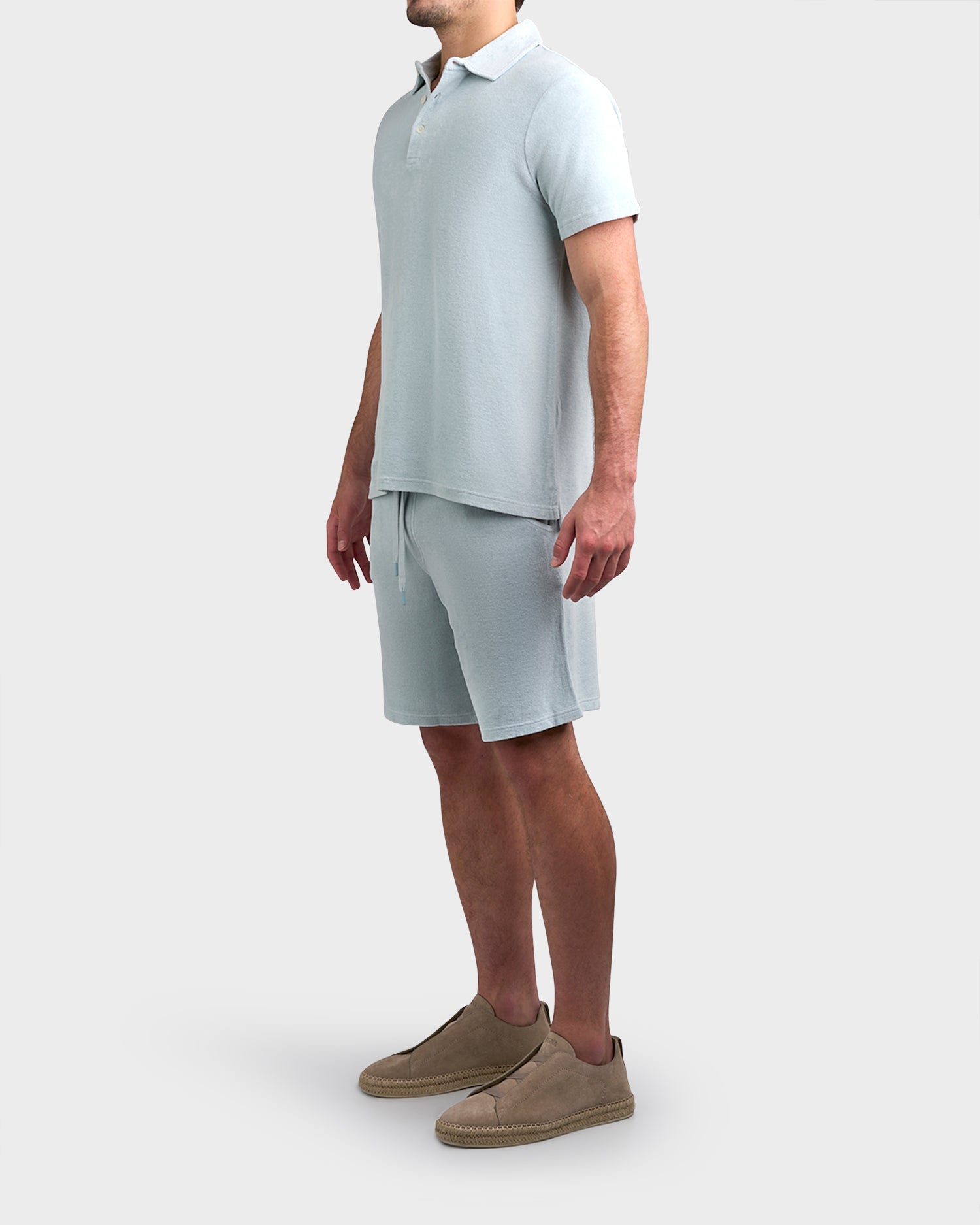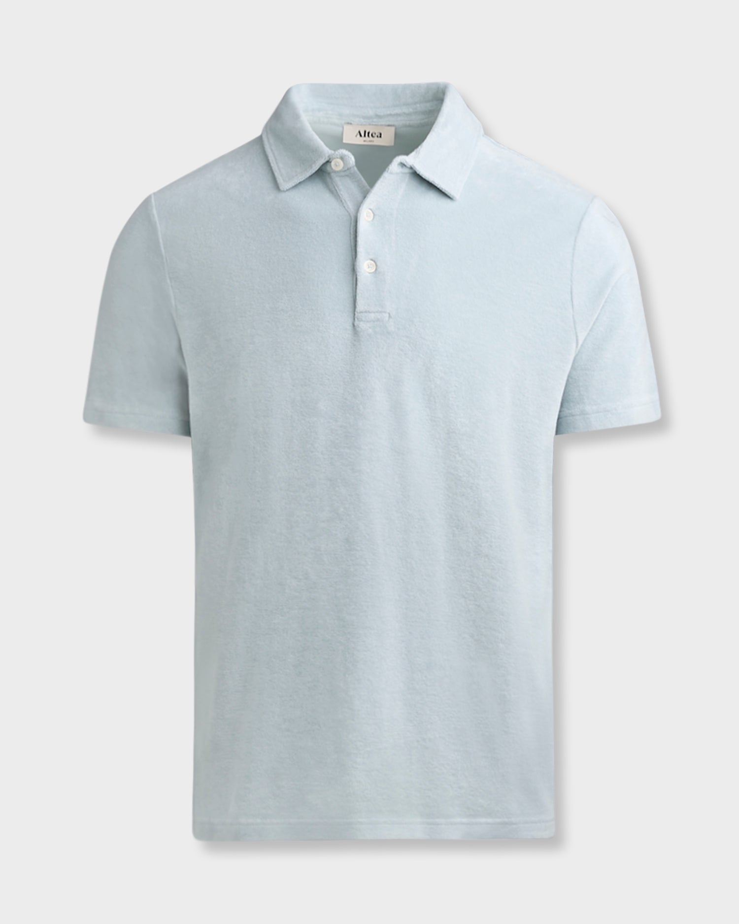 Light Ice Blue Cotton Terry Polo Neck T-Shirt