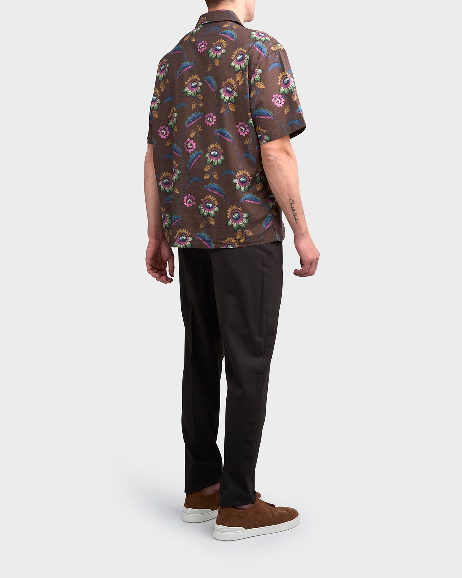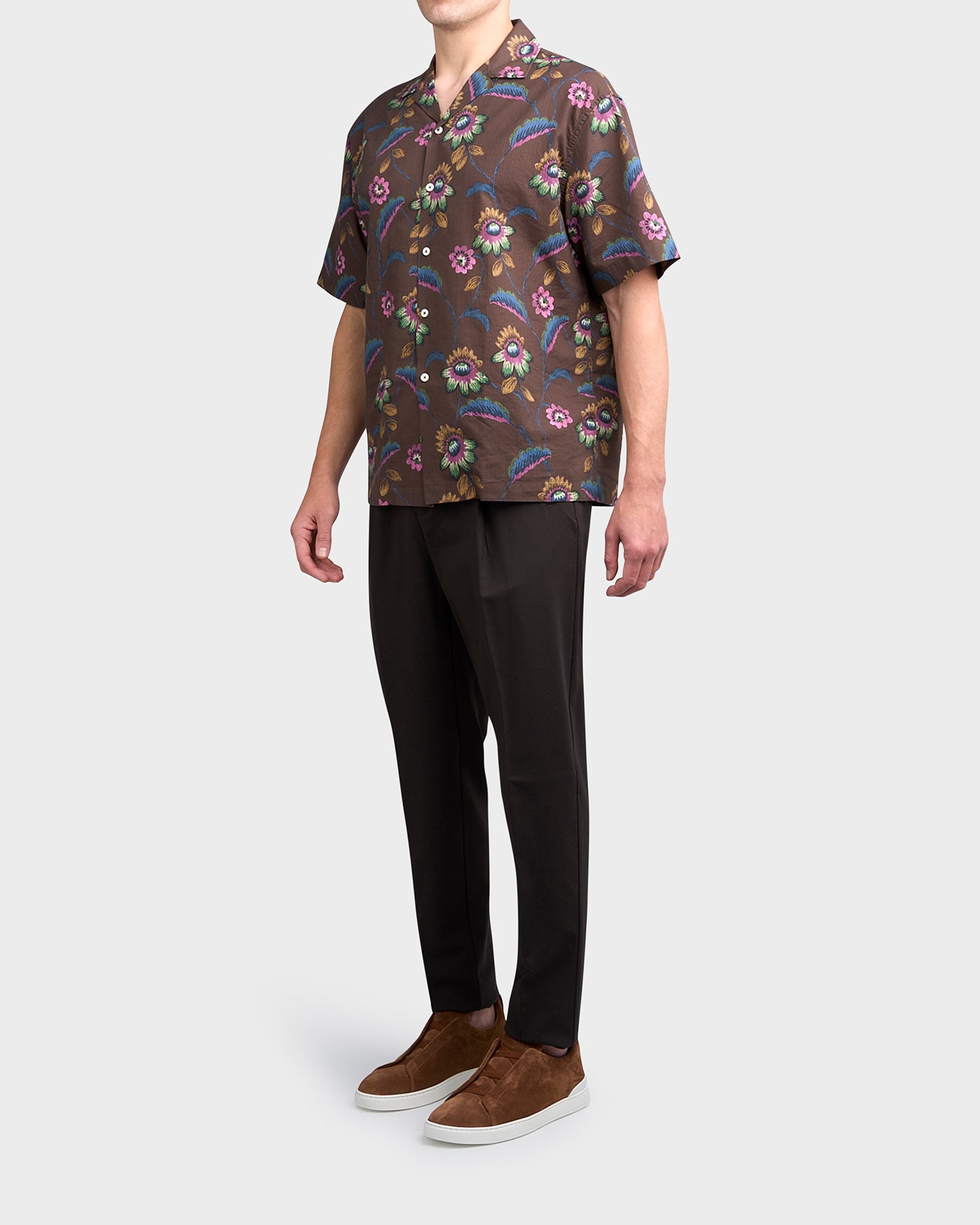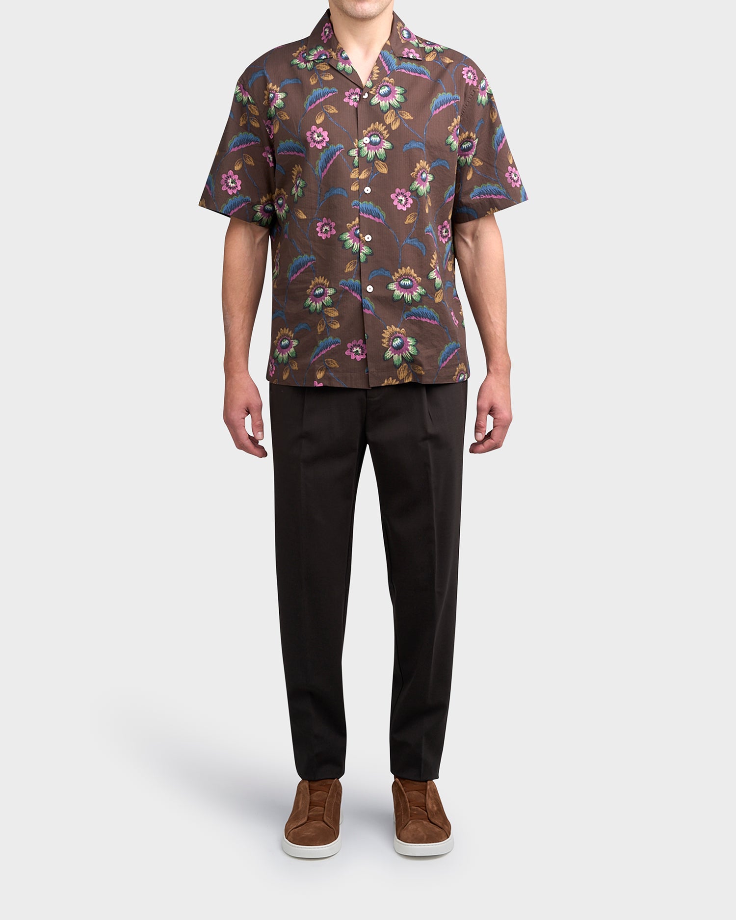 Brown Floral Cuban Collar Shirt