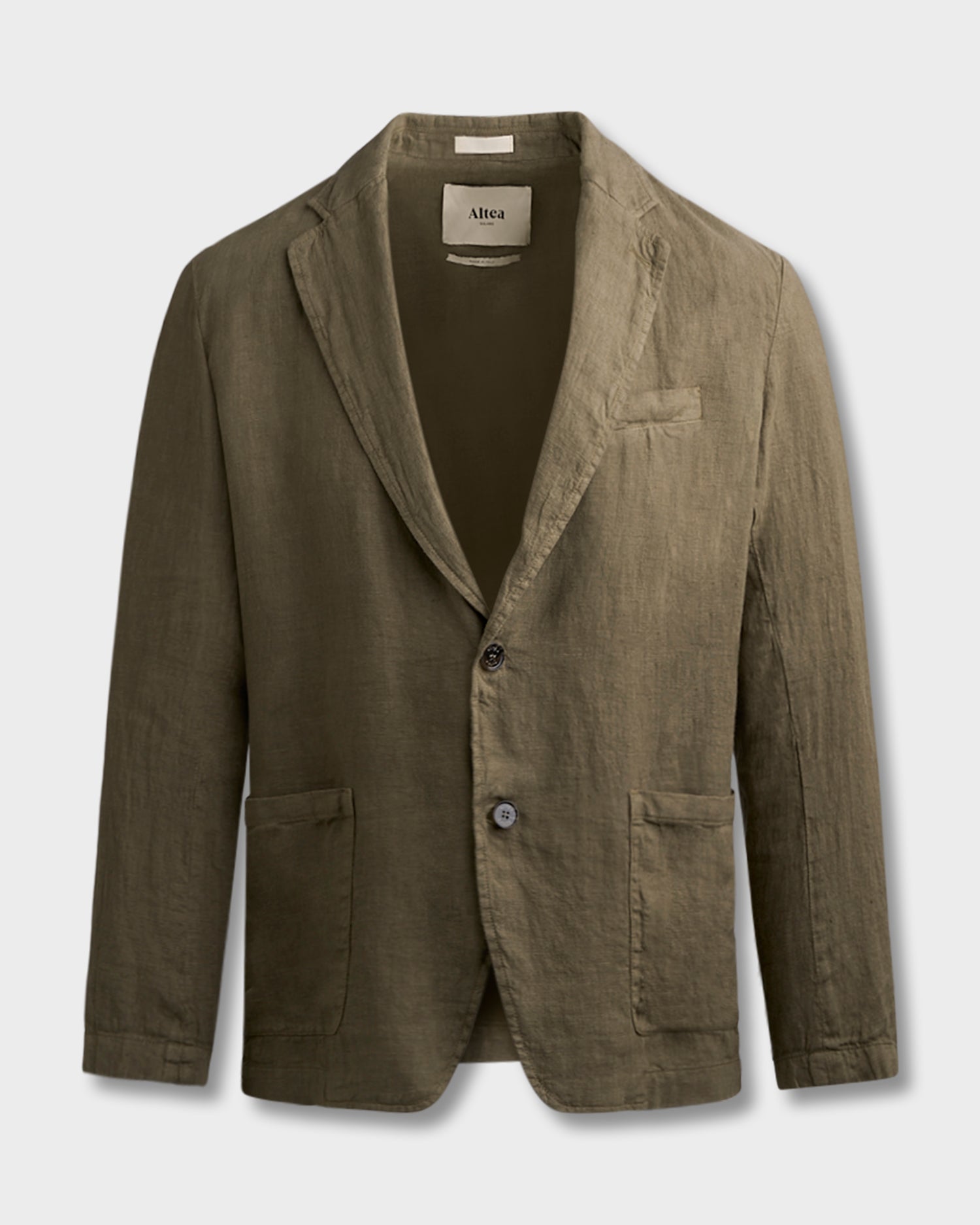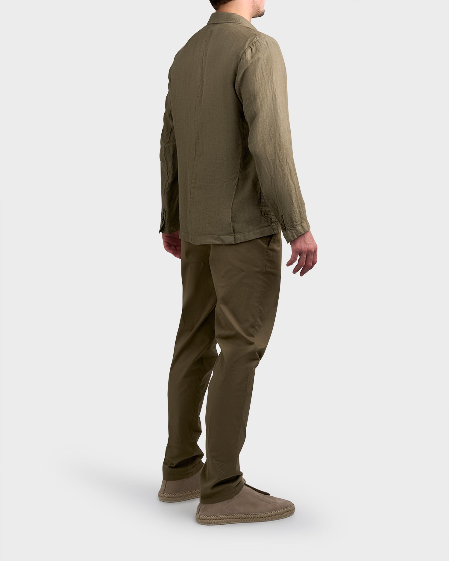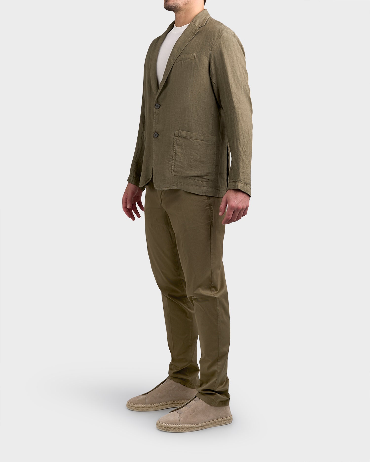 Army Green Pure Linen Patch Pocket Sports Jacket