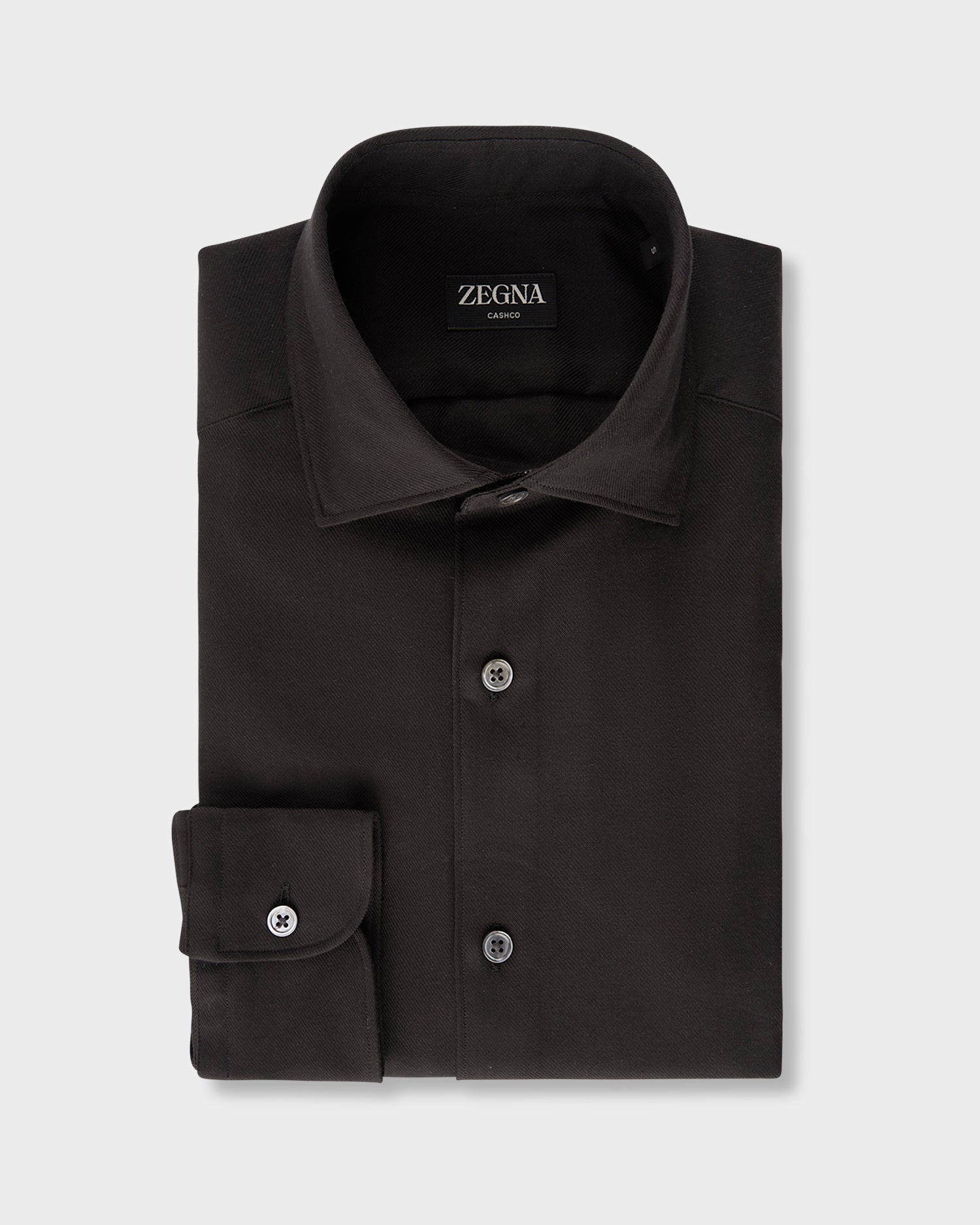 The black Cashco long-sleeve shirt is made from one of Zegna's lightest yarns. Perfect for everyday wear, this elegant, long-sleeve shirt is styled with a semi-spread collar and detachable stays.