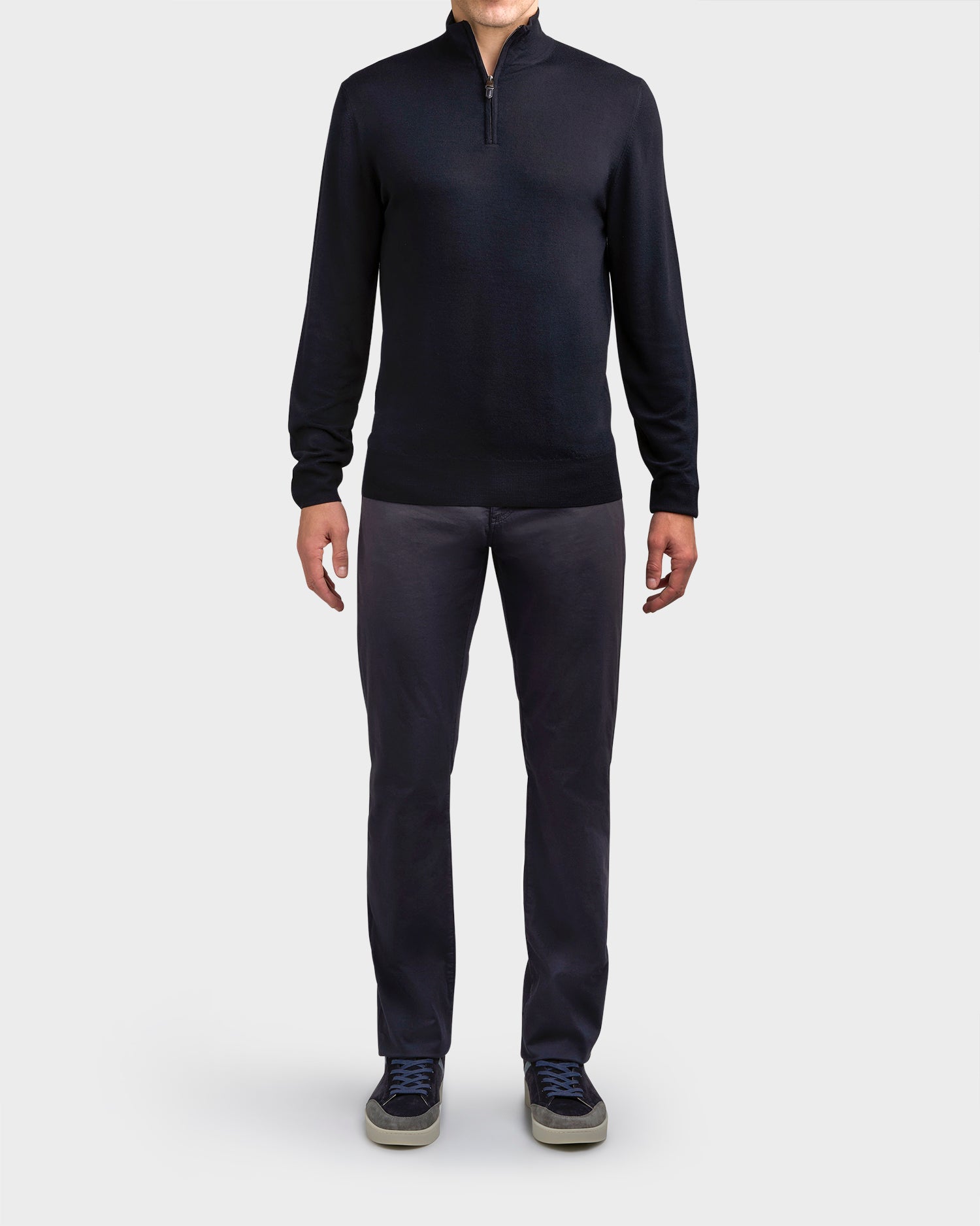 Zipper cardigan made of pure extra-fine merino wool, designed for the man who wants to combine contemporary style and functionality. The special yarn, capable of enhancing fineness and movement, gives the piece an exceptionally soft feel and casual lightness. The plain knit finish make it a versatile ally for every season, ideal for facing travel and dynamic days with a natural and relaxed elegance.