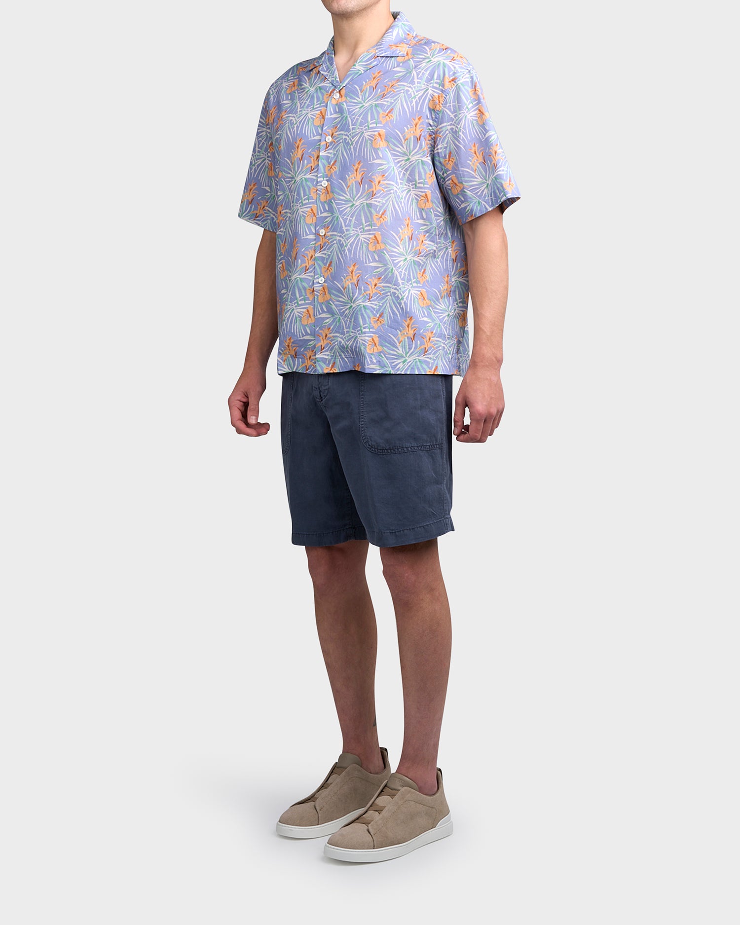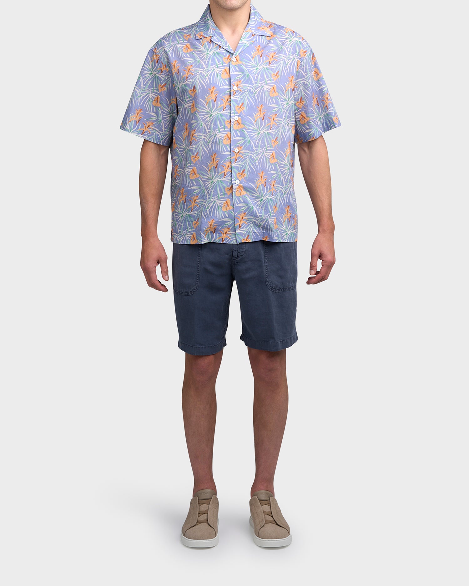 Blue And Orange Floral Cotton Shirt