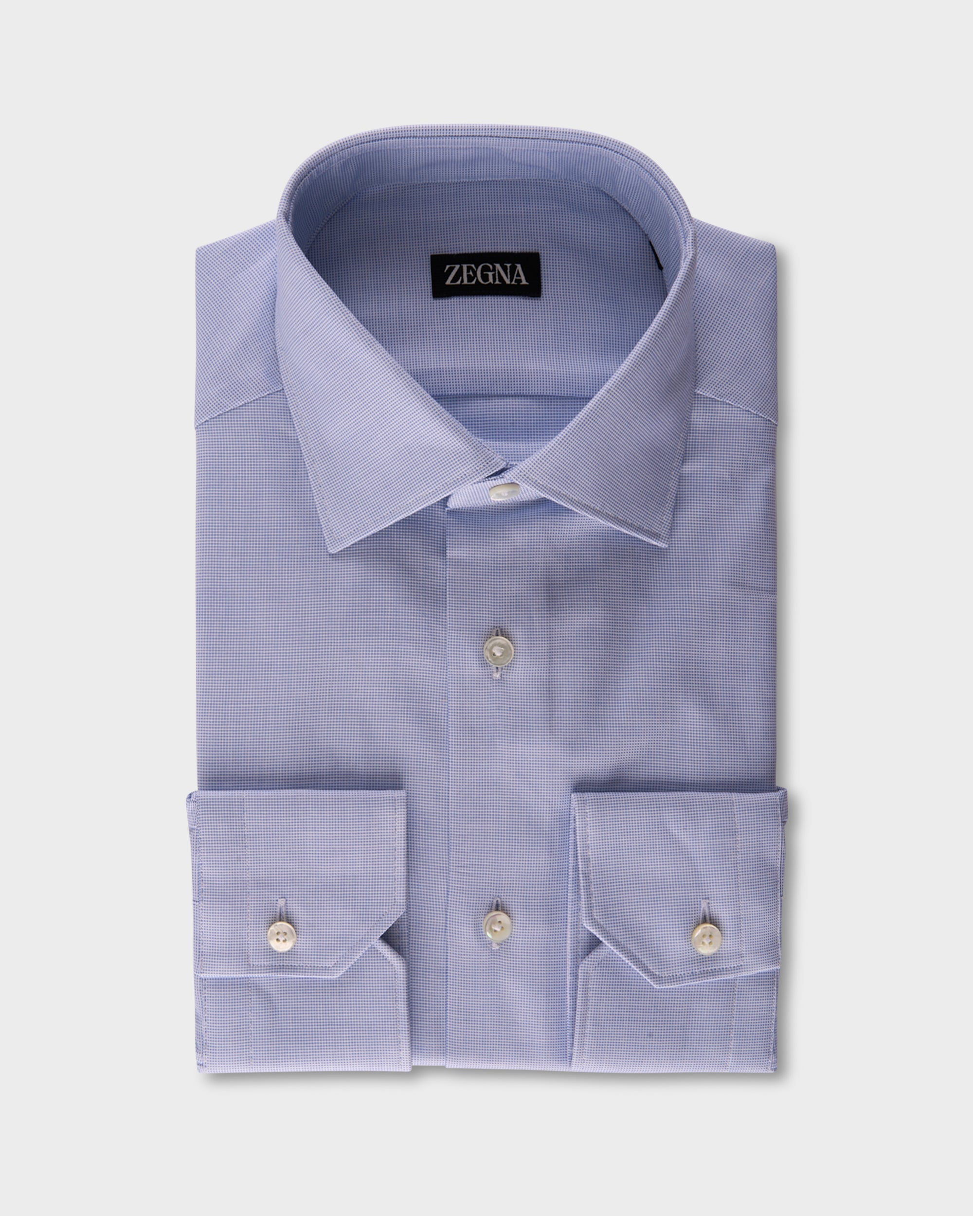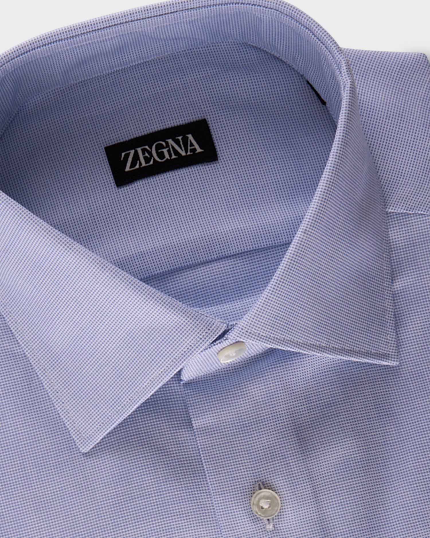 Zegna's expertise in fine textiles shines in this blue pure cotton long-sleeve tailoring shirt. This resilient, naturally sophisticated material is the perfect match for a staple of elegant menswear.