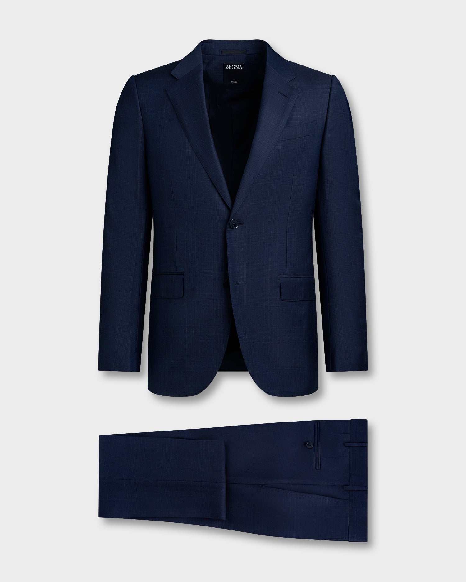 The blue grey melange Trofeo wool tailoring suit is made from ZEGNA's proprietary Australian merino wool. In addition to its superior comfort, this fabric's smooth finish is the perfect backdrop for the understated pattern. The long fibres of Trofeo wool have an innate elasticity, resulting in comfortable garments with a smooth finish that's naturally breathable and soft.