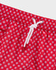 Bright Red With Powder Blue and White Spot Pattern Swim Shorts