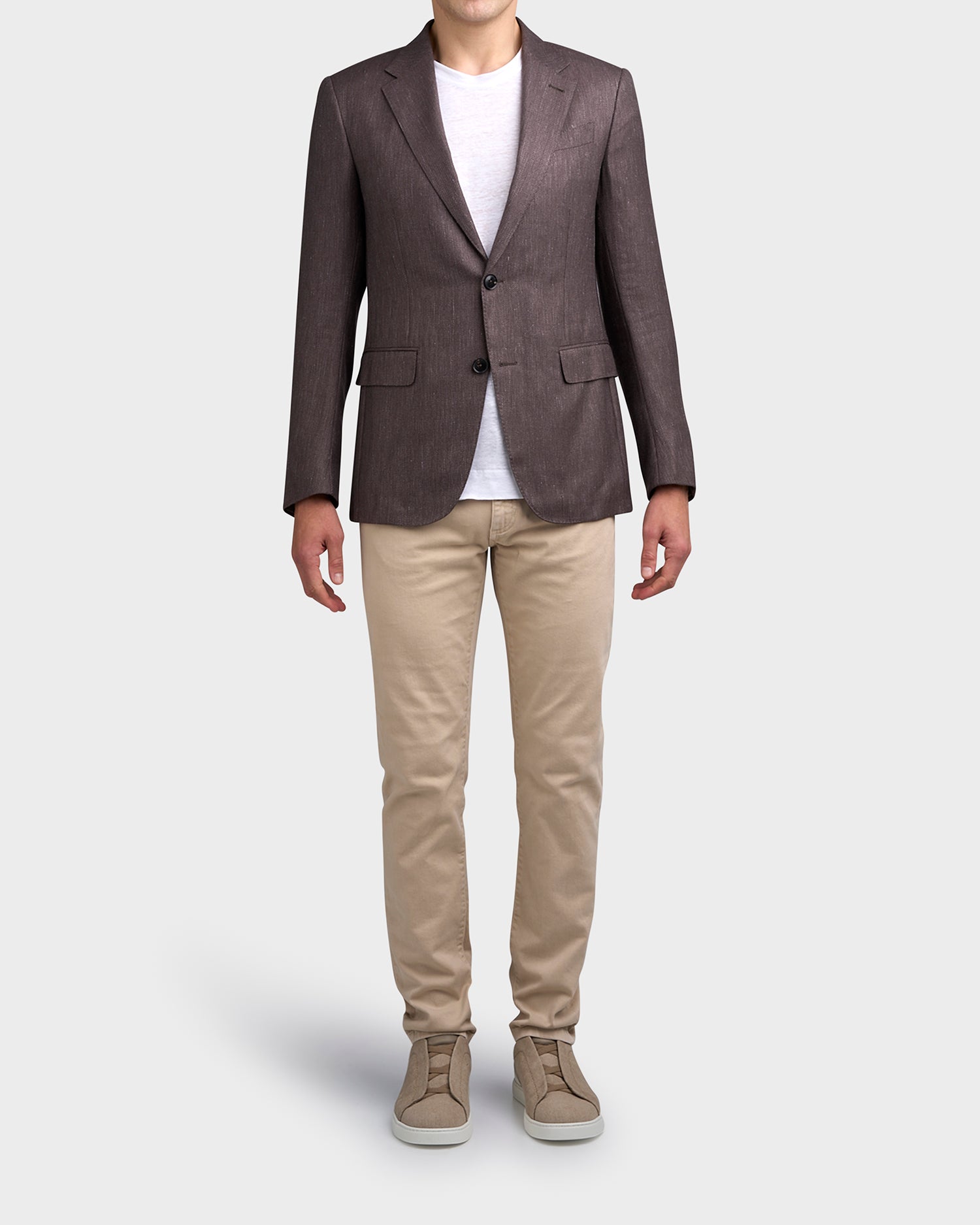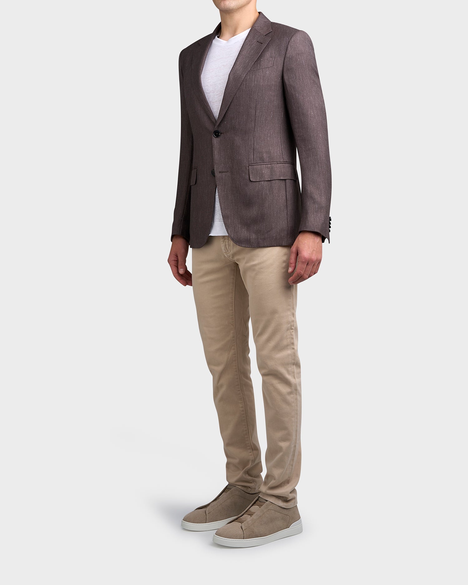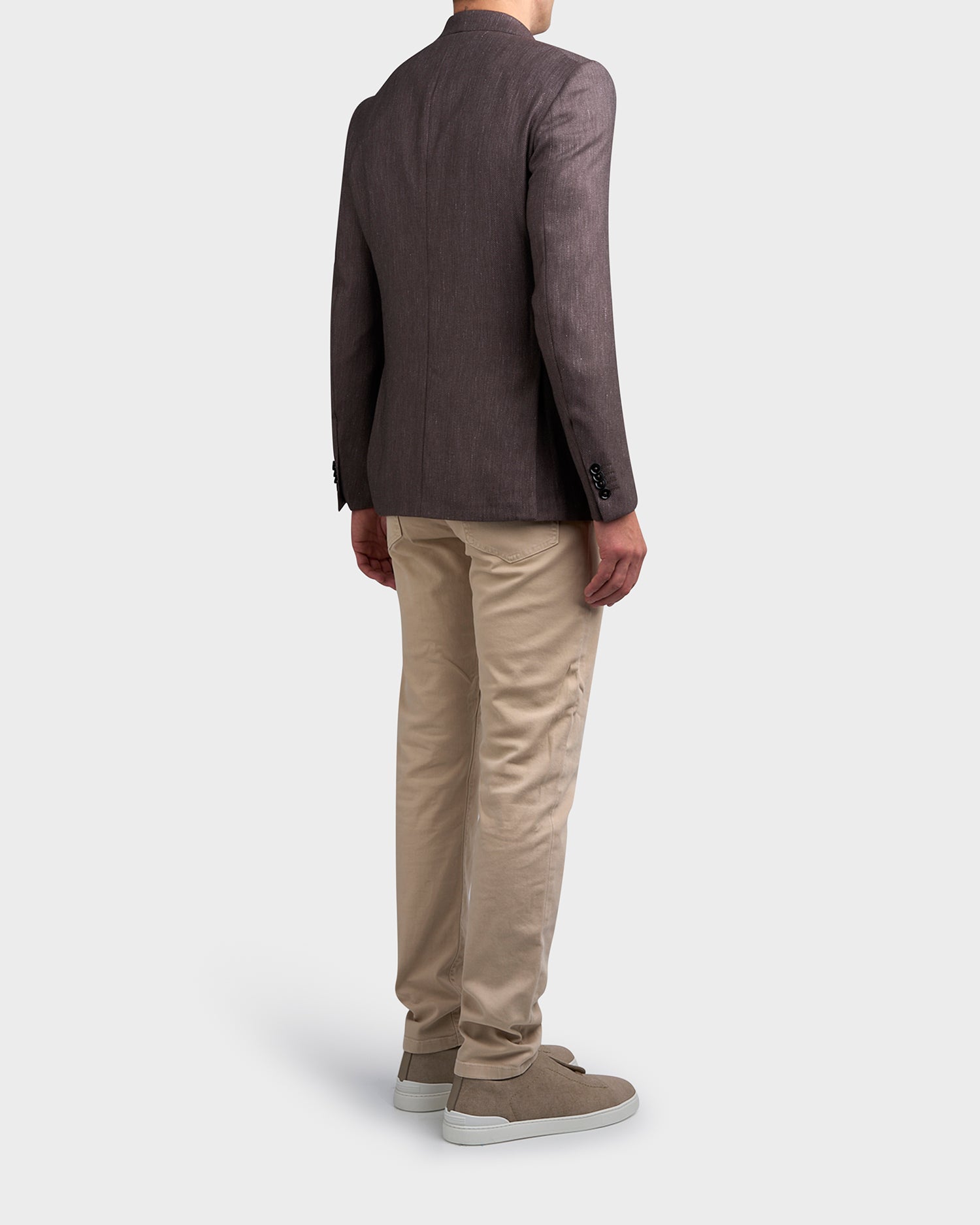 Soft cashmere and silk naturally add a luminous touch to the foliage brown linen sports jacket. This luxurious blend of natural materials adds an effortlessly sophisticated edge to your spring summer wardrobe.