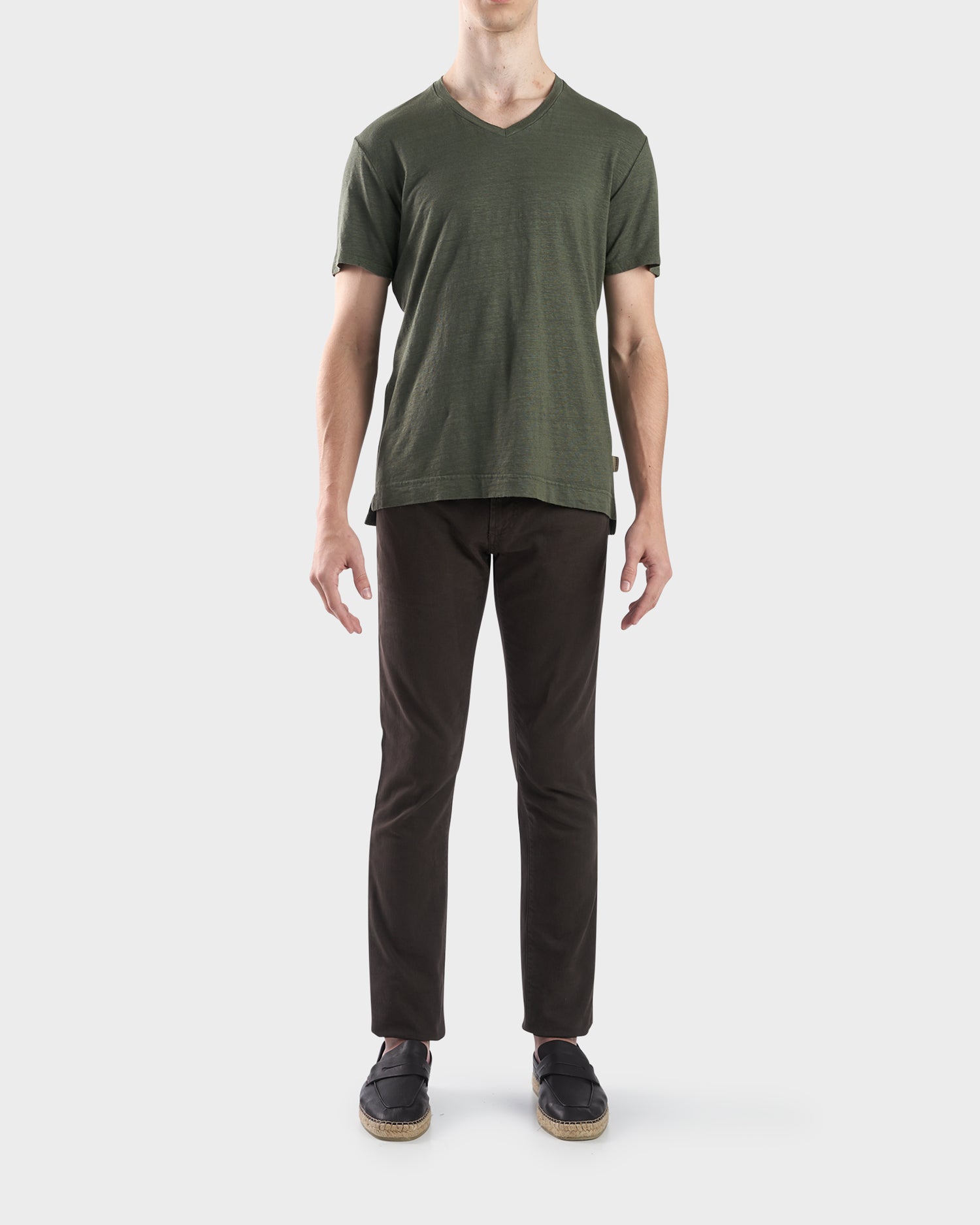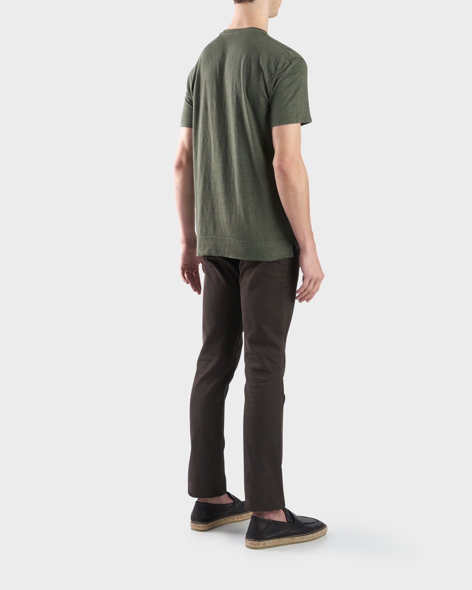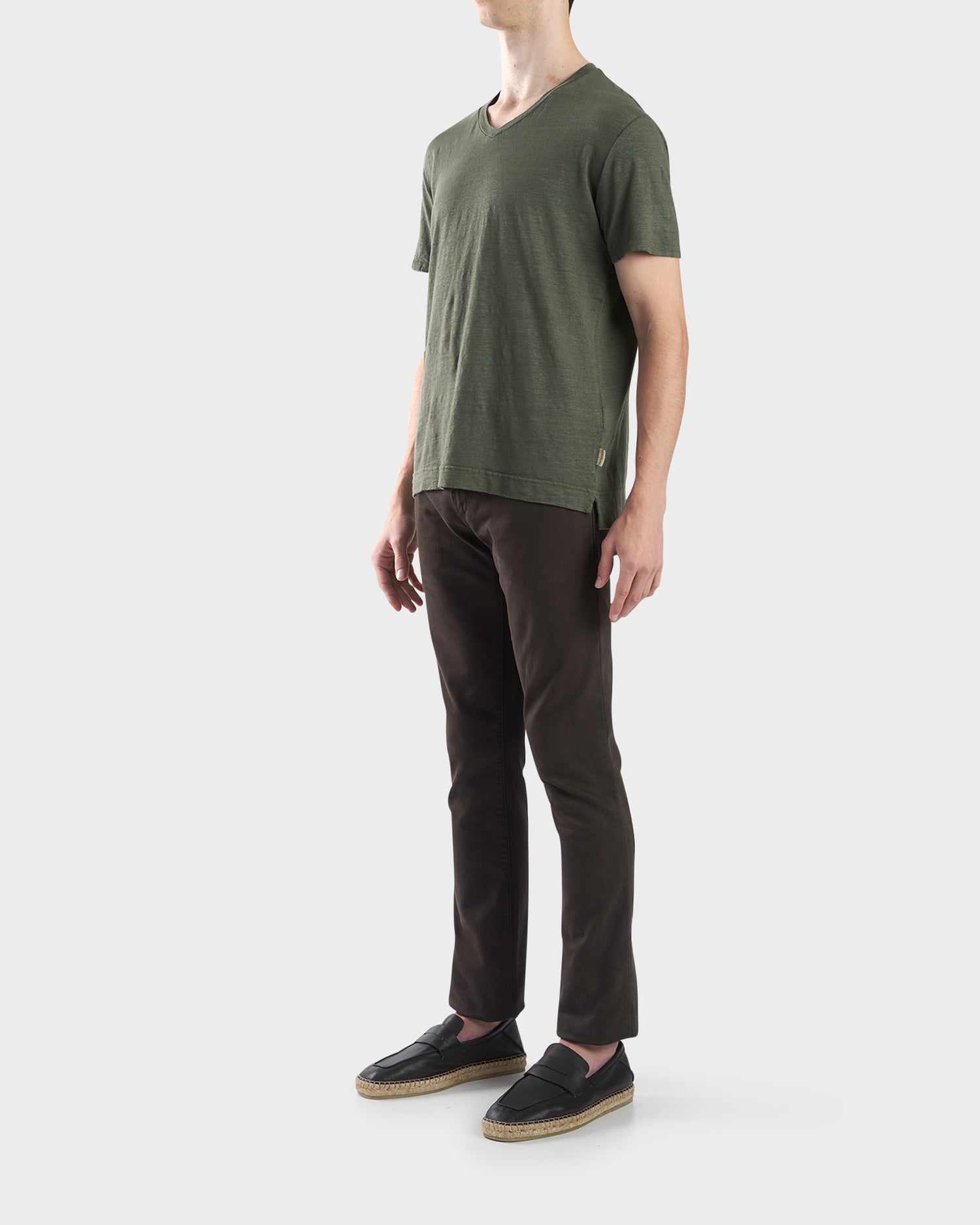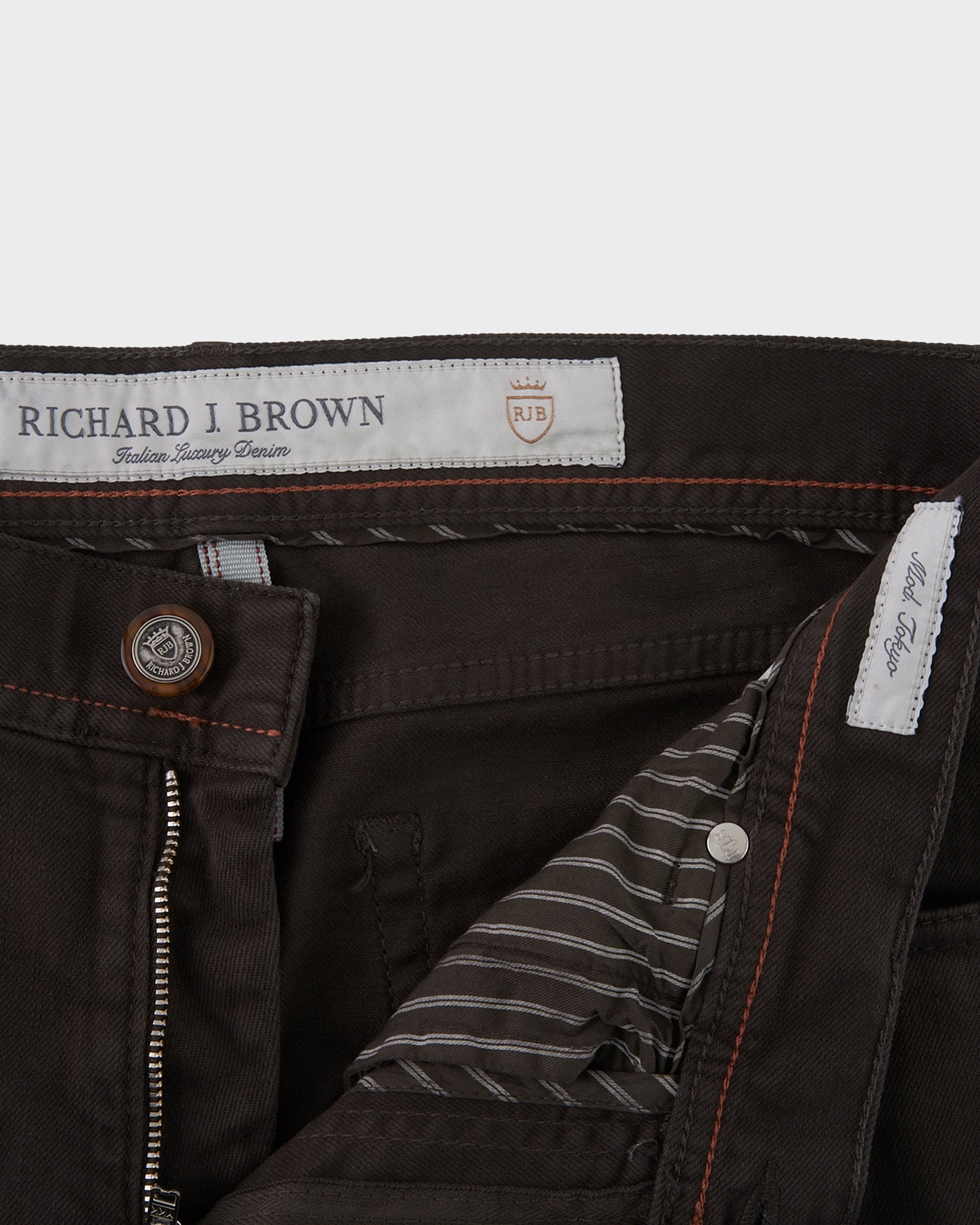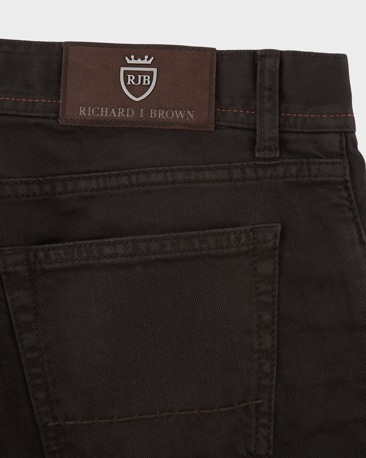The hallmark of any RJB trouser is the hand stitching on the back pockets sewn by expert embroiderers with the finest yarns. The yarn used reflects the colours used for the rich and important patch, in several versions, from suede to nubby fabrics and enriched with an embossed or galvanized metal logo.