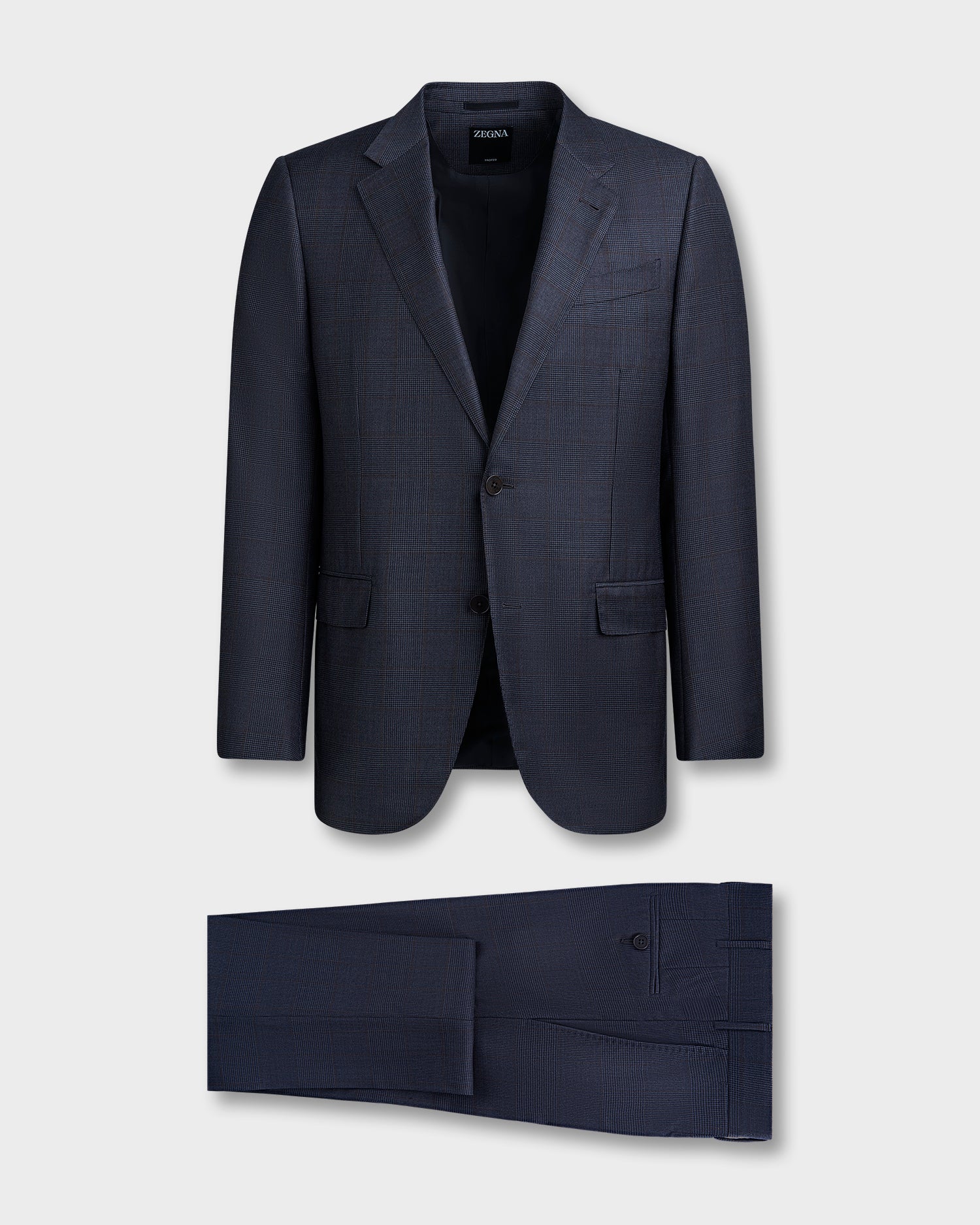 The blue grey melange Trofeo wool tailoring suit is made from ZEGNA's proprietary Australian merino wool. In addition to its superior comfort, this fabric's smooth finish is the perfect backdrop for the understated pattern. The long fibres of Trofeo wool have an innate elasticity, resulting in comfortable garments with a smooth finish that's naturally breathable and soft.