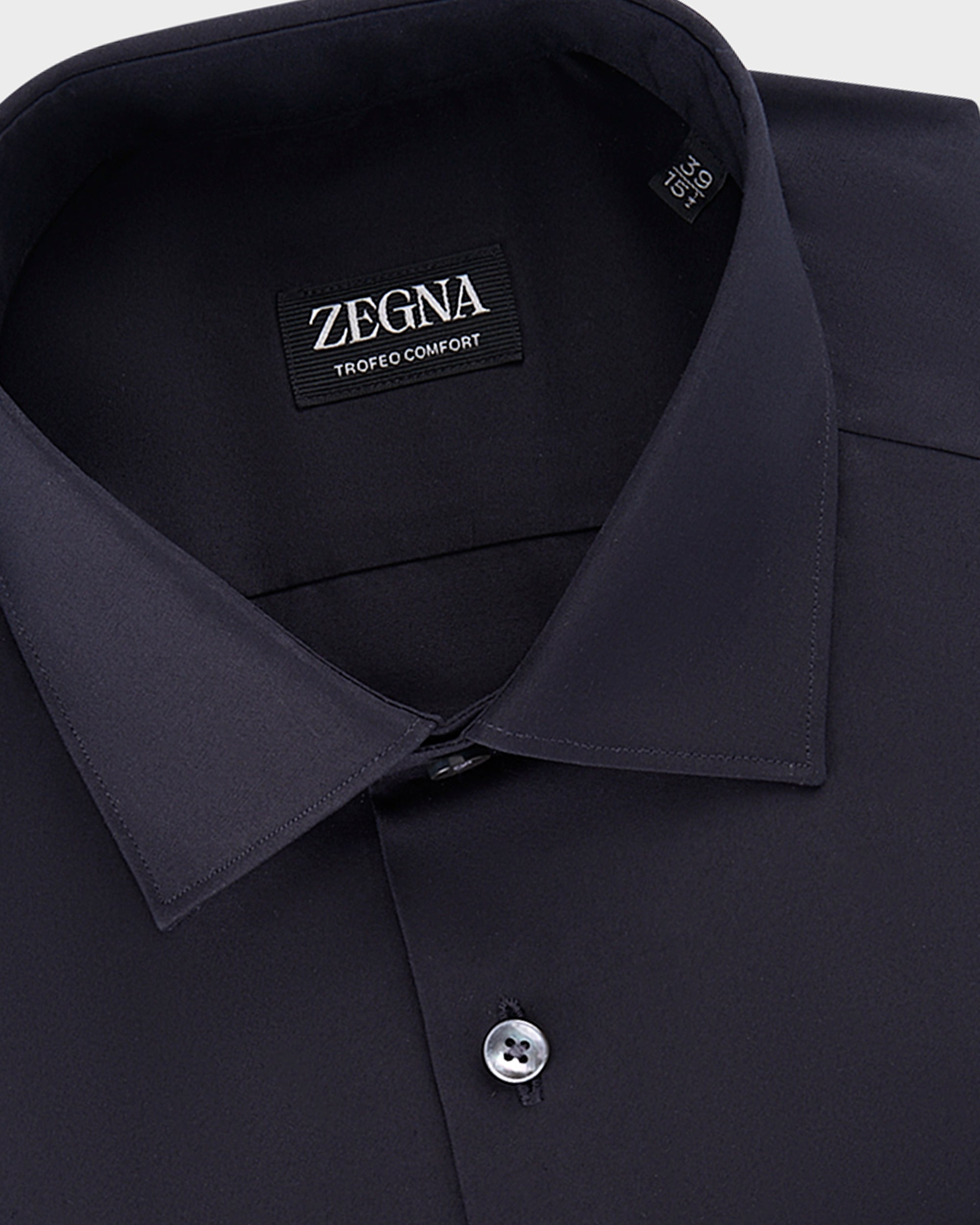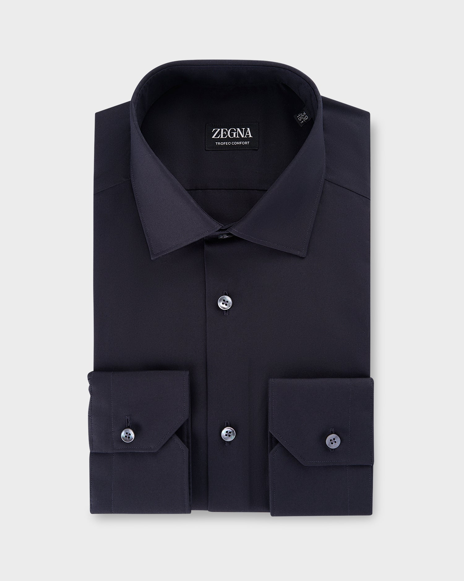 Crafted from pure Trofeo™ cotton, only the longest, more elastic fibers are hand-picked to grant this dark blue shirt its premium quality and performance. The classic button-up is styled with a semi spread collar and standard cuffs.