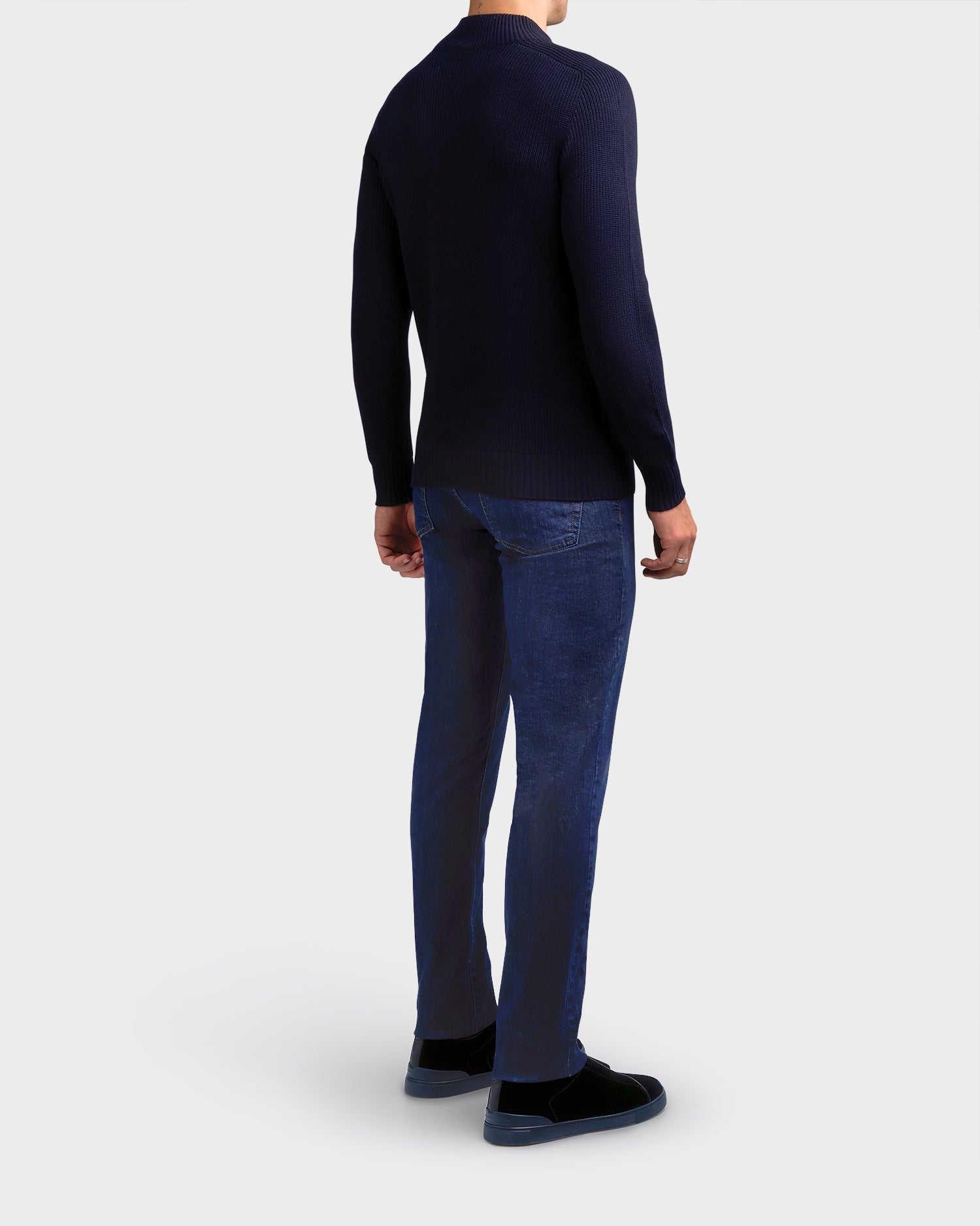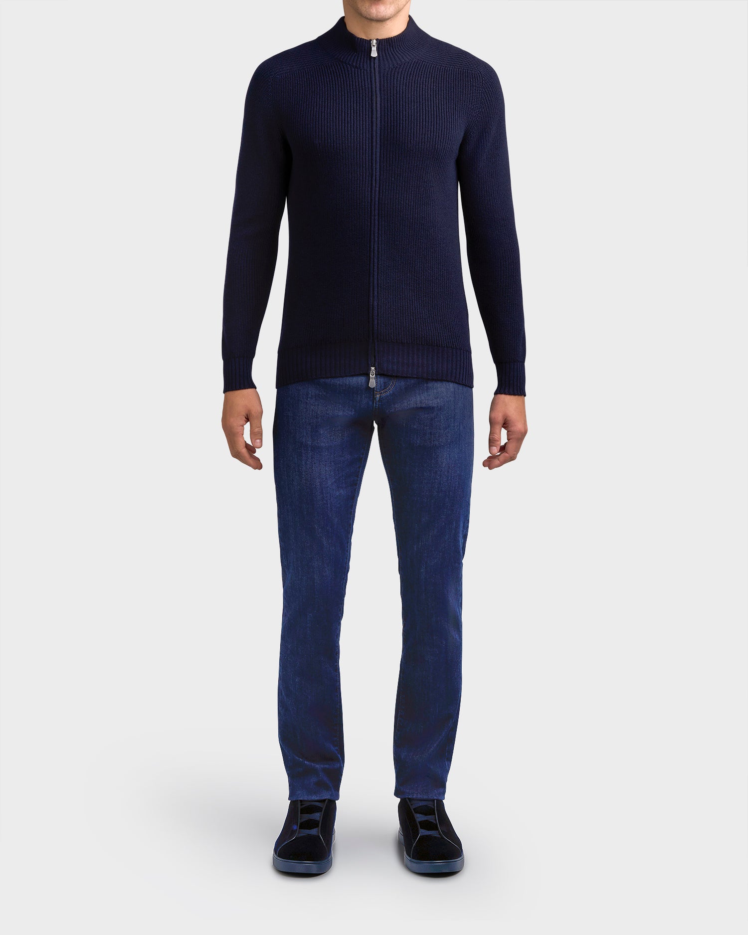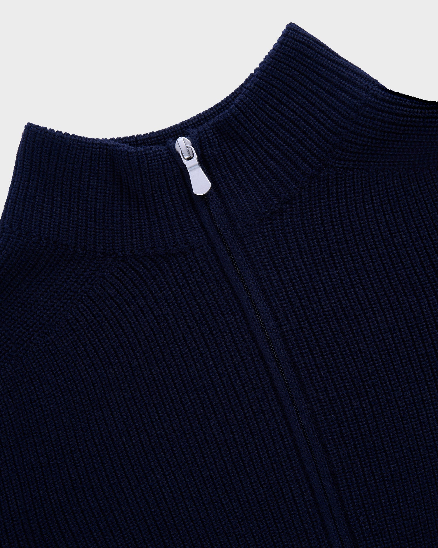 Dark Blue Zip Chunky Virgin Wool Knit Sweater
