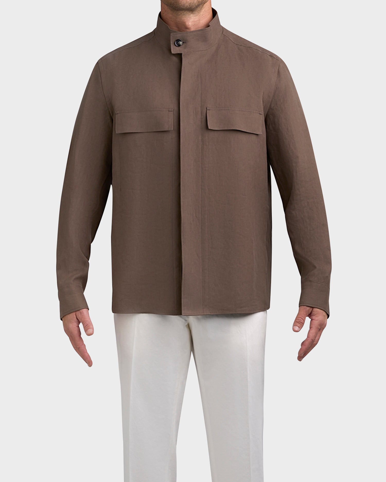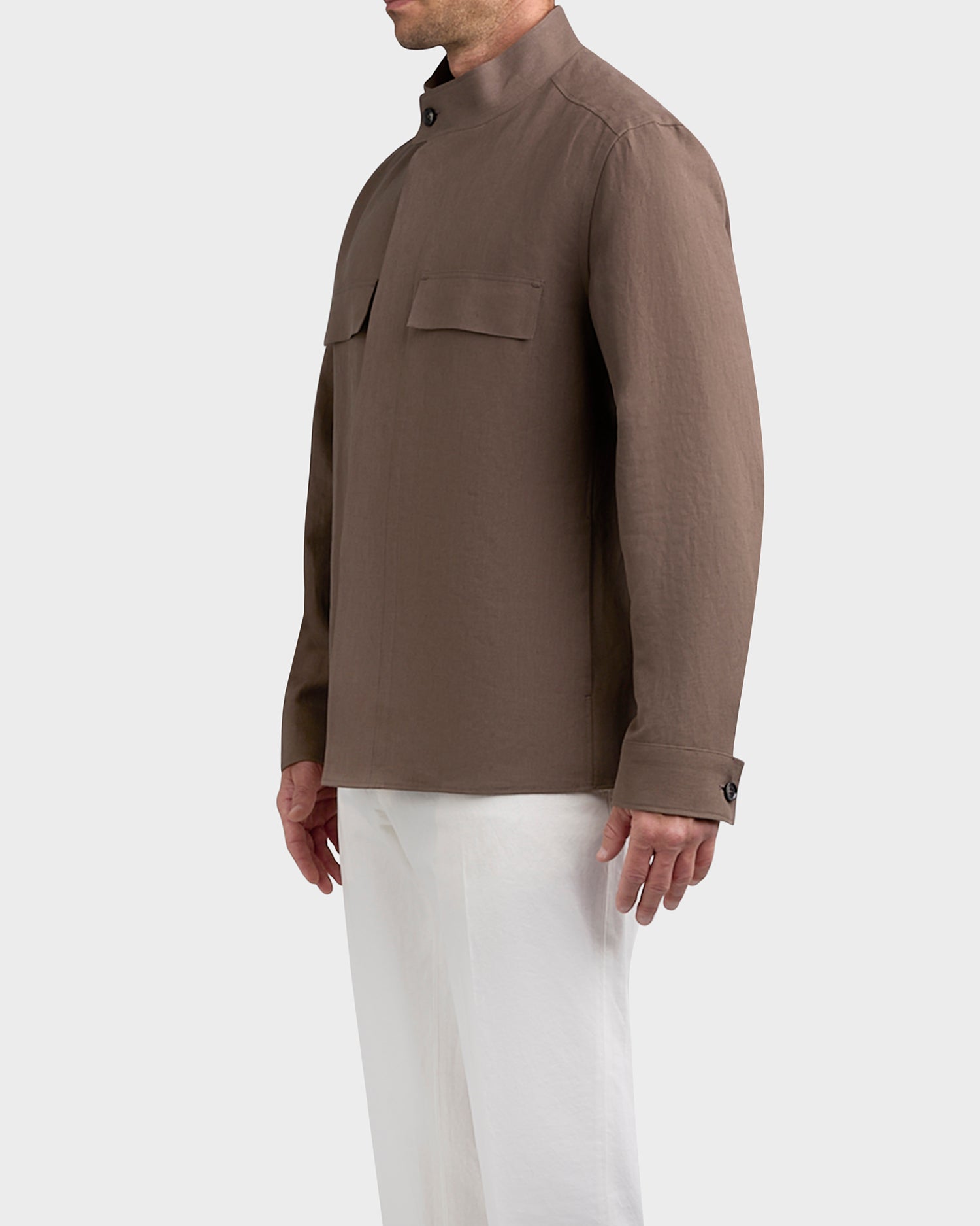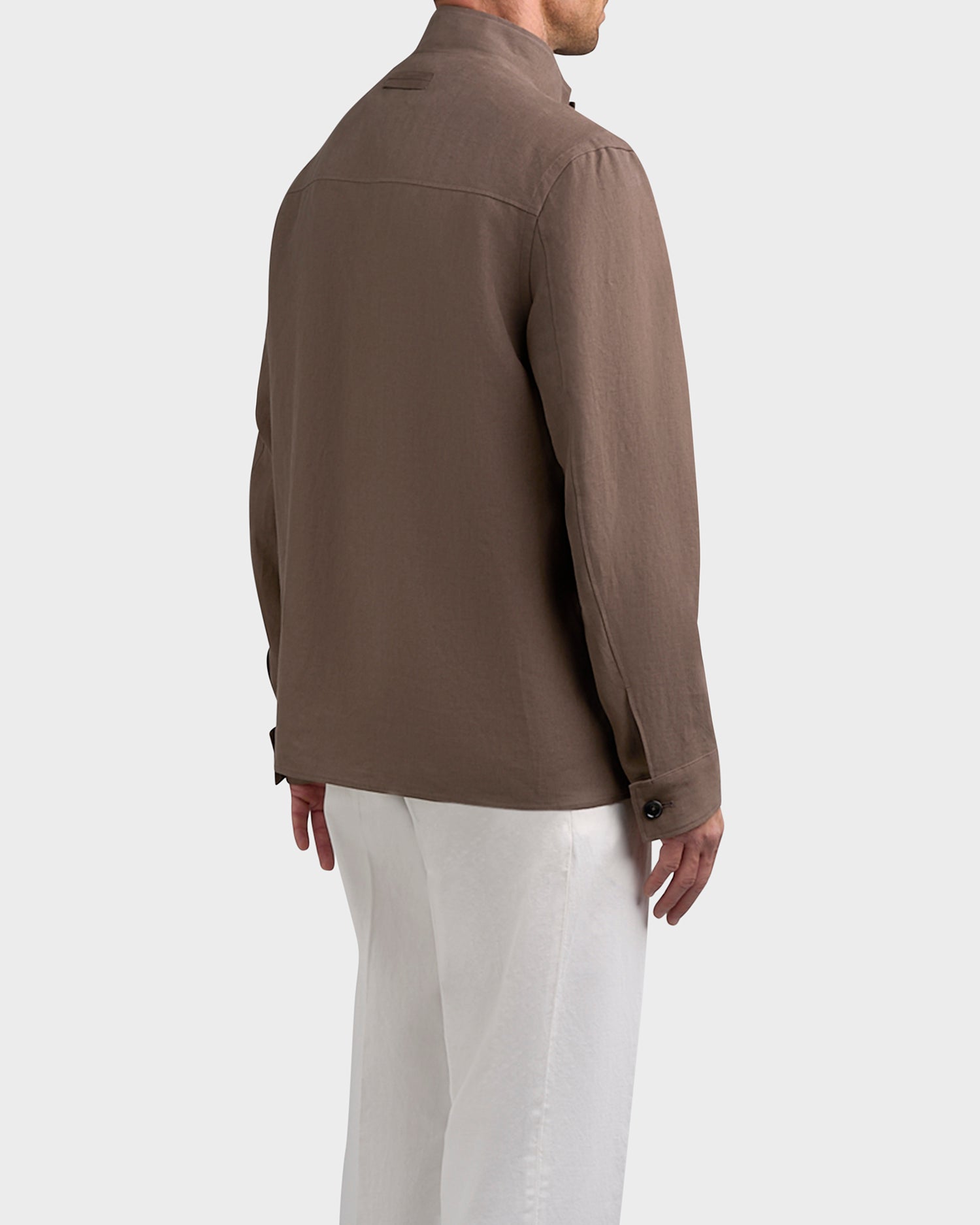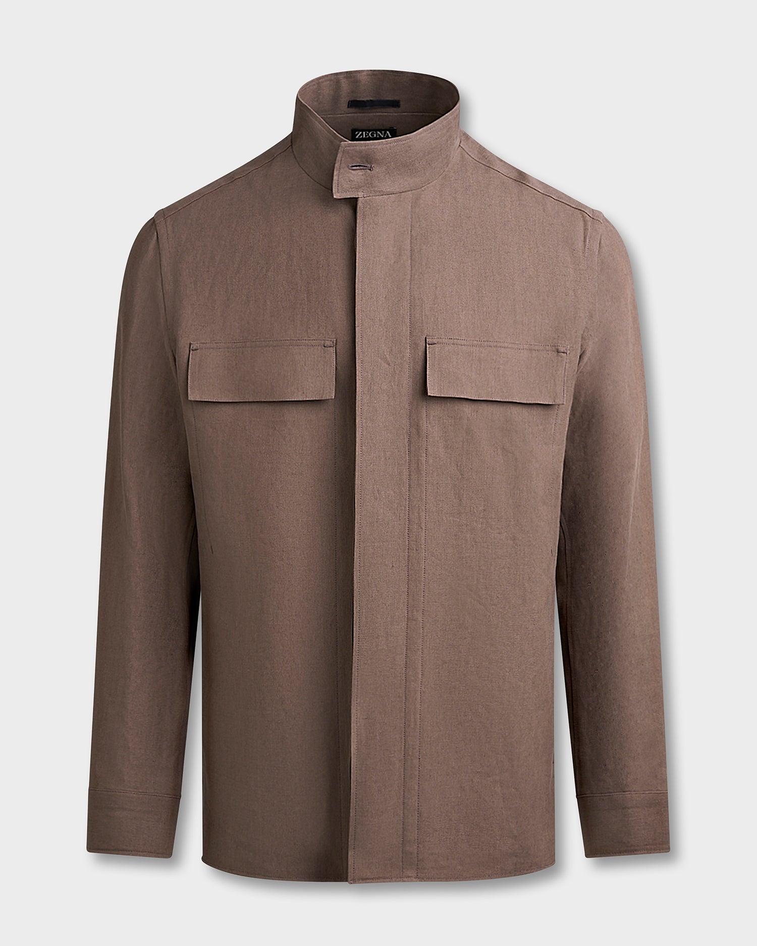 This dark dawn Oasi Lino overshirt is woven from specially sourced linen, honouring ZEGNA's commitment to sustainability and traceability. Fitted with a special membrane for added structure, its casual long-sleeve silhouette is styled with a classic shirt collar and cuffs. A hidden button closure ensures a streamlined look.