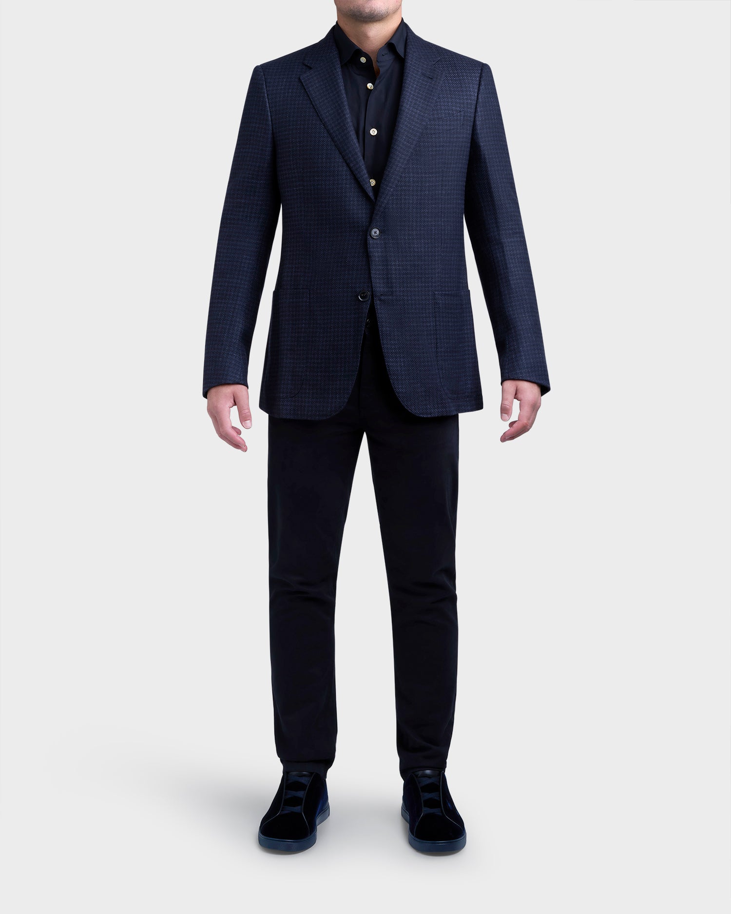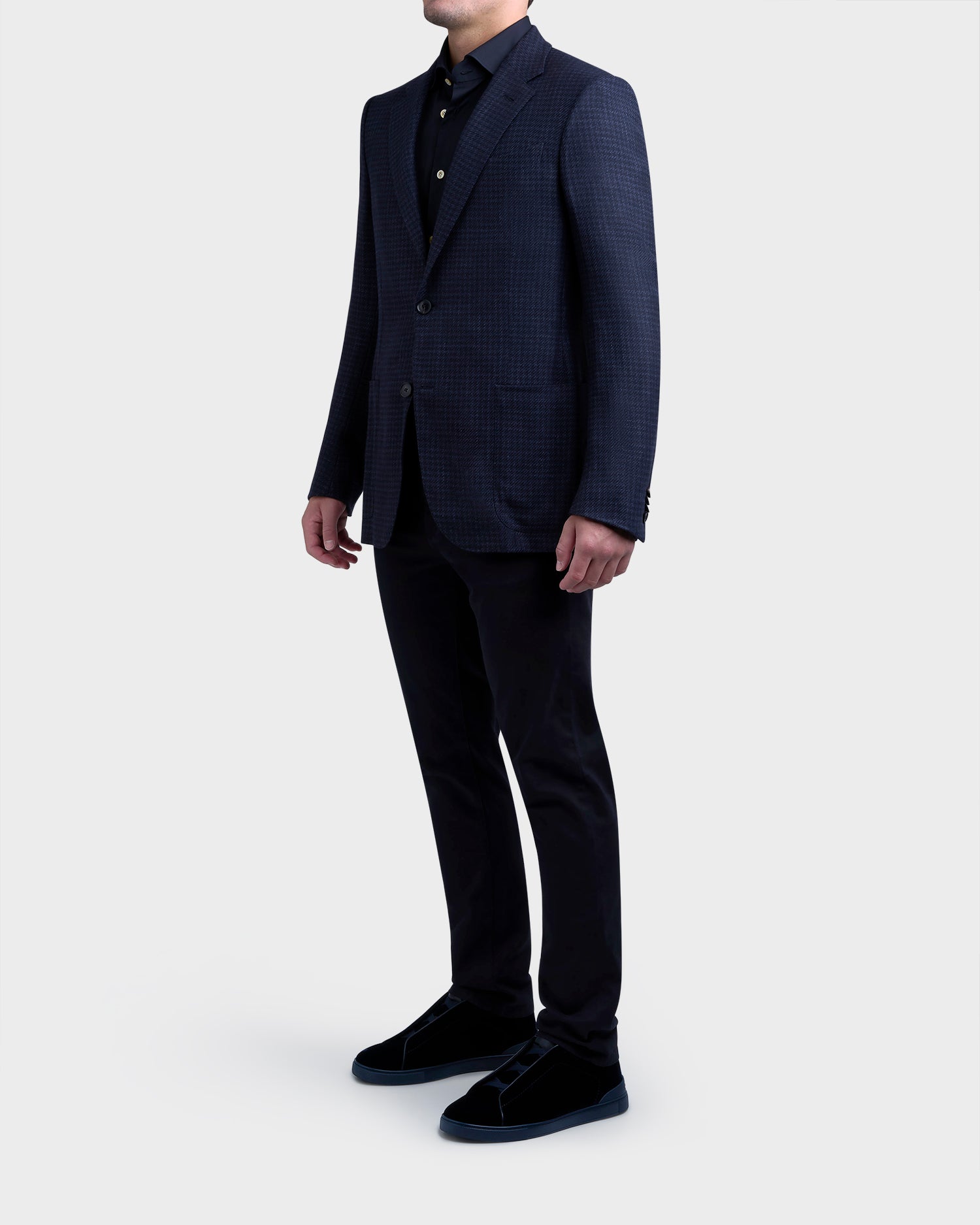 A slim silhouette and a refined yet breezy silk-cashmere-linen blend: this ink blue jacket epitomises effortless sartorial style.