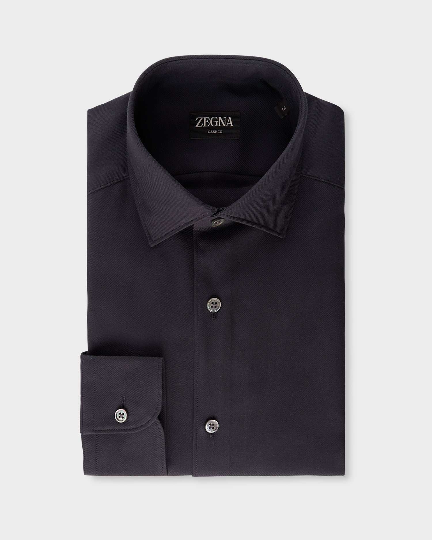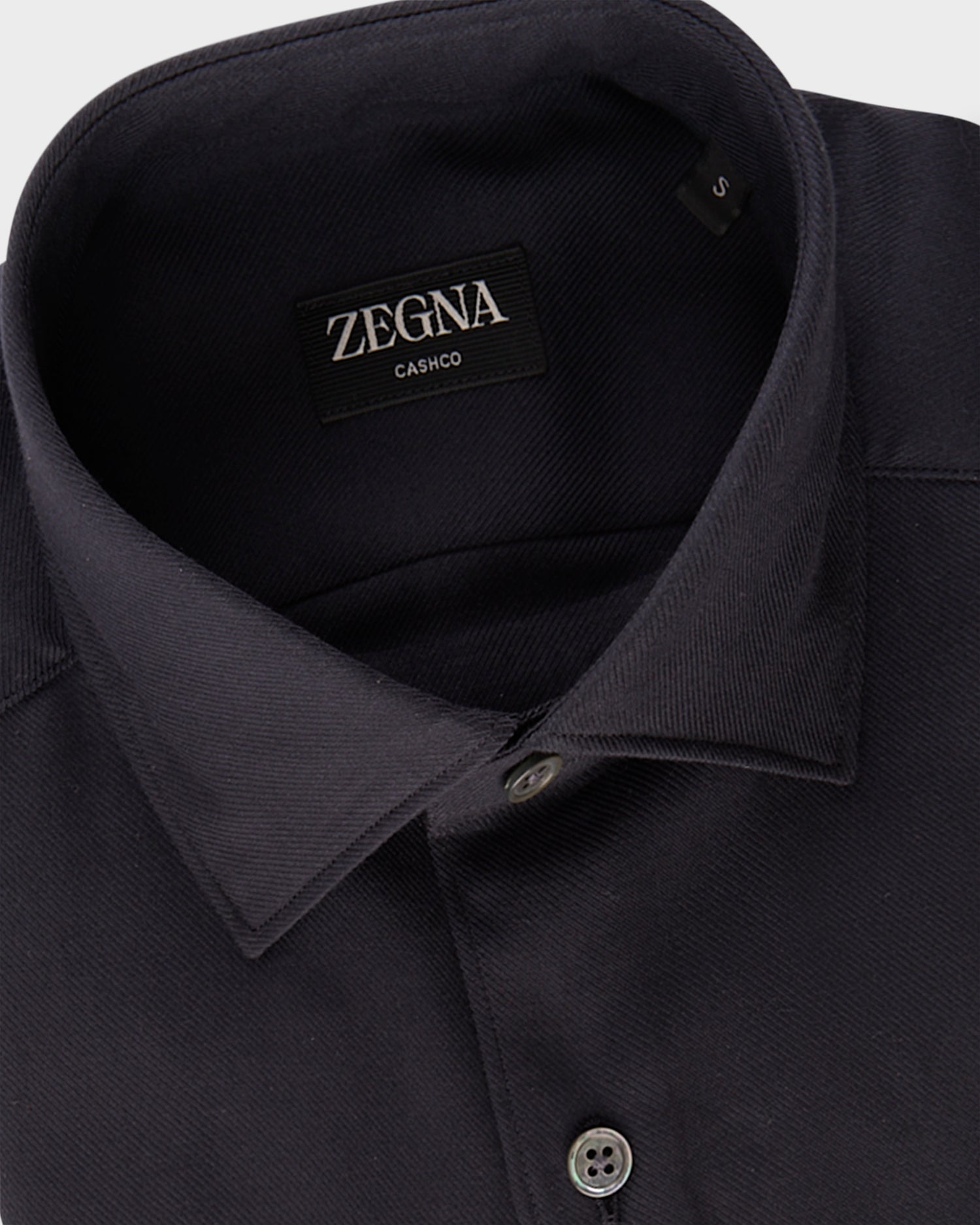 The dark midnight blue Cashco long-sleeve shirt is made from one of Zegna's lightest yarns. Perfect for everyday wear, this elegant, long-sleeve shirt is styled with a semi-spread collar and detachable stays.