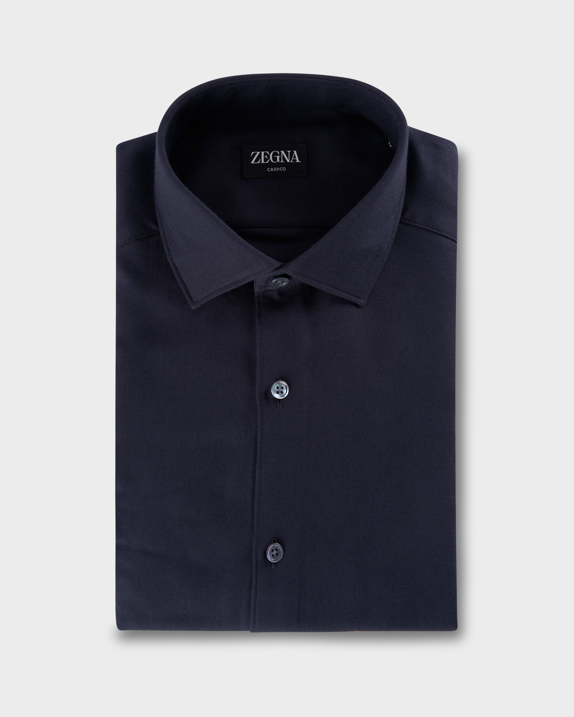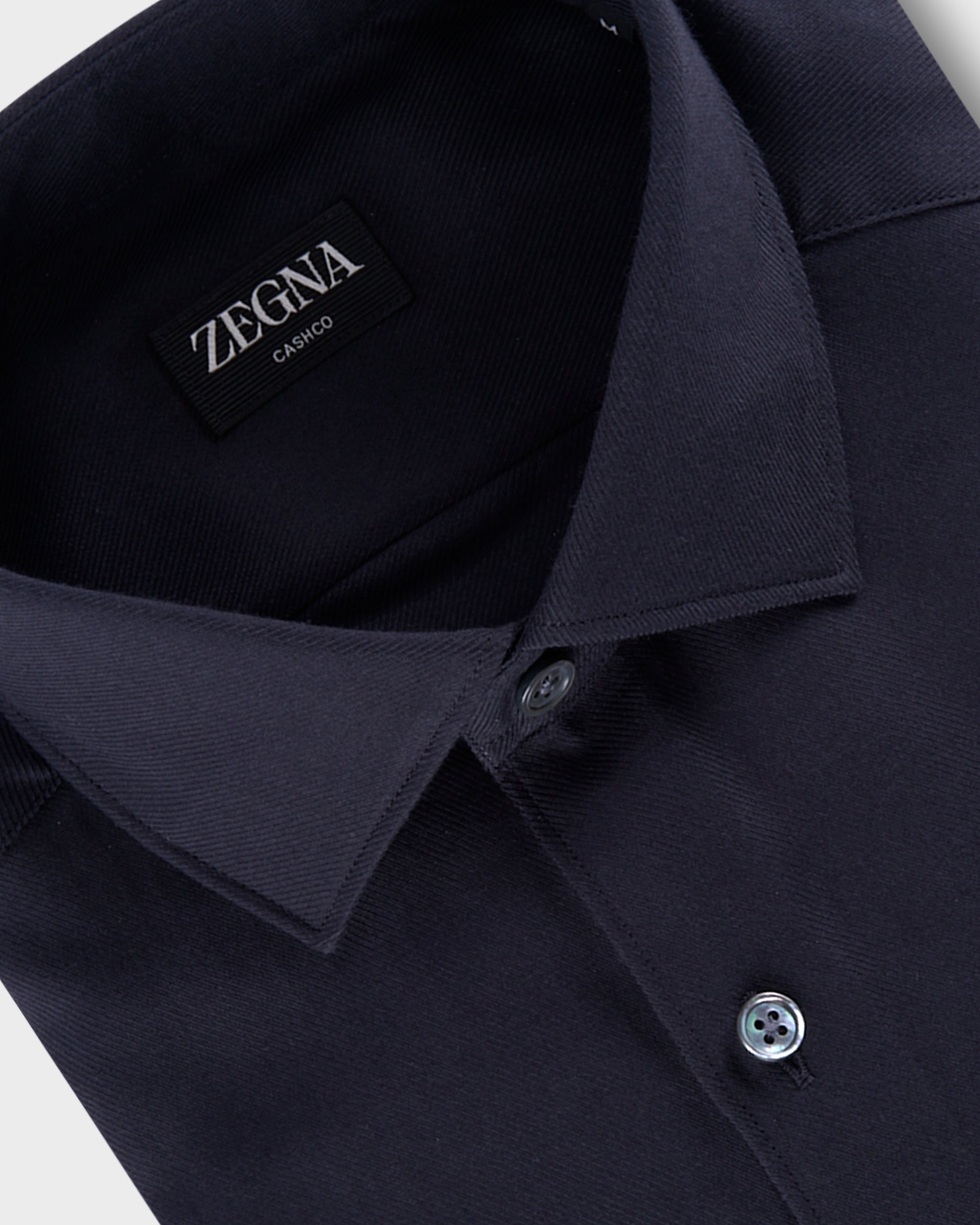 The dark navy Cashco shirt is made from one of Zegna's lightest yarns. Perfect for everyday wear, this elegant, long-sleeve shirt is styled with a semi-spread collar and standard cuffs.