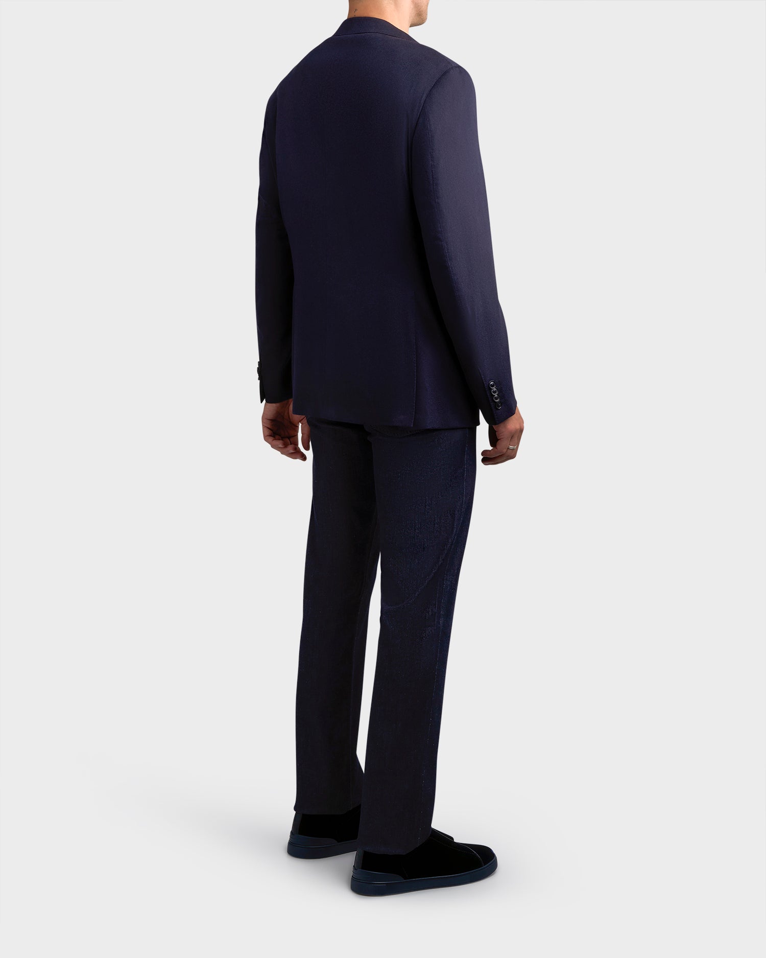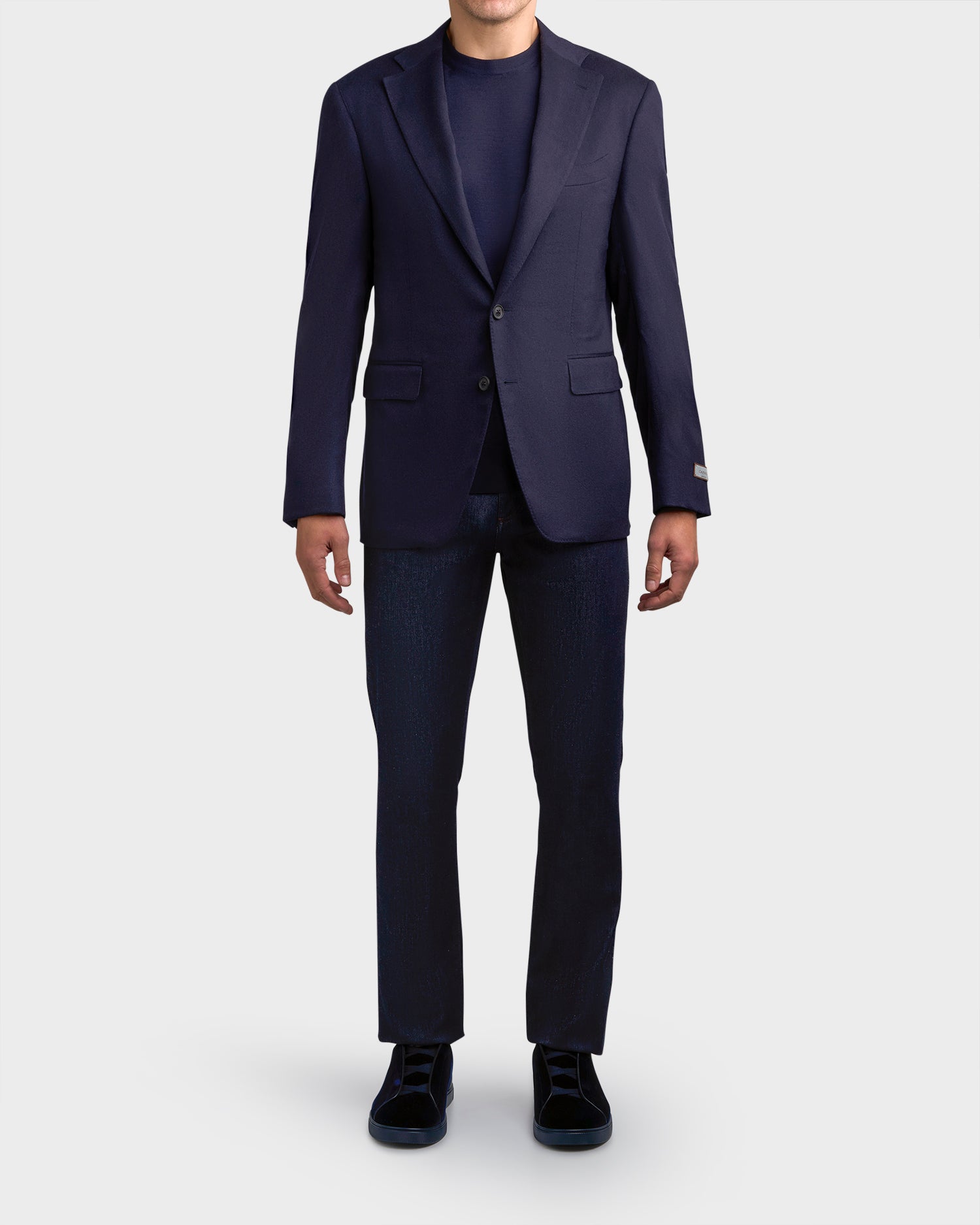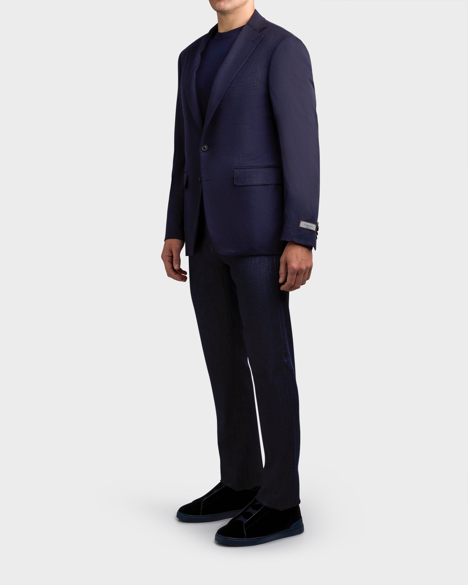 A refined take on modern tailoring, this dark navy Canali sports jacket is crafted from a luxurious cashmere blend with added stretch for effortless movement and comfort. The soft, tactile handle is balanced by a sharp silhouette, finished with a classic notch lapel, flap pockets, and double vents. Lightweight yet structured, it transitions seamlessly from relaxed business settings to elevated off-duty dressing. Made in Italy, it reflects Canali’s commitment to understated elegance and impeccable craftsmanship.