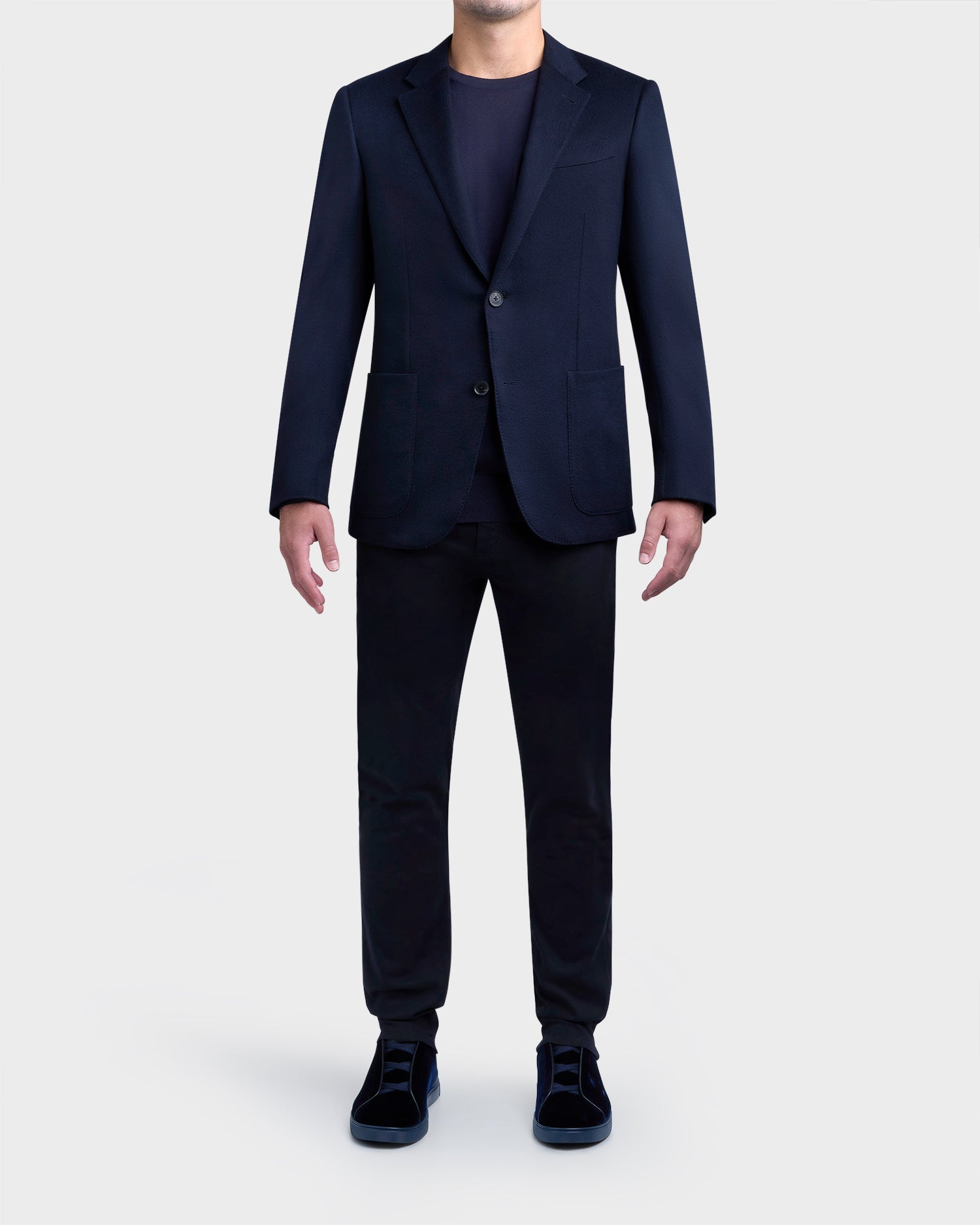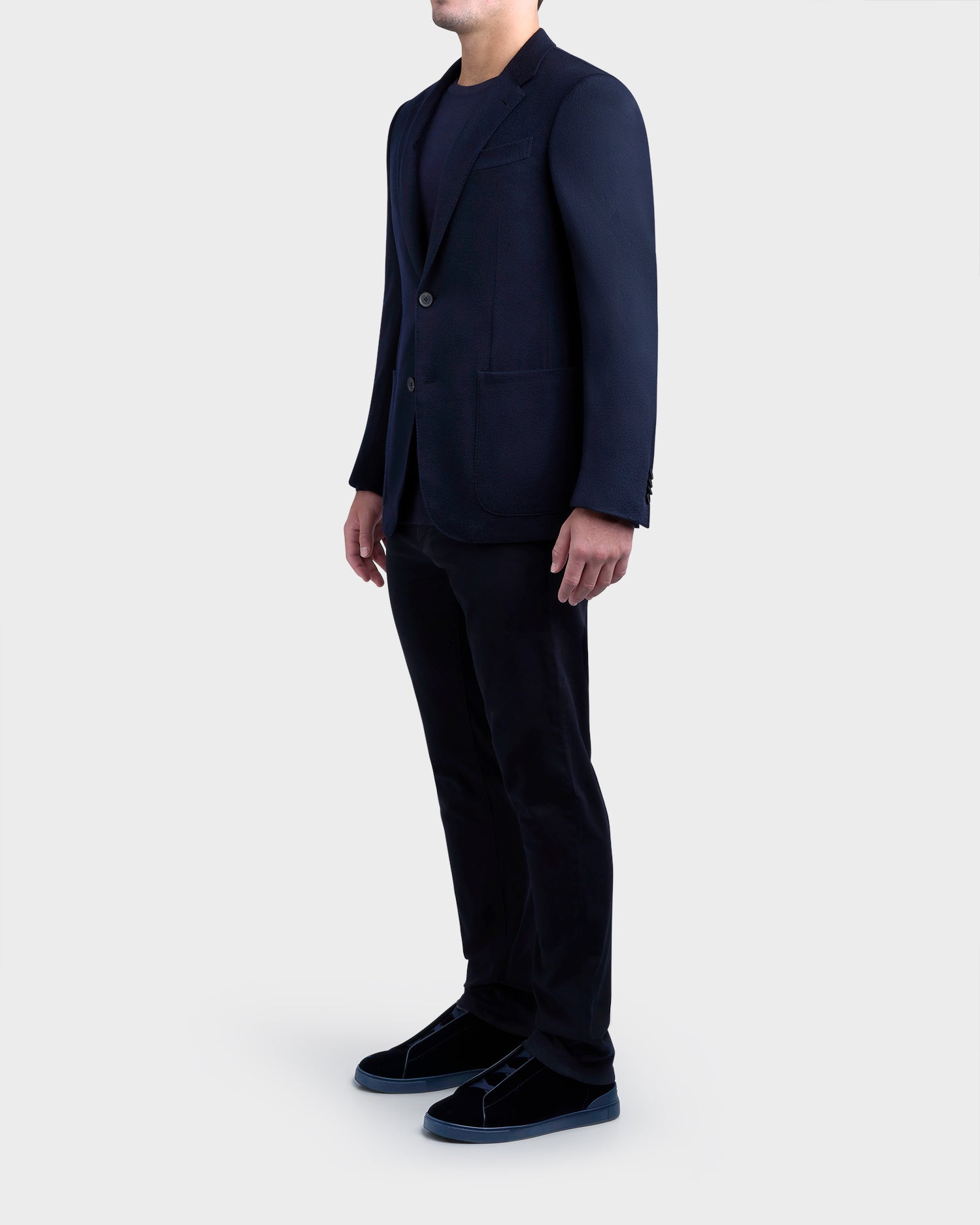 Crafted from one of ZEGNA's most exclusive yarns, the navy blue Oasi Cashmere jacket shows how special materials can transform a familiar silhouette.