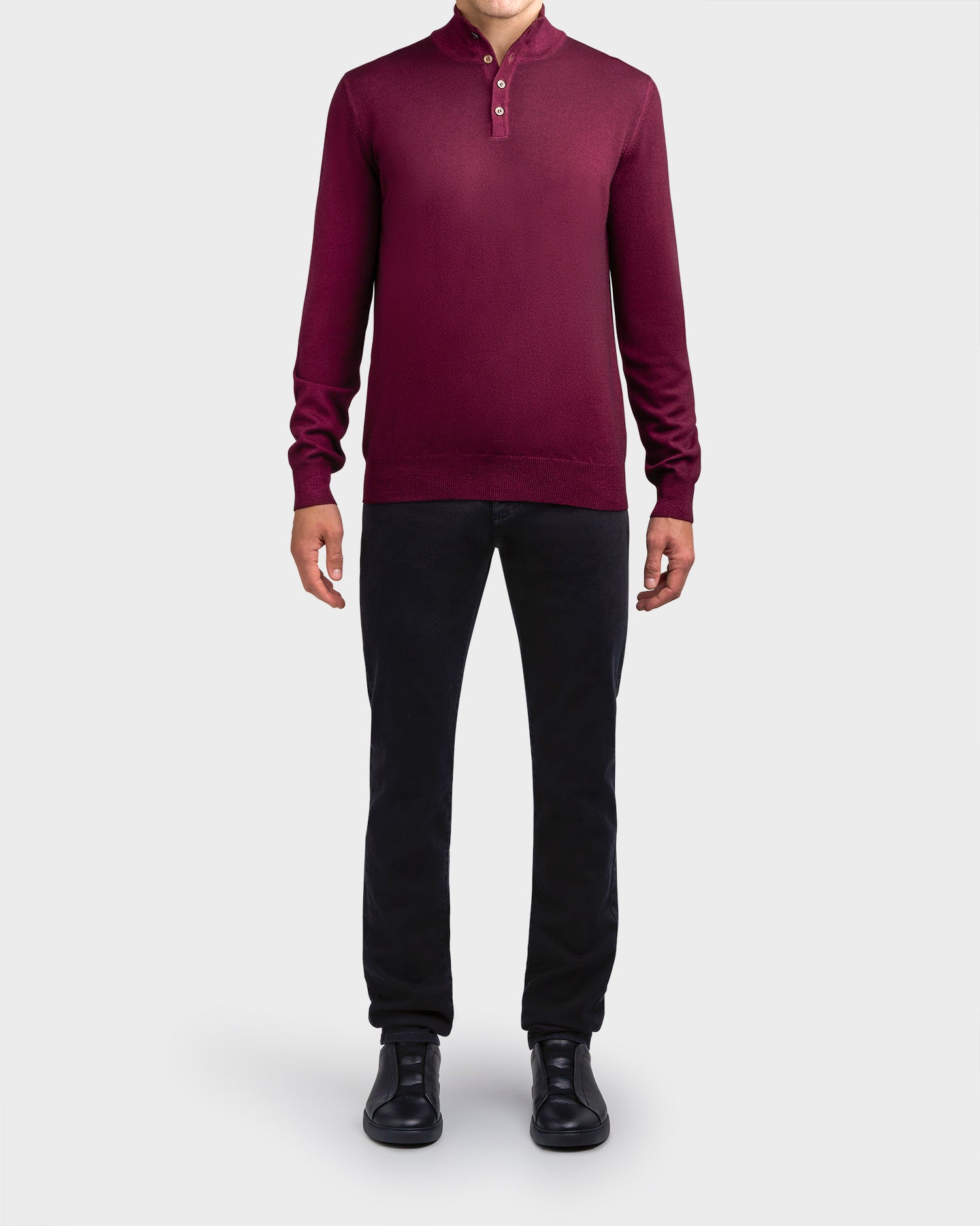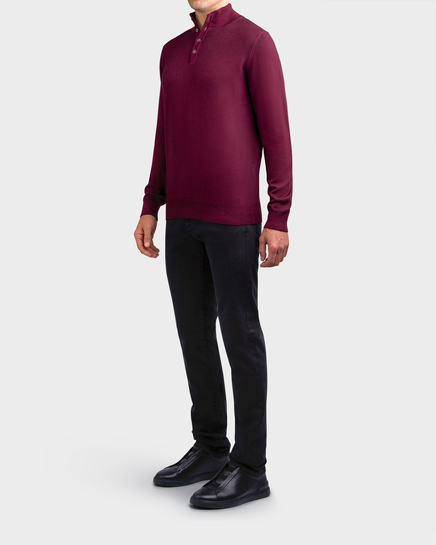 Deep Burgundy Button Down Pure Virgin Wool Knit Sweater