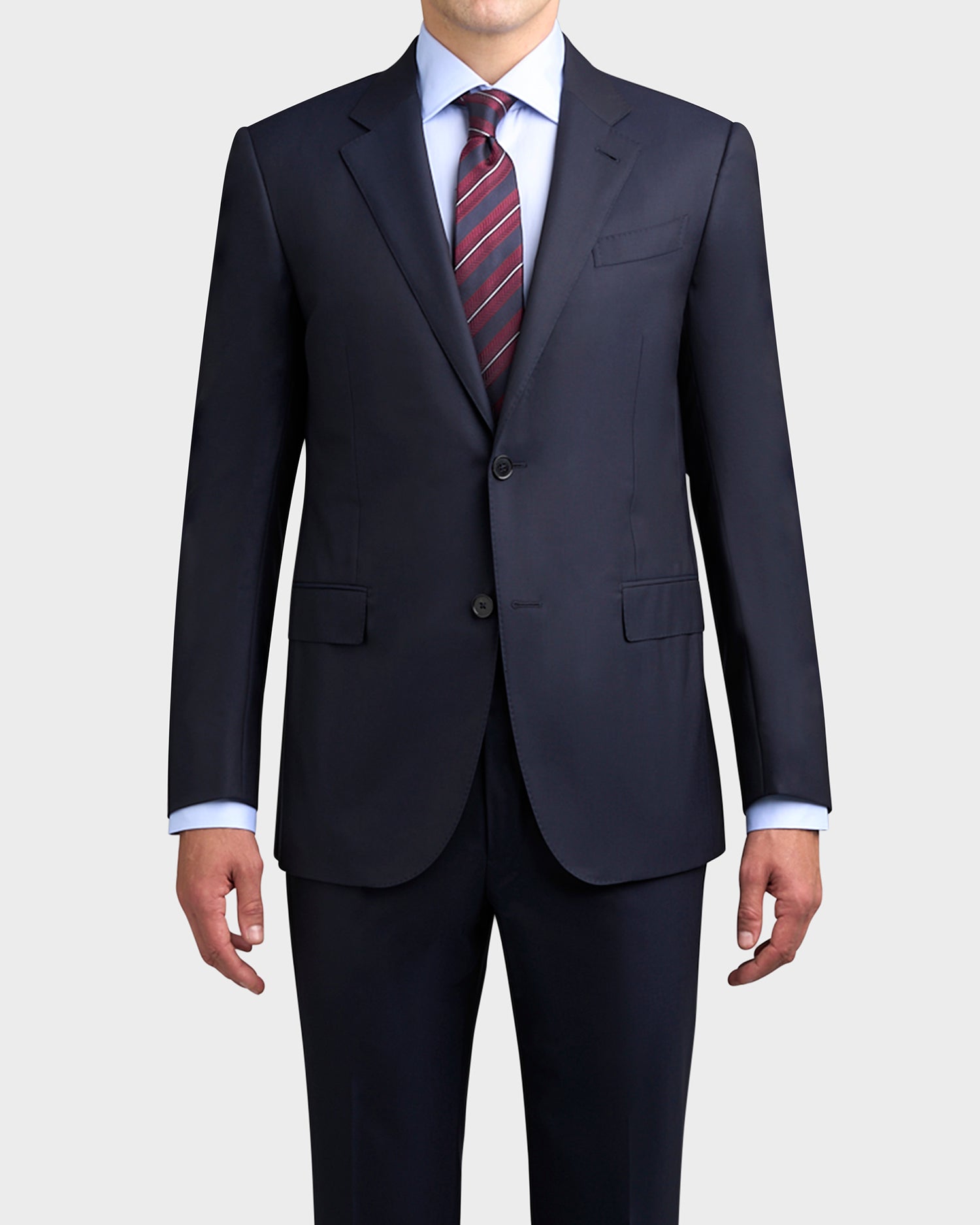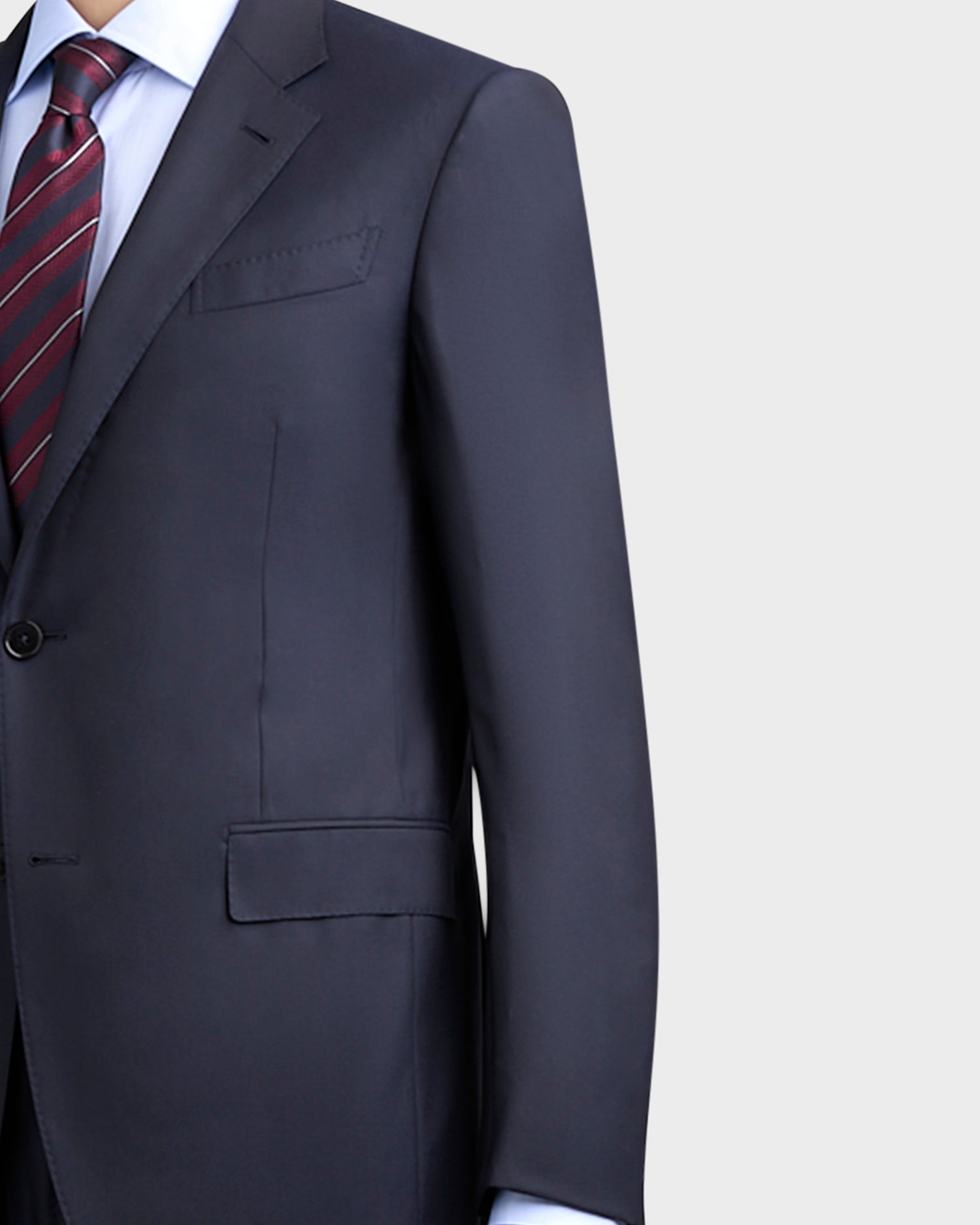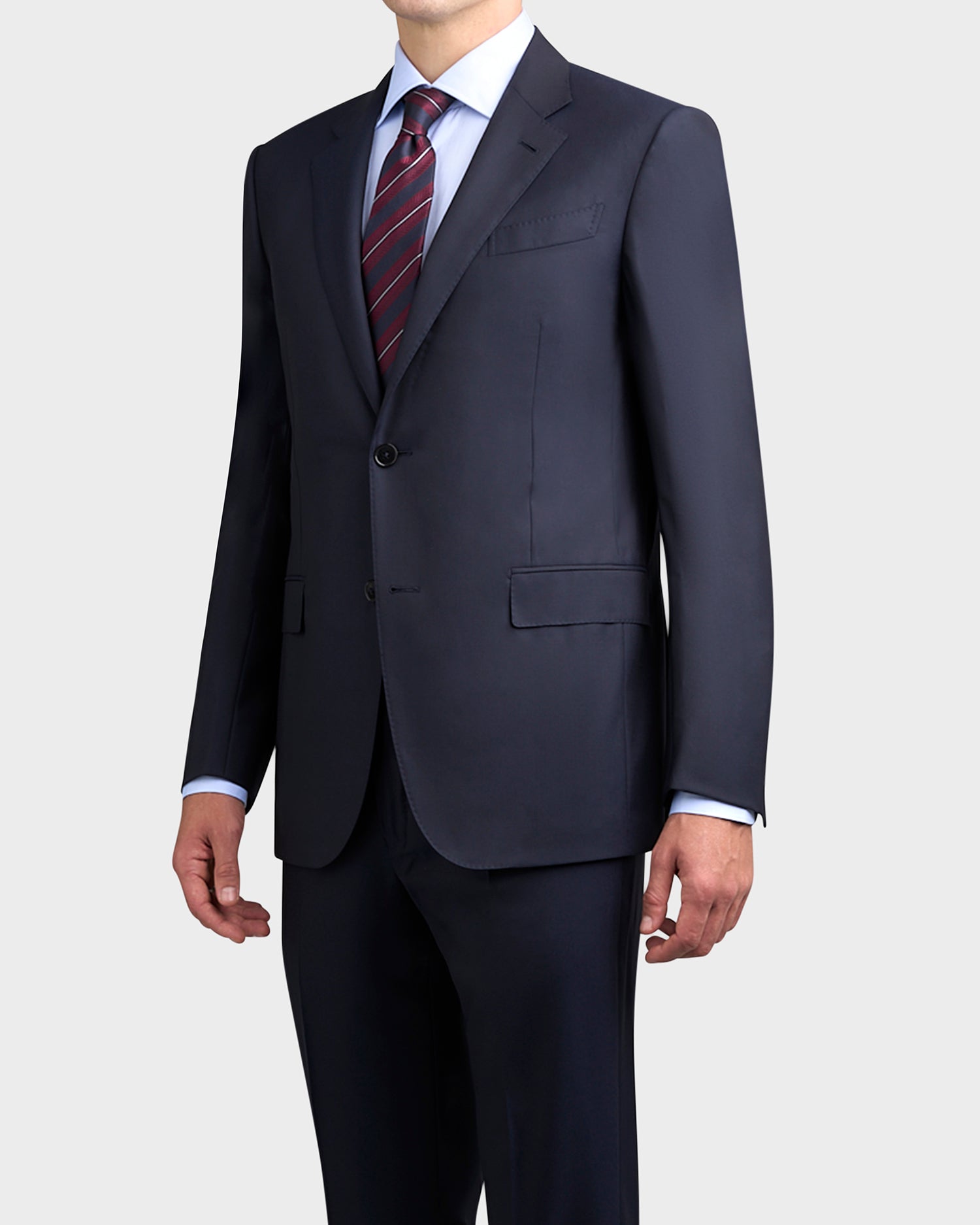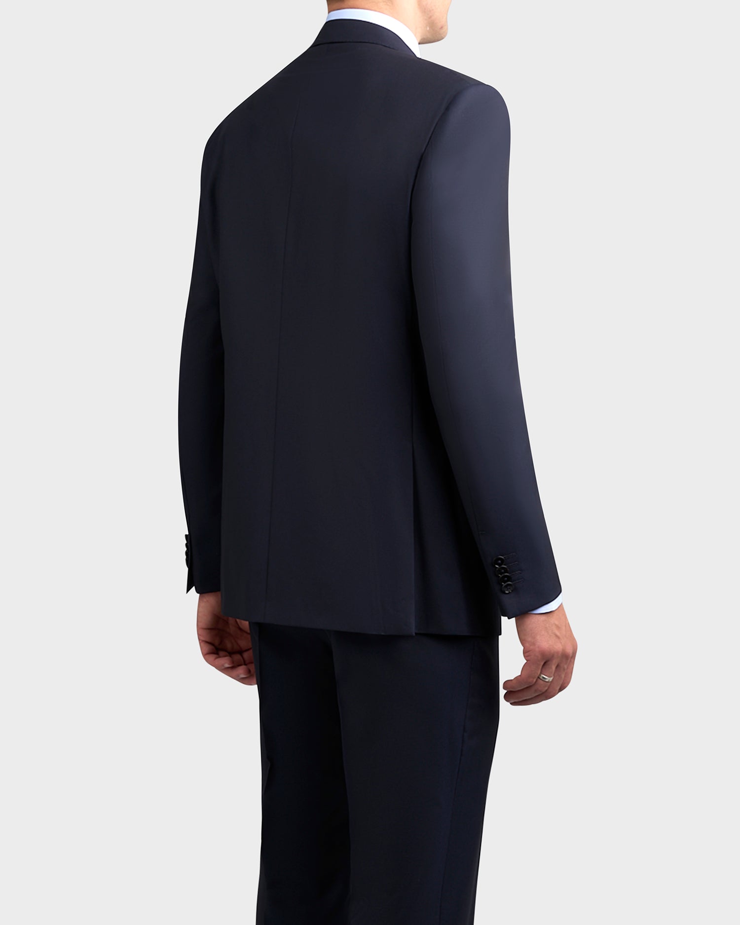 Crafted from specially selected, super-fine Australian wool fibers, the navy blue micro check 15milmil15 wool tailoring suit is exceptionally soft and lightweight. The deconstructed jacket is paired with dart-stitched pants. A micro-designed pattern adds a refined element to sophisticated wardrobes.