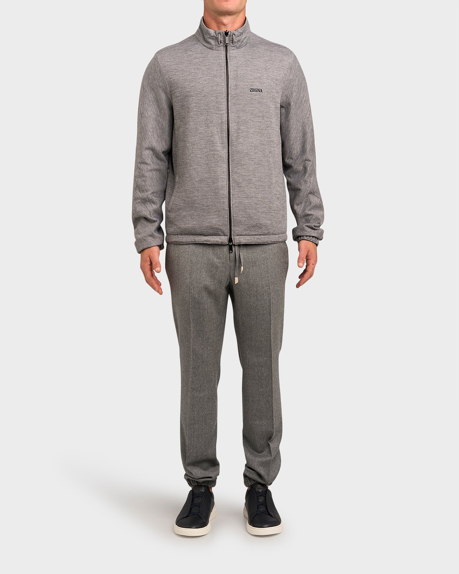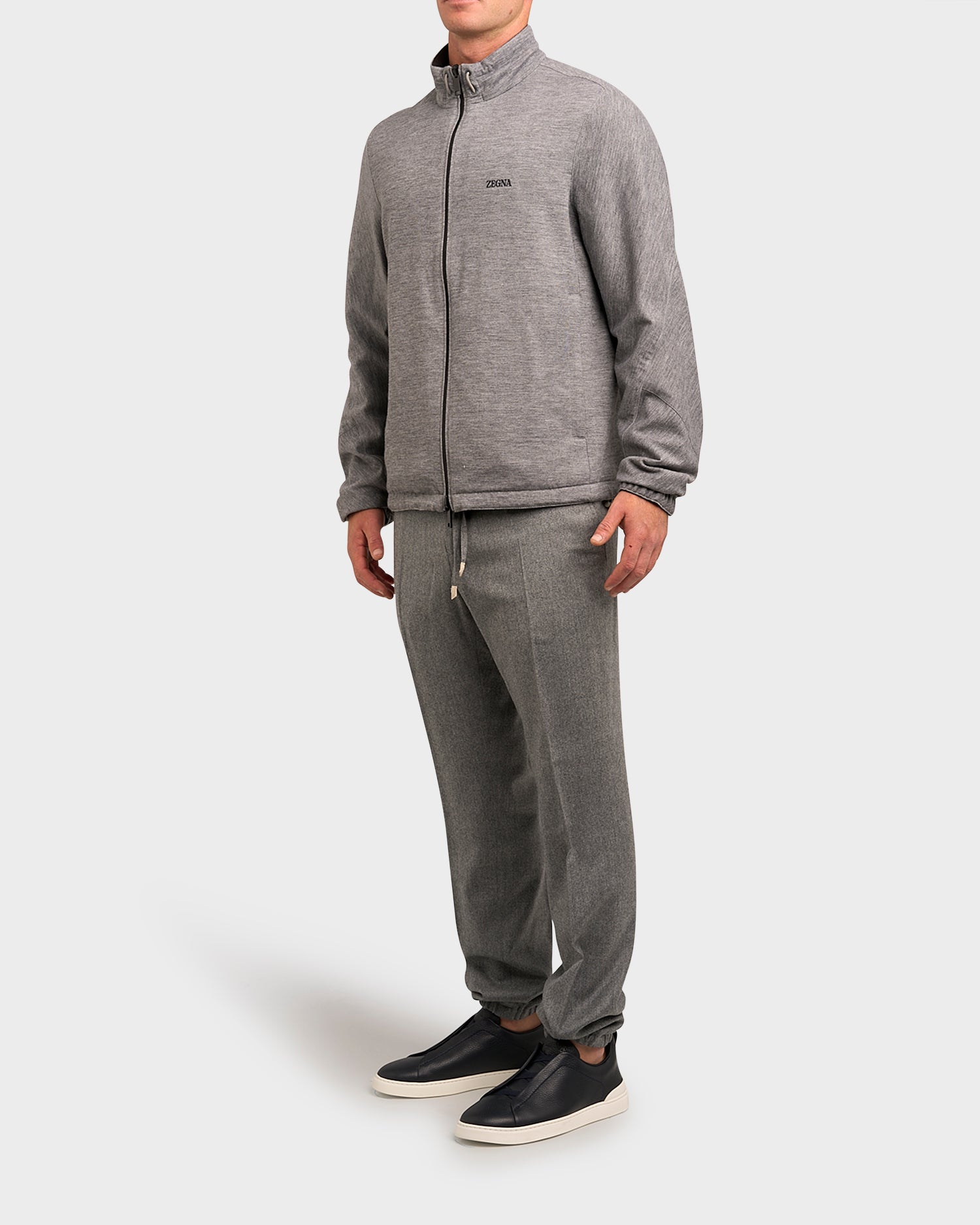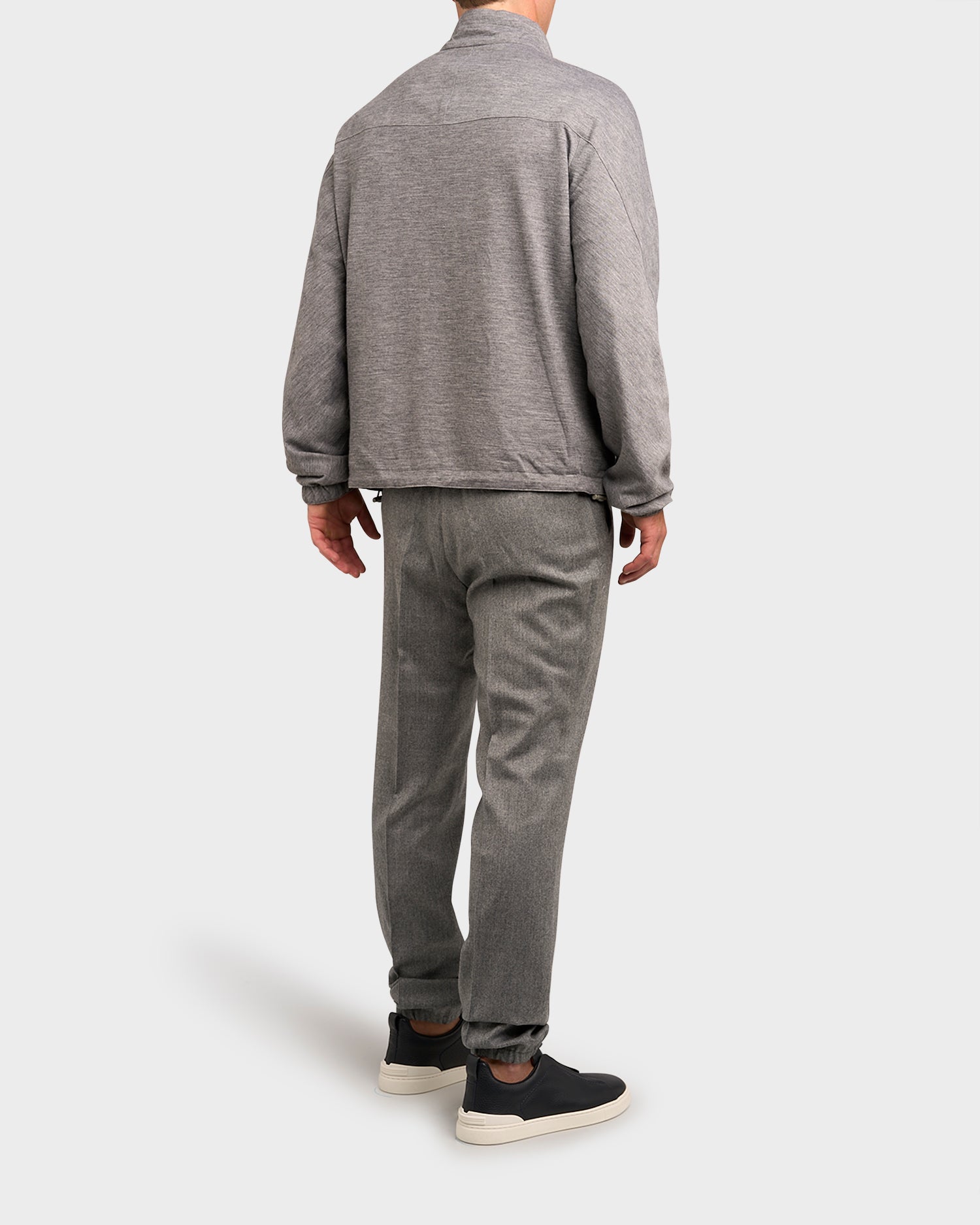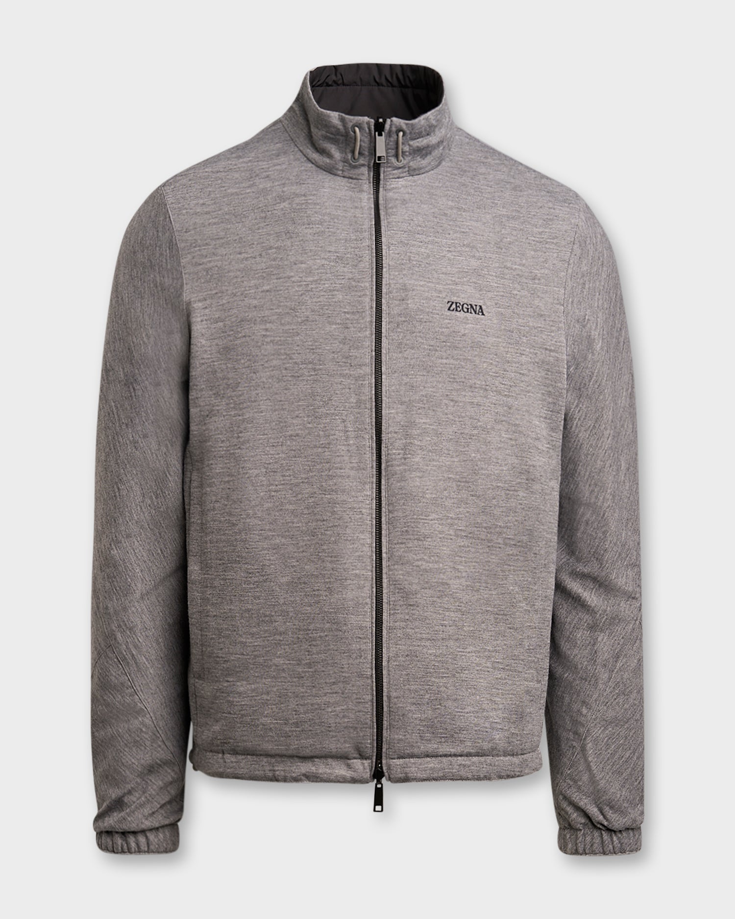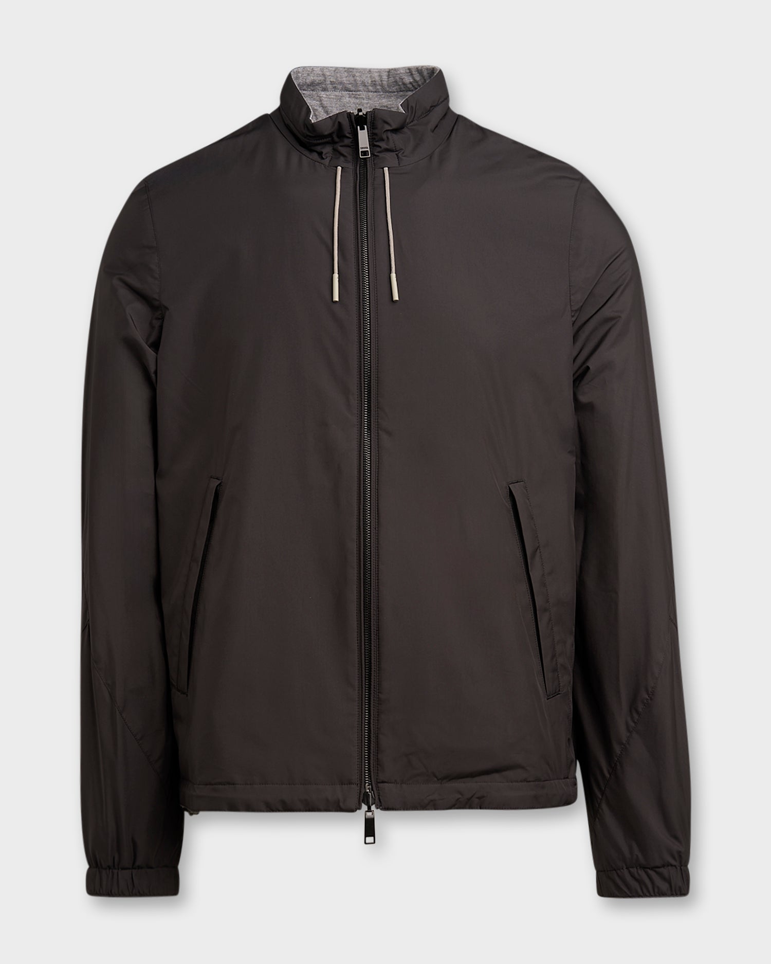 The grey technical fabric reversible Brezza blouson combines sleek, urban style with functional design. Choose between the microfiber and cashmere blend jersey sides to complement different looks. The water-repellent jacket is styled with a stand collar and adjustable hem to block out the wind, while leather details add polish wherever you go.