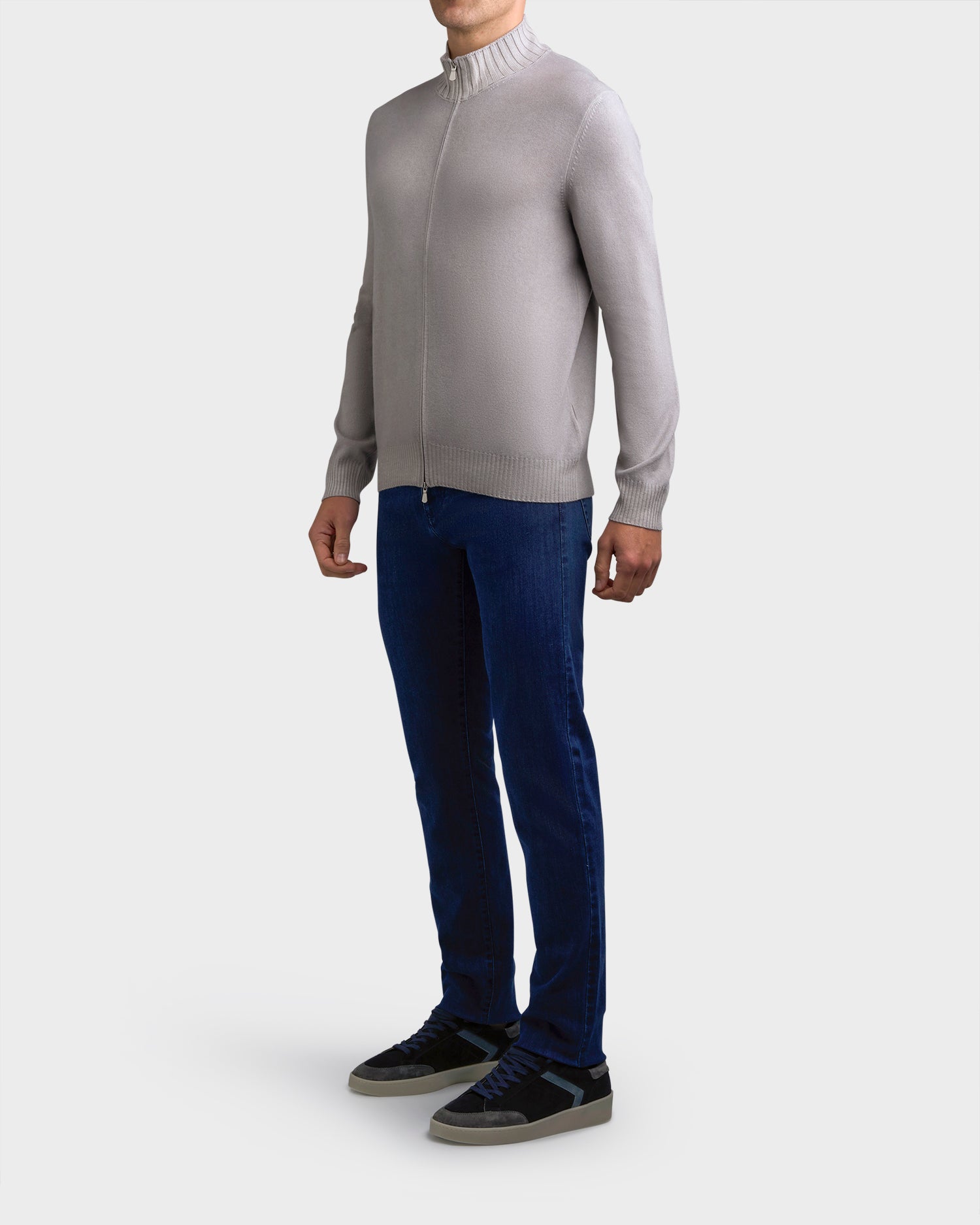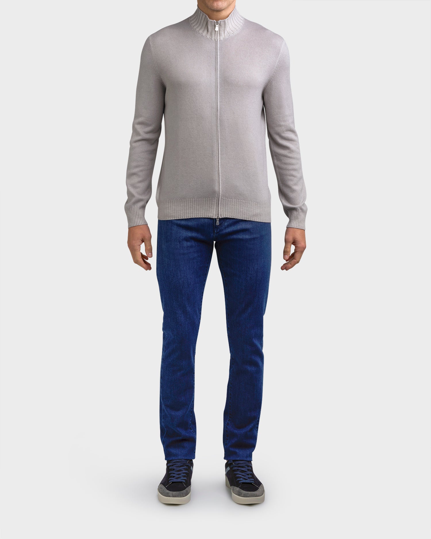 Grey Zip Neck Virgin Wool Viscose Cashmere Sweater