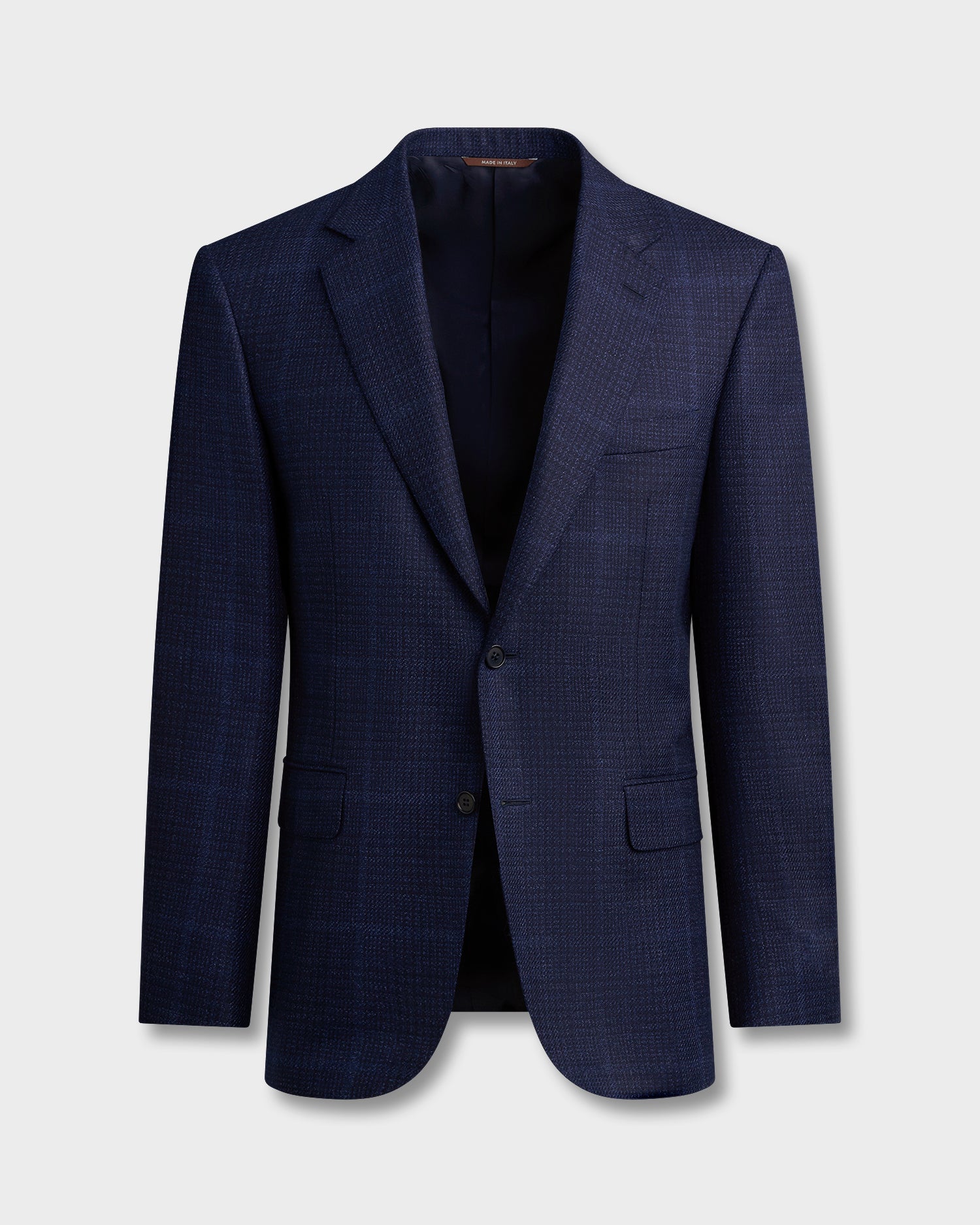 Crafted in Italy, this style is cut from a luxurious wool-silk blend in an ink blue and black check. Thoughtful details including a notch lapel, flap pockets and double vents give it a timeless versatility that works just as well with tailored trousers as it does with denim.