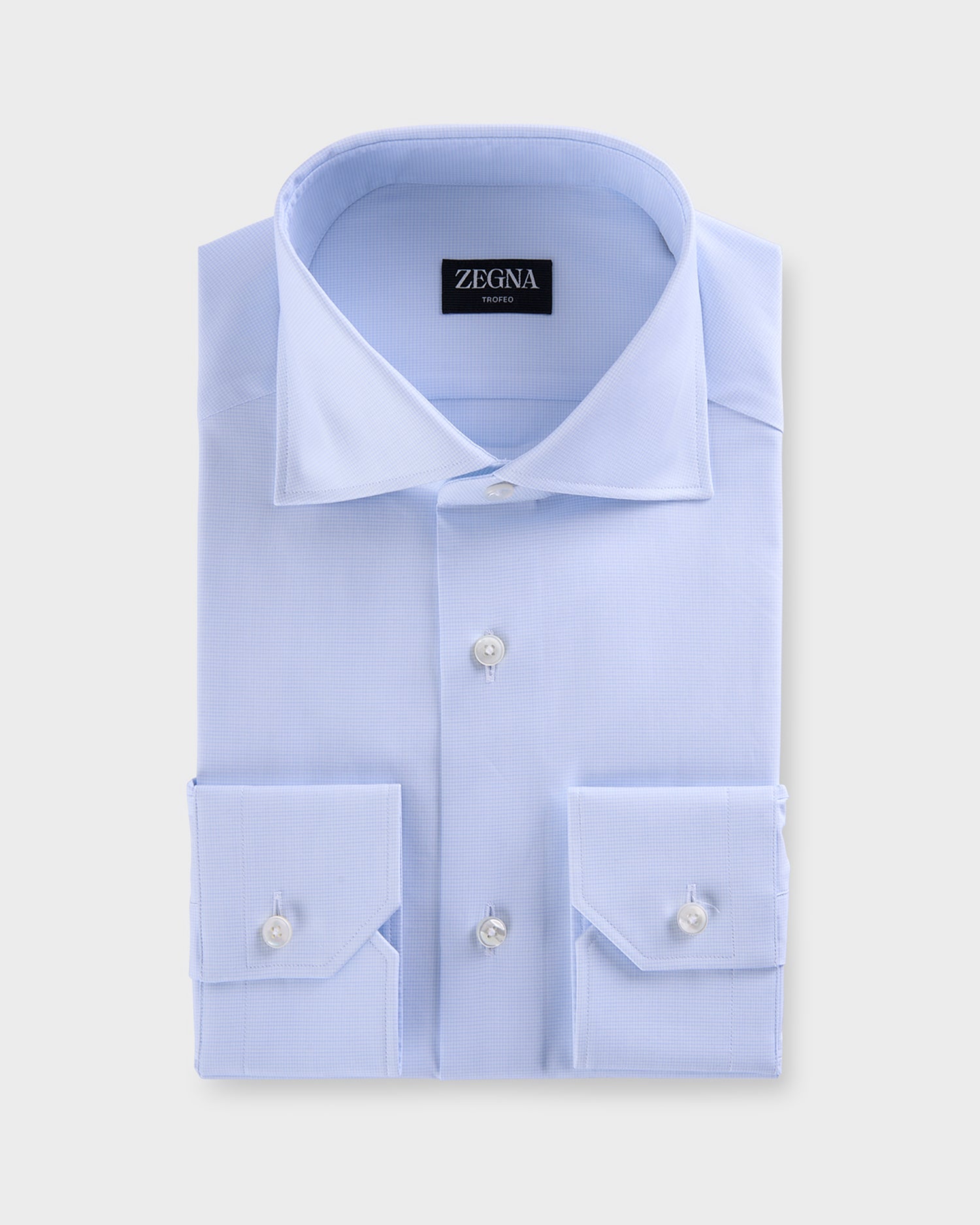 Light Blue And White Microcheck Check Trofeo Cotton Shirt