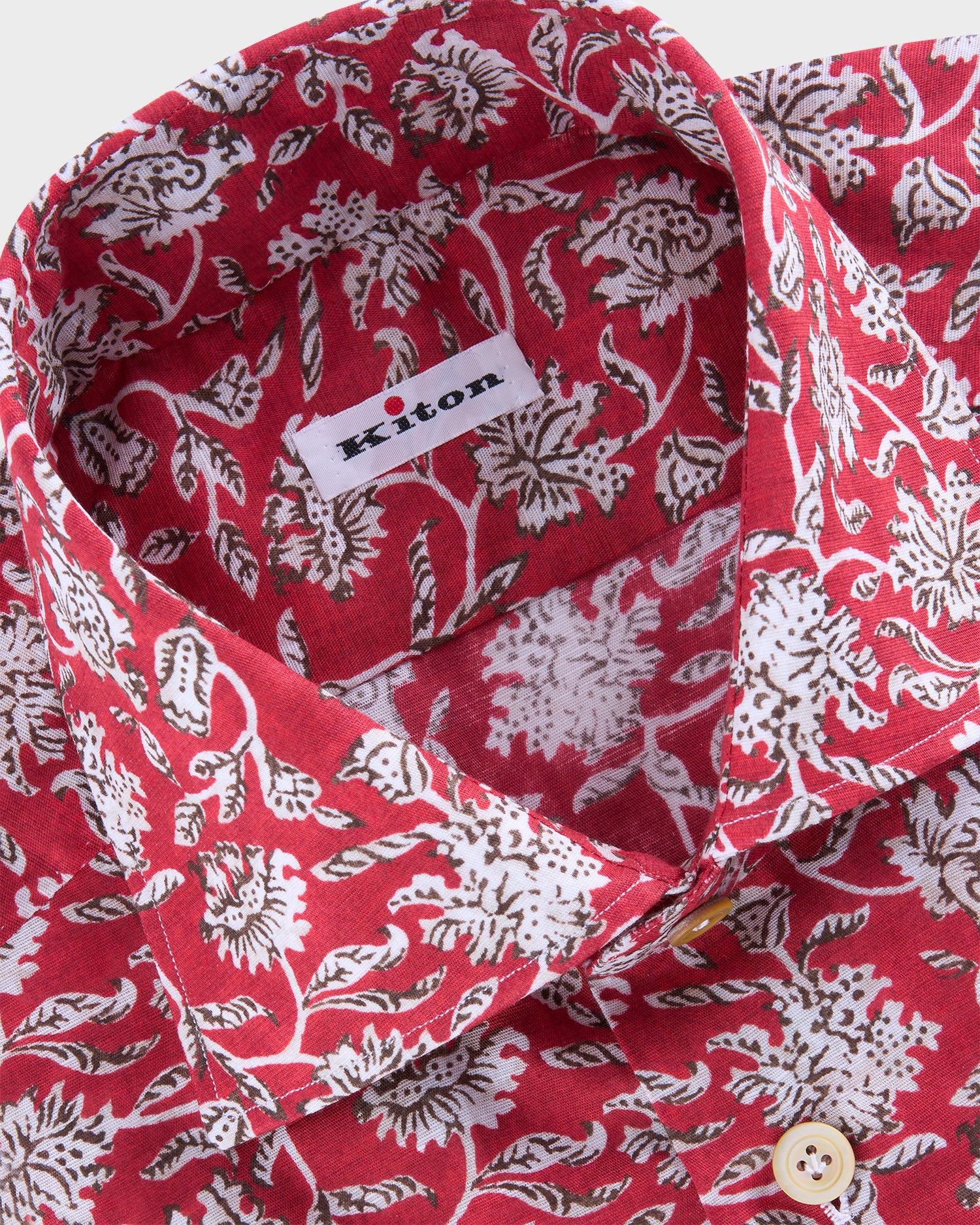 Red Beige and Brown Floral Cotton Linen Shirt