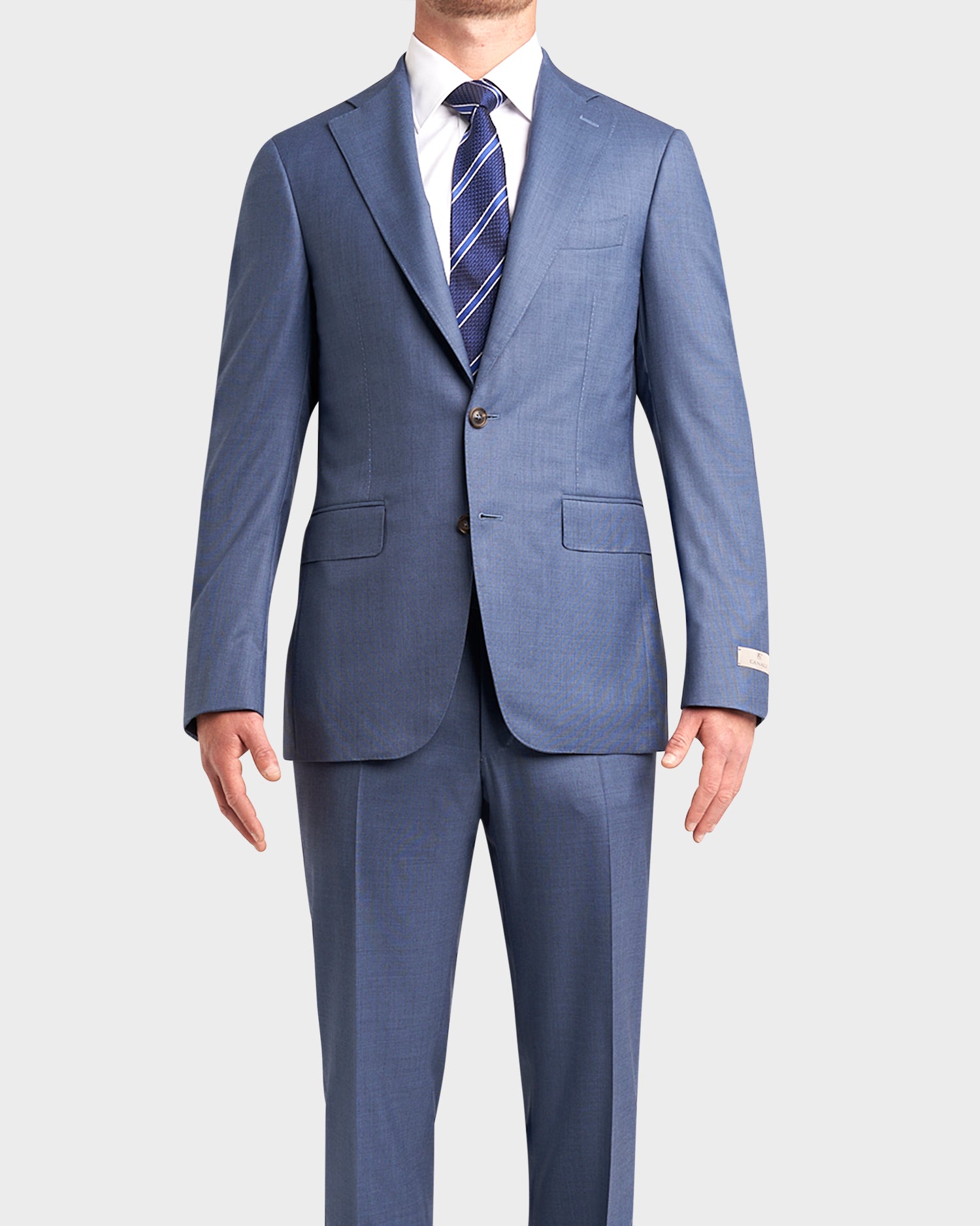 Made from carefully selected yarns, this pure wool 180's Exclusive suit is characterised by its tailored fit. Consisting of a single-breasted jacket and dartless pants, it is a refined garment designed for the gentleman who likes to add a touch of exclusive charm to special occasion looks.