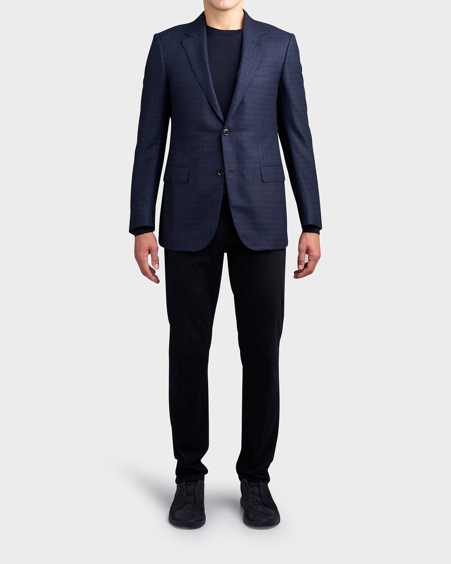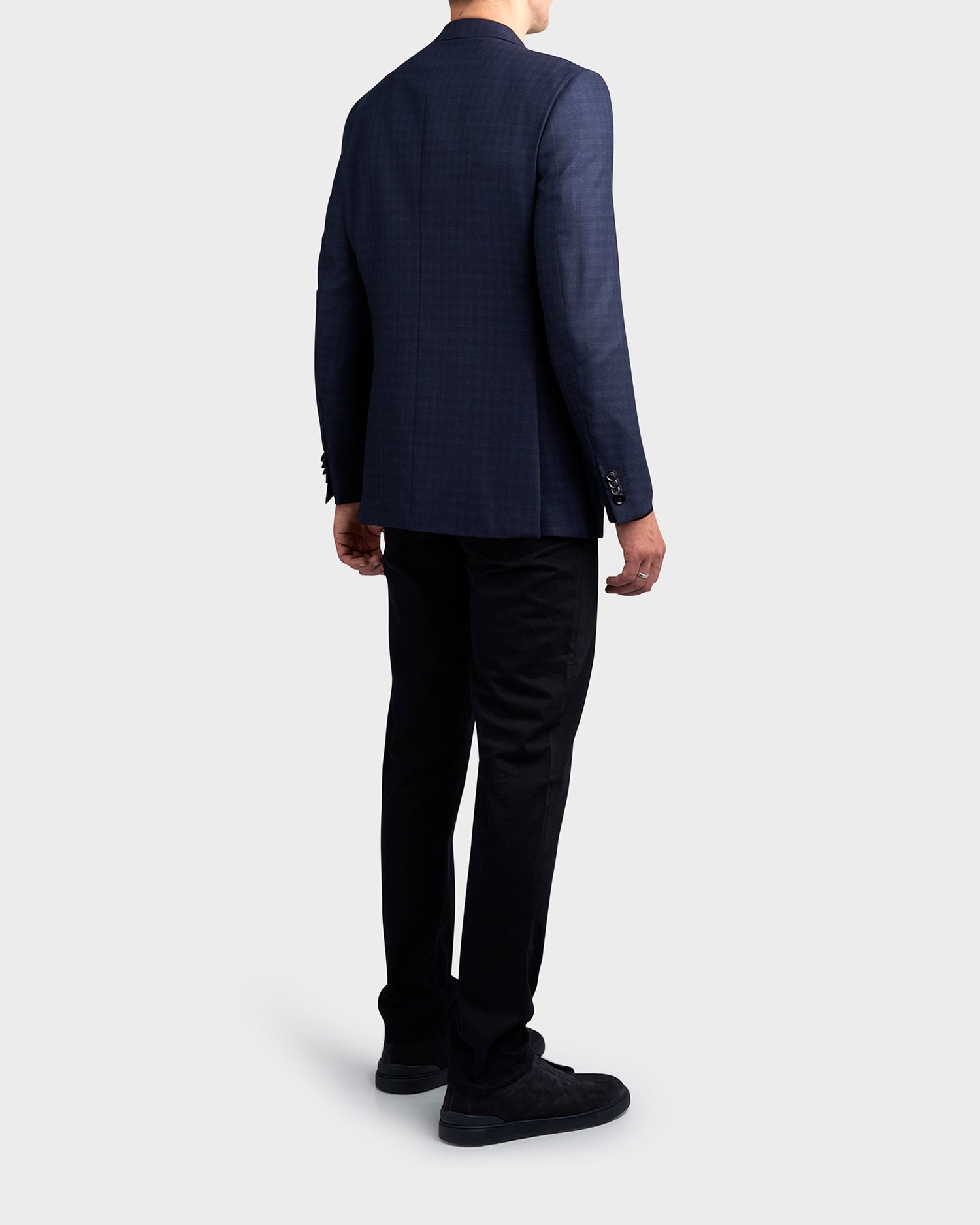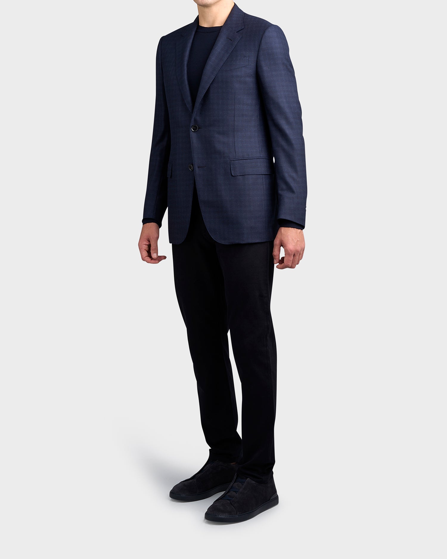 Thanks to Zegna's proprietary, 15.2-micron yarn, the navy blue check 15milmil15 wool jacket feels nearly weightless. This special material adds depth and brilliance to the classic pattern. The tailoring jacket is styled with a notch lapel, double vents and flap pockets.