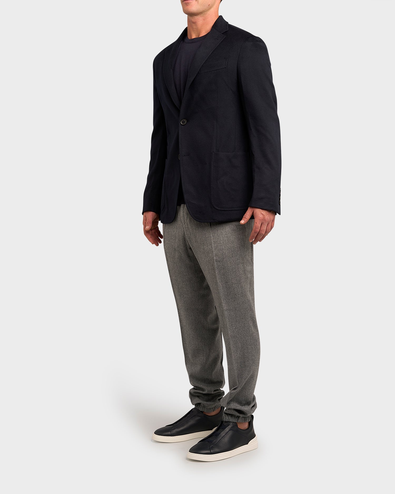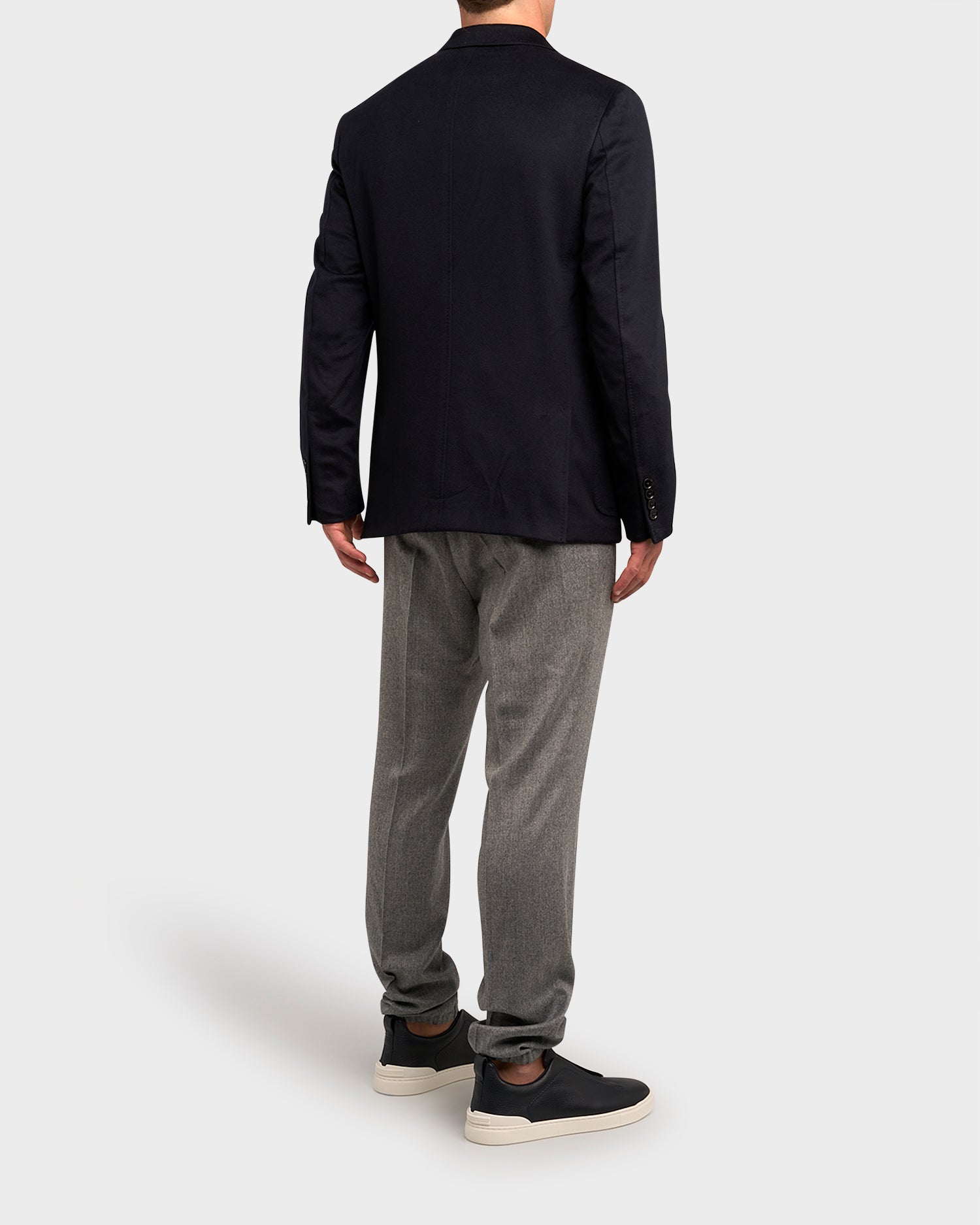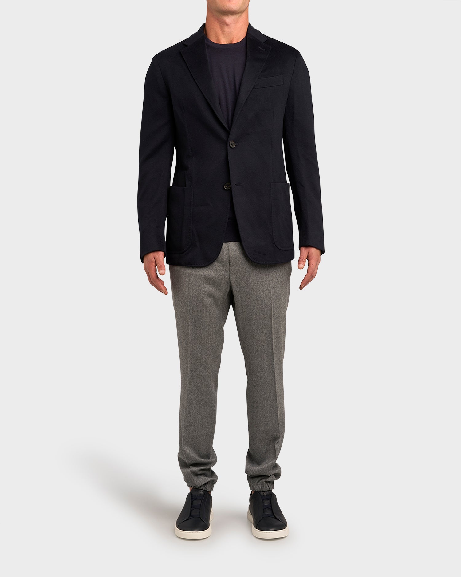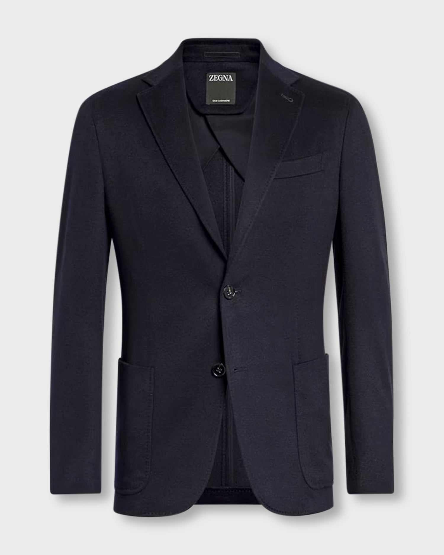 Crafted from one of ZEGNA's most exclusive yarns, the navy blue Oasi Cashmere shirt jacket shows how special materials can transform a familiar silhouette. The shirt jacket is exceptionally soft and smooth to the touch, with leather accents for subtle contrast. The understated look is completed with patch pockets.