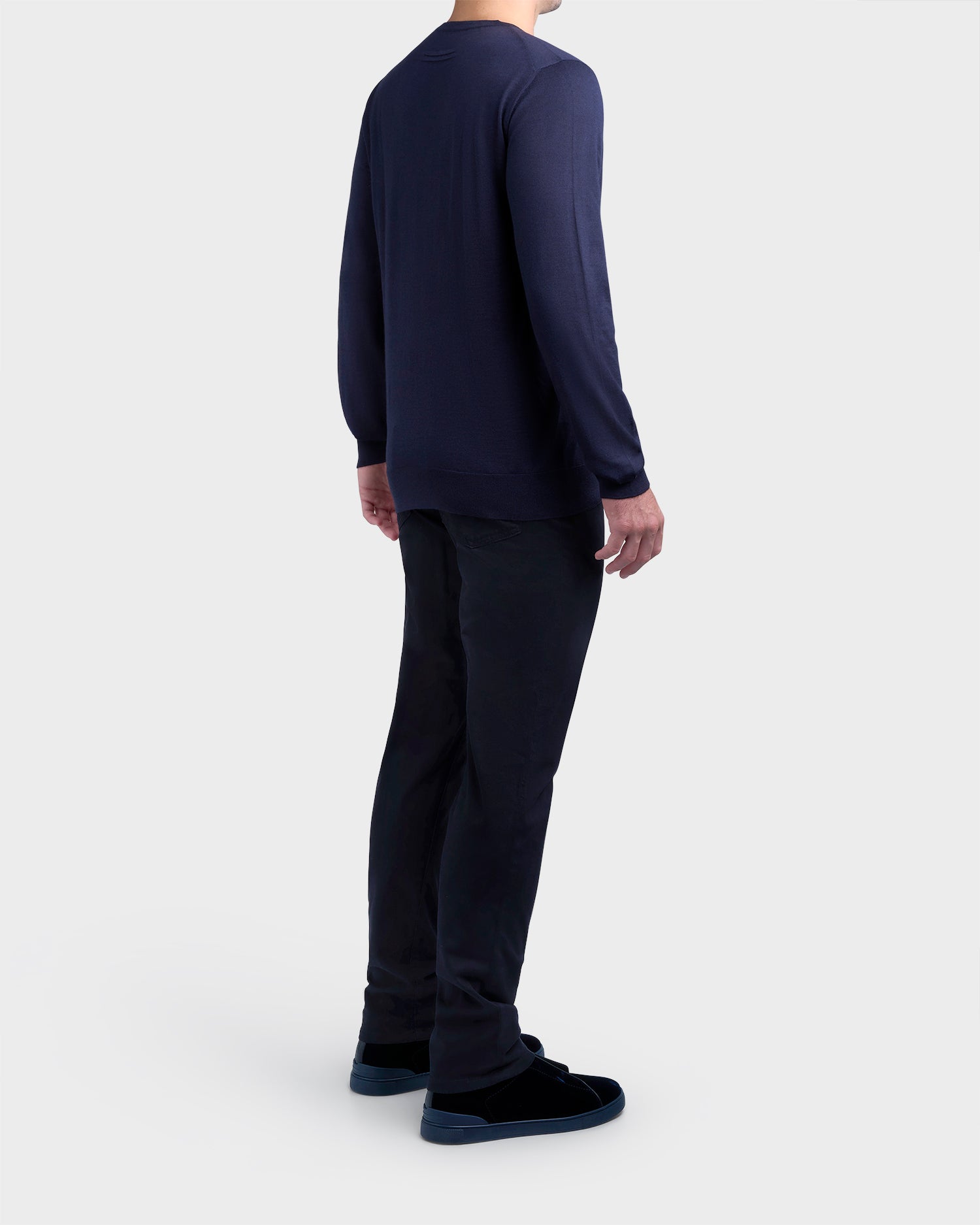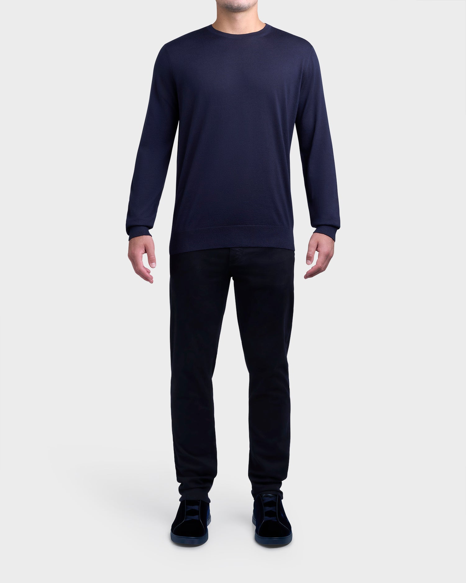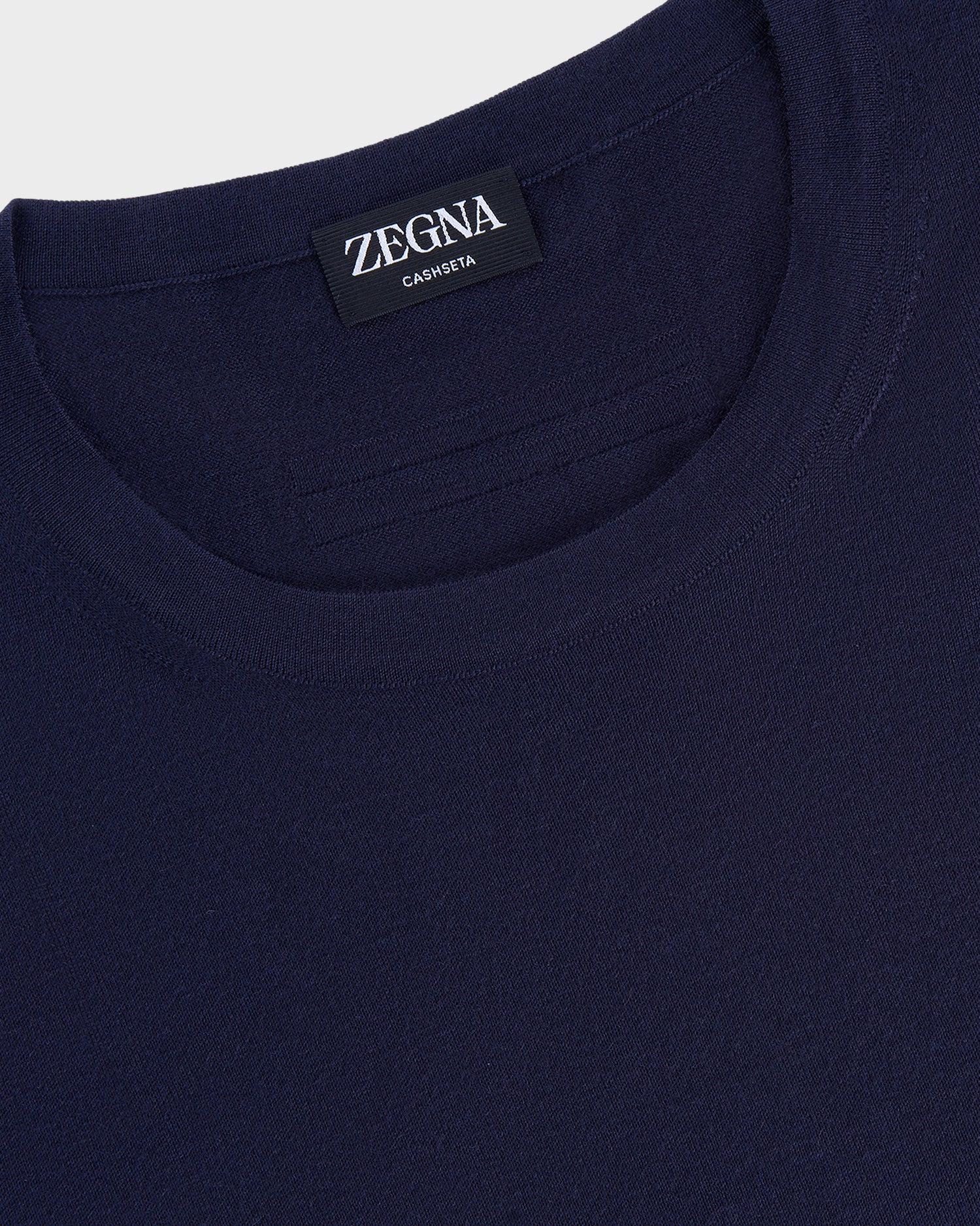 Blended with brilliant silk, the Cashseta crewneck's distinctive finish is highlighted in a sophisticated black. This lightweight, long-sleeve sweater is yarn-dyed, giving each item a totally unique, micro-mélange effect. Classic ribbed trim frames this luxurious material.