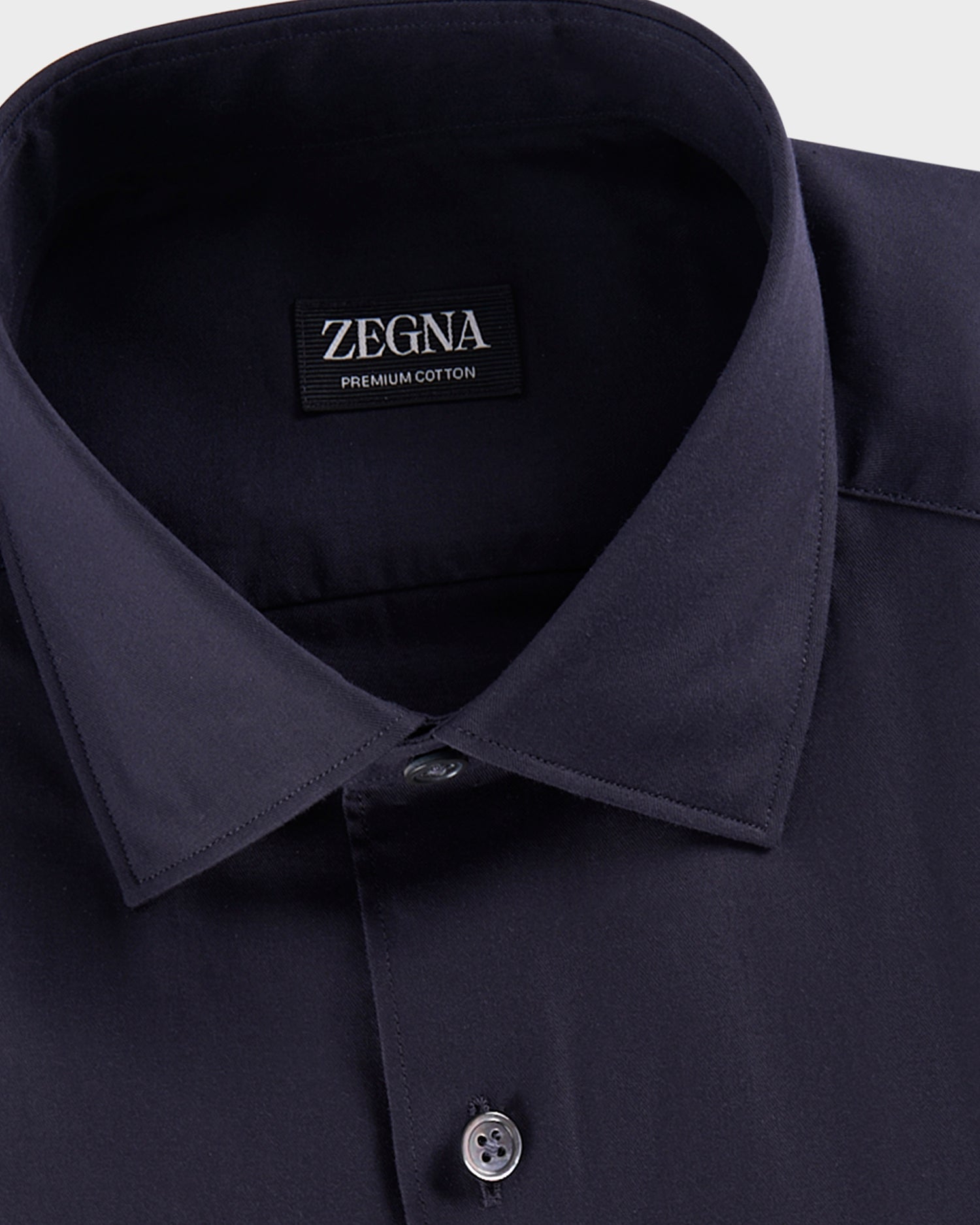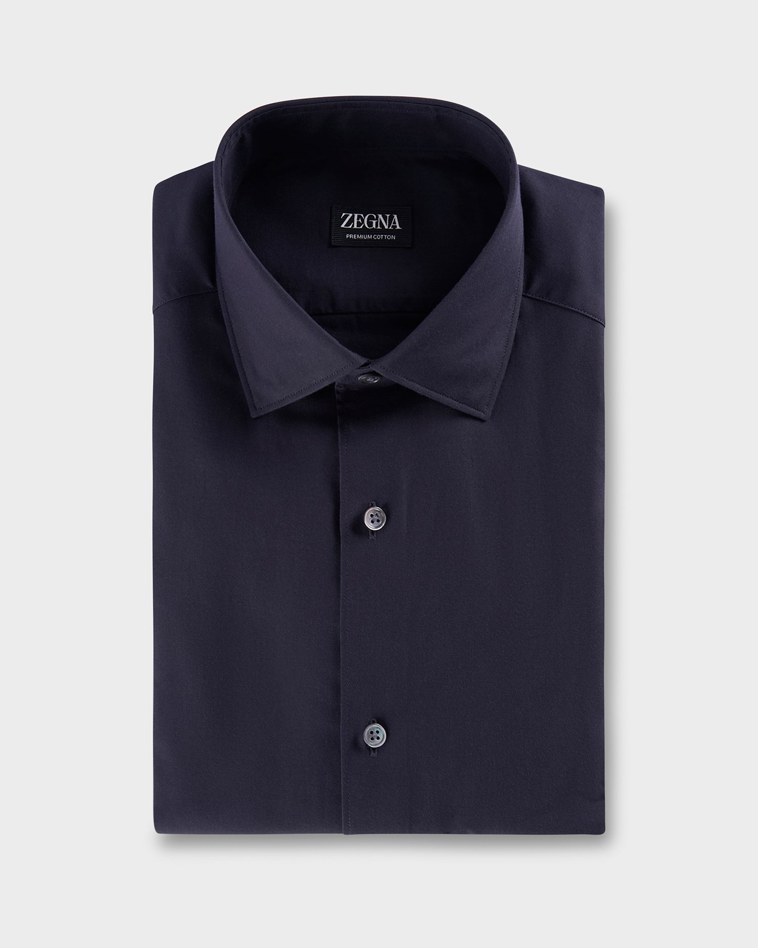Zegna's expertise in fine textiles shines in this navy premium cotton long-sleeve tailoring shirt. This resilient, naturally sophisticated material is the perfect match for a staple of elegant menswear.
